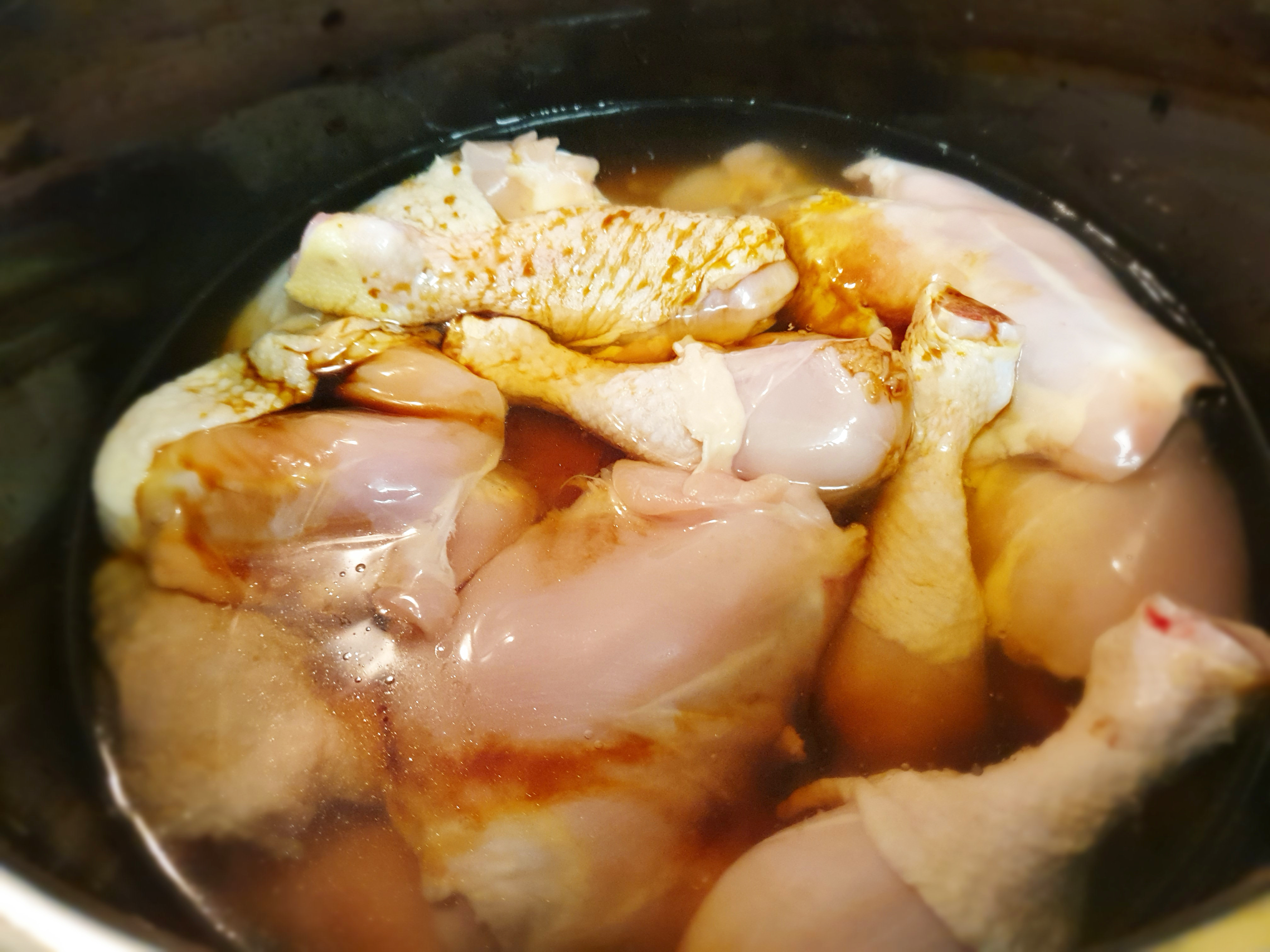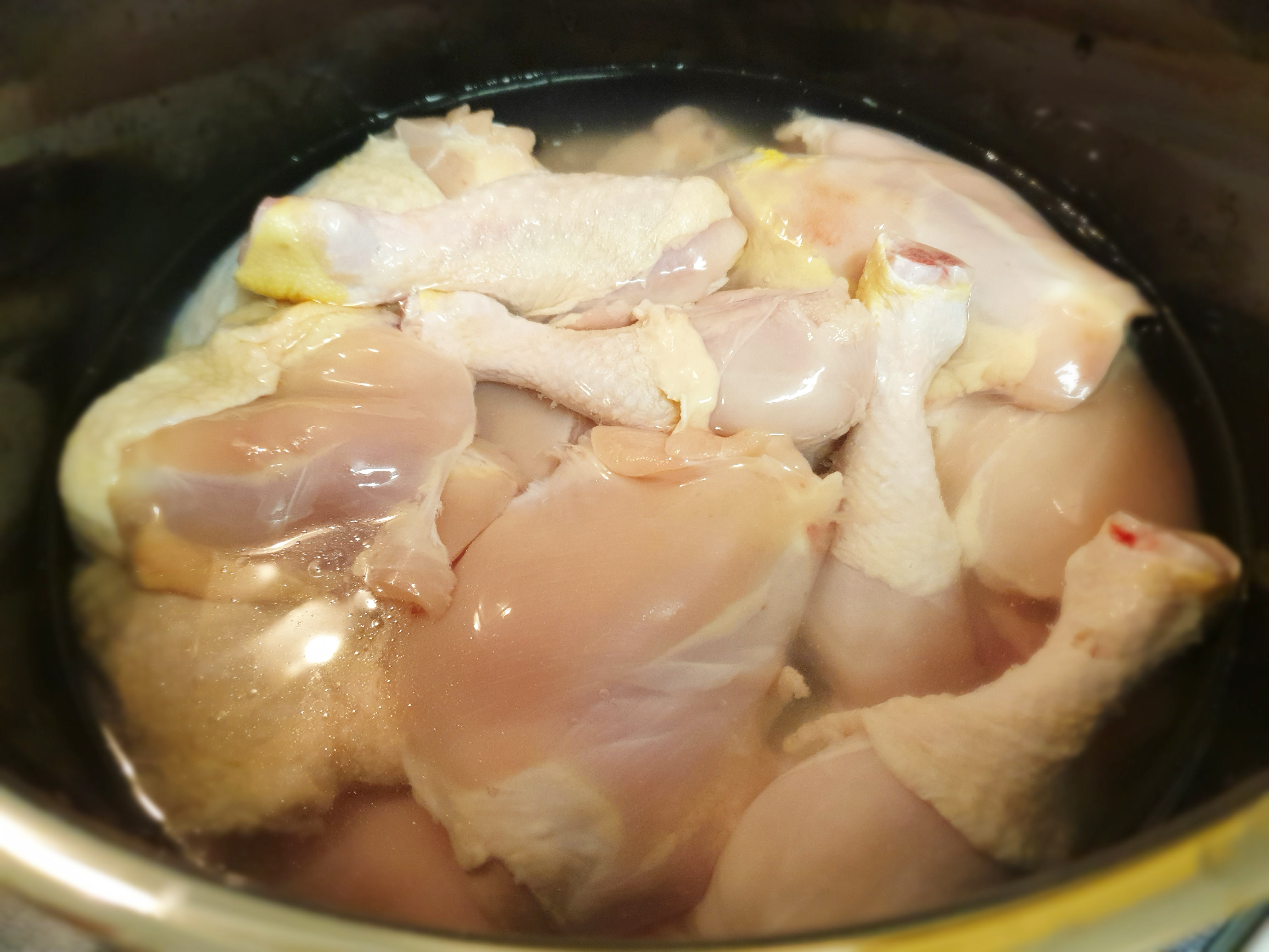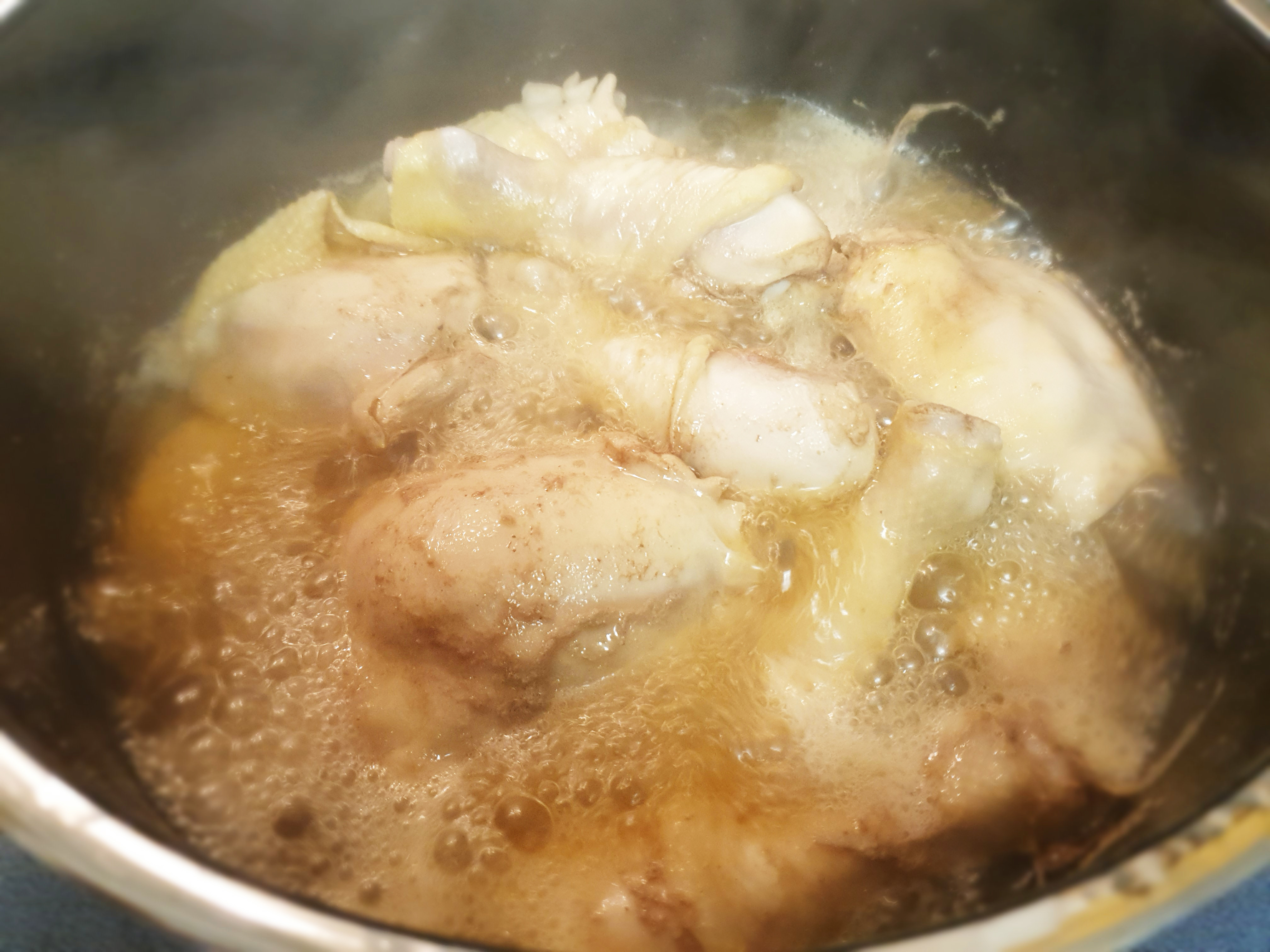 3. 2시간 뒤에 닭을 깨끗이 씻어 내고 냄비에 닭을 넣어줍니다. 그리고 물을 부어주는데 물은 닭이 완전히 잠기지 않을 정도로 자박하게 넣어주세요! 요리하는 과정에 서서 물이 생겨요~!