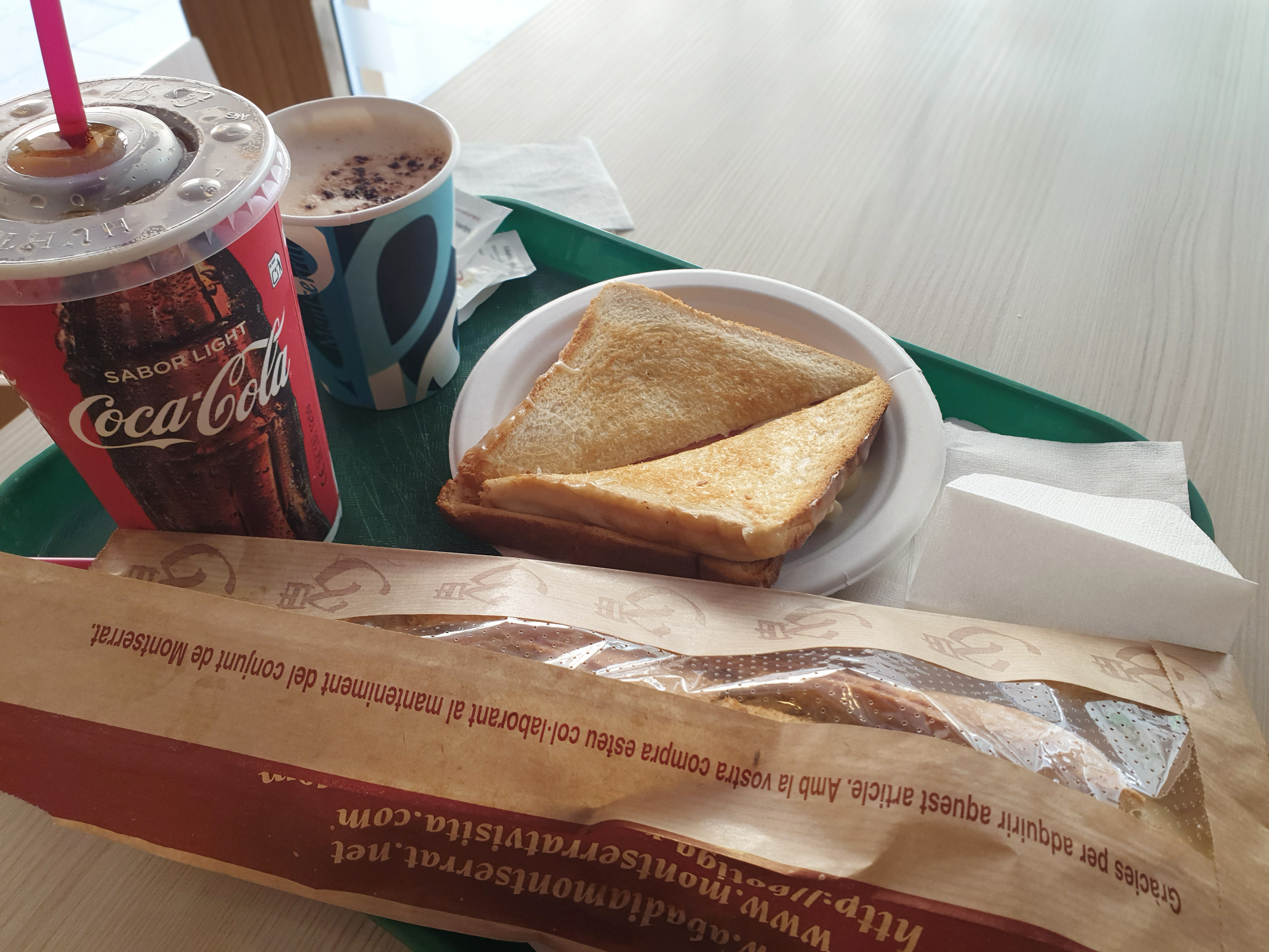 이른 시간에 만나서 밥도 못 먹고 나와 우리는 가이드분께서 추천해준 수도원 정문 앞에 위치한 카페를 가서 Bikini를 주문했다. (수영복 아니고 샌드위치 이름이 비키니임) 정말 맛있었음 >< 배를 채운 뒤 몬세라트 산세를 보기 위해 전망대로 향했다.