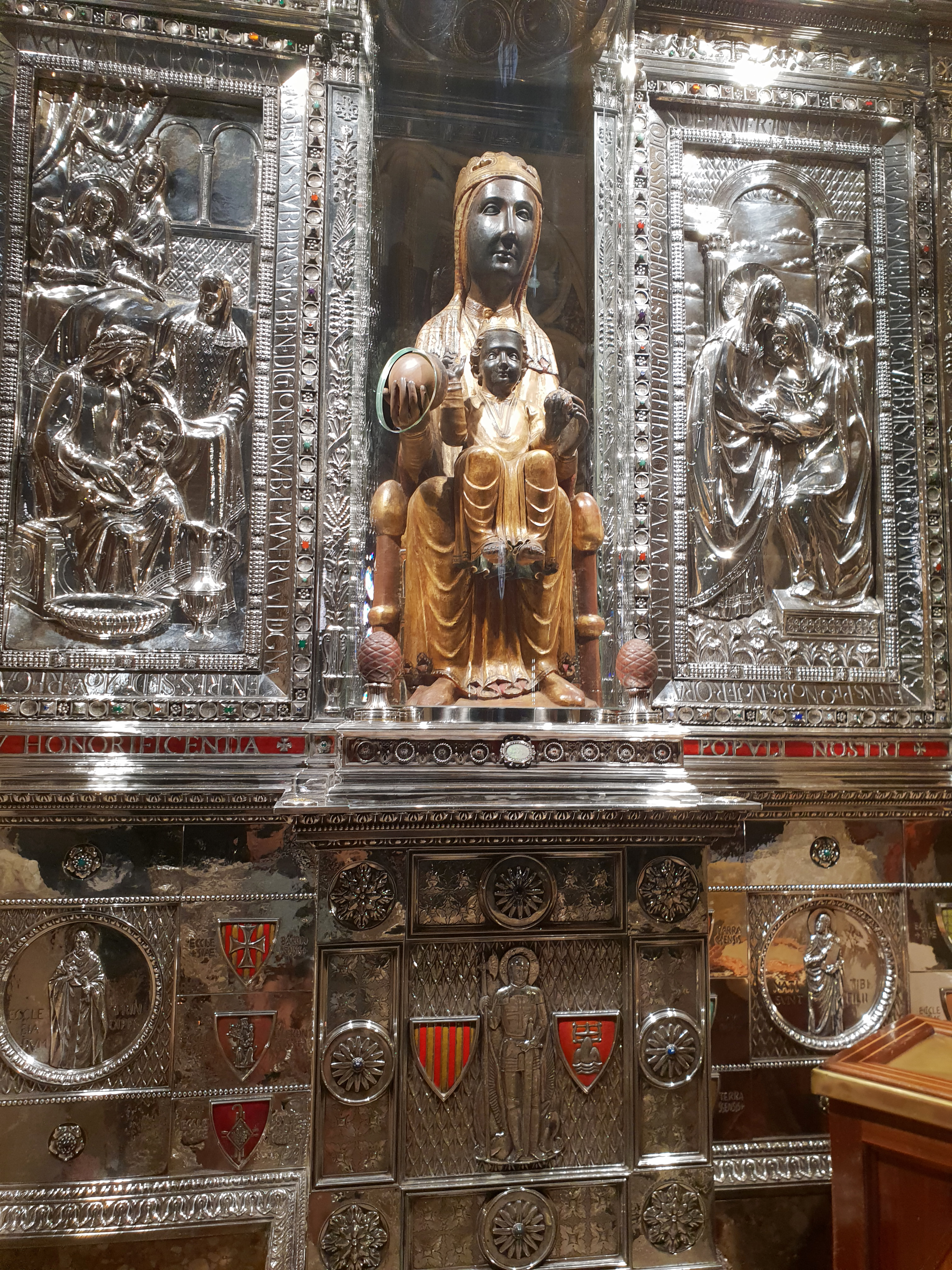 몬세라트에 오면 꼭 보고 와야 할 몬세라트 수도원과 성당! 성당 안에는 다른 성모상과 다른 검은 성모상이 모셔져 있다. 1100년에 발견된 얼굴이 검은 성모상. 1881년도에 교황이 카탈루냐 성모로 인정을 하고 몬세라트의 상징이자 카탈루냐 종교의 정신적 상징으로 여기고 있다. 검은 성모상은 구슬? 같은 것을 들고 있는데 이 구슬을 만지면 소원을 들어준다고 한다. 그래서 검은 성모상을 보고 구슬은 만져보기 위해 길게 줄을 섰다.