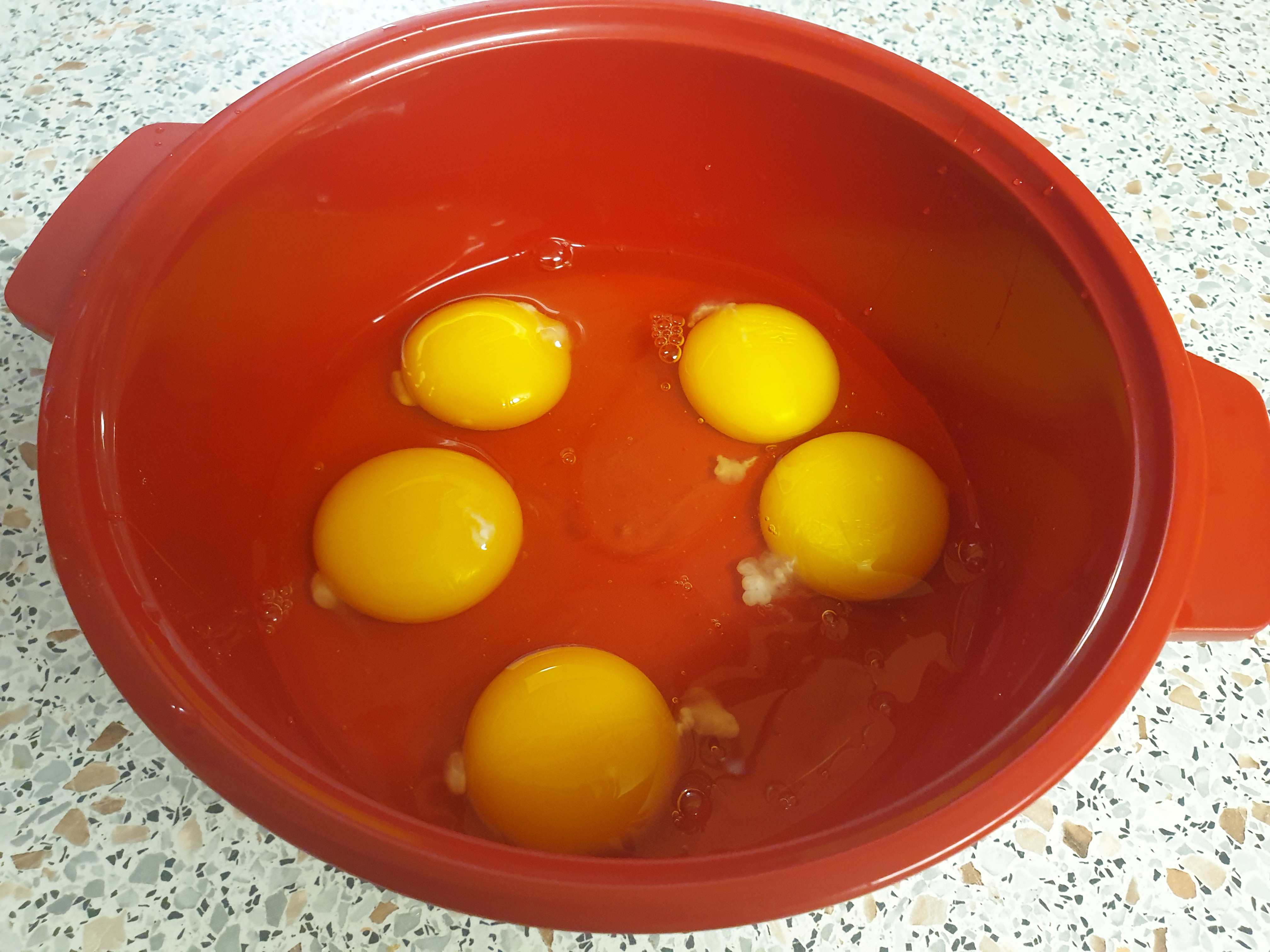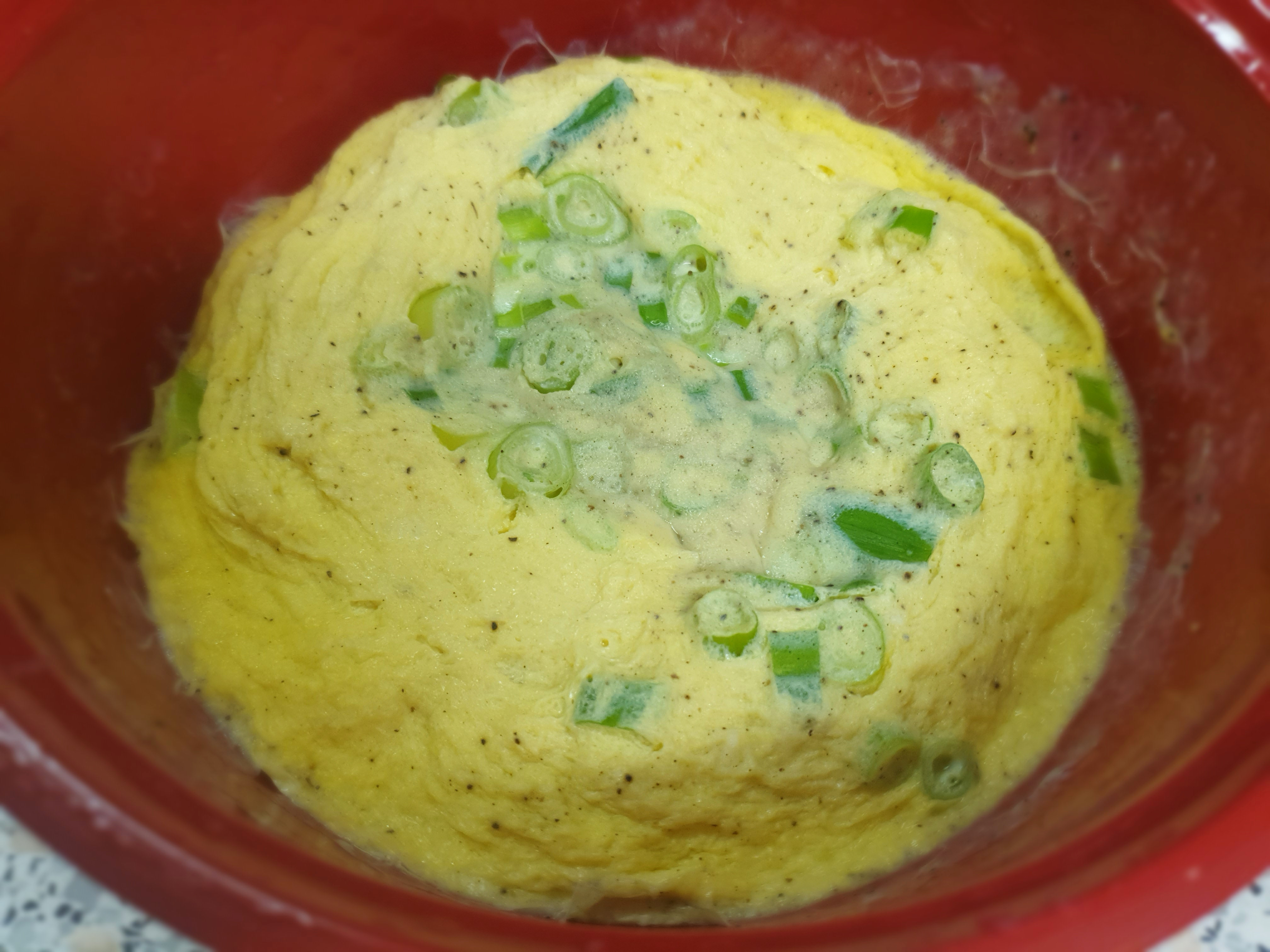젓가락으로 쿡 찔러보고 계란이 묻어 나오지 않으면 잘 익은 거고 묻어 나온다면 전자레인지에 더 돌려 익혀주세요~