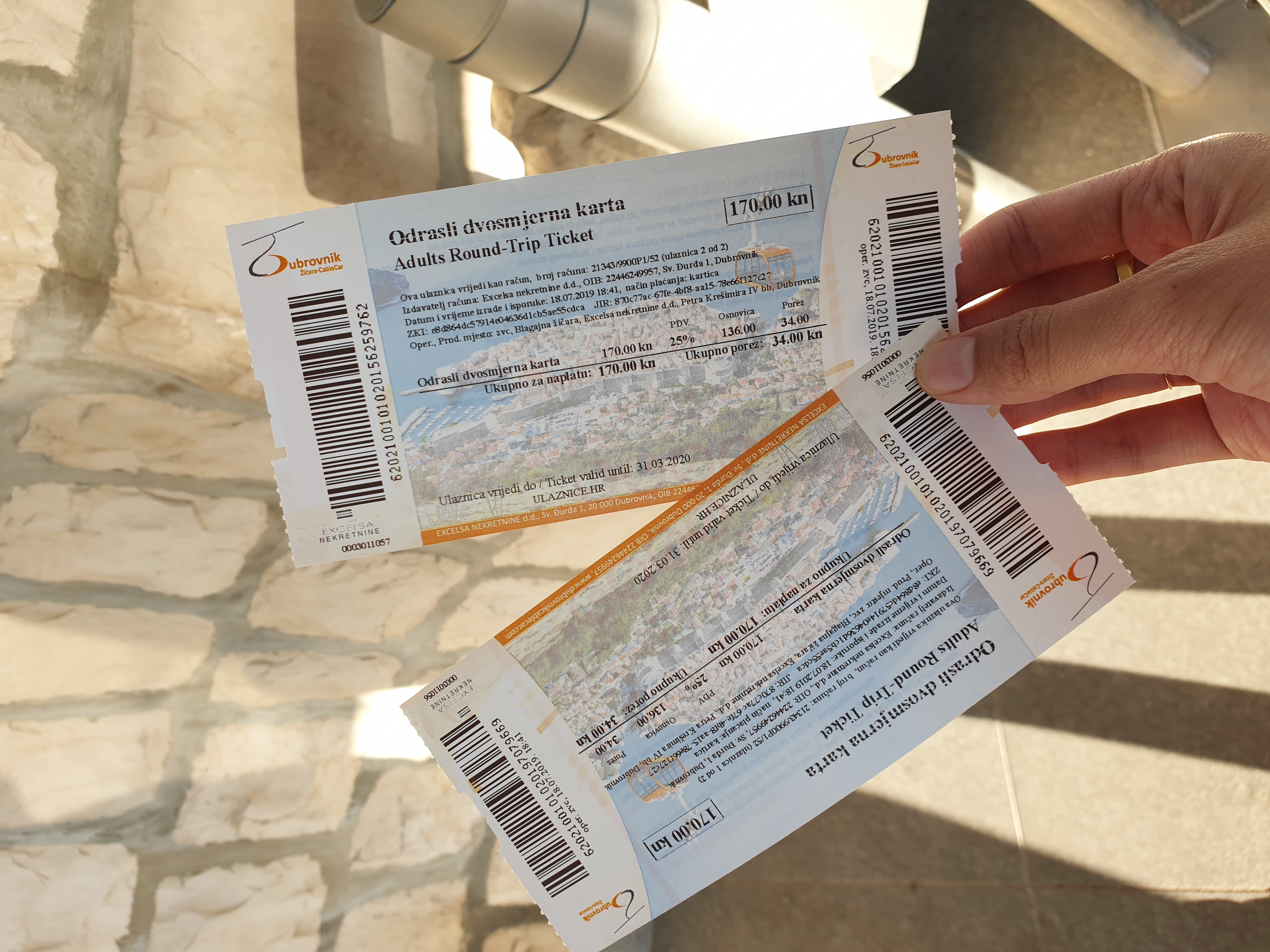 우리는 케이블카 왕복 탑승권 2장을 구매했고 총 340쿠나 한화로 약 62600월 정도