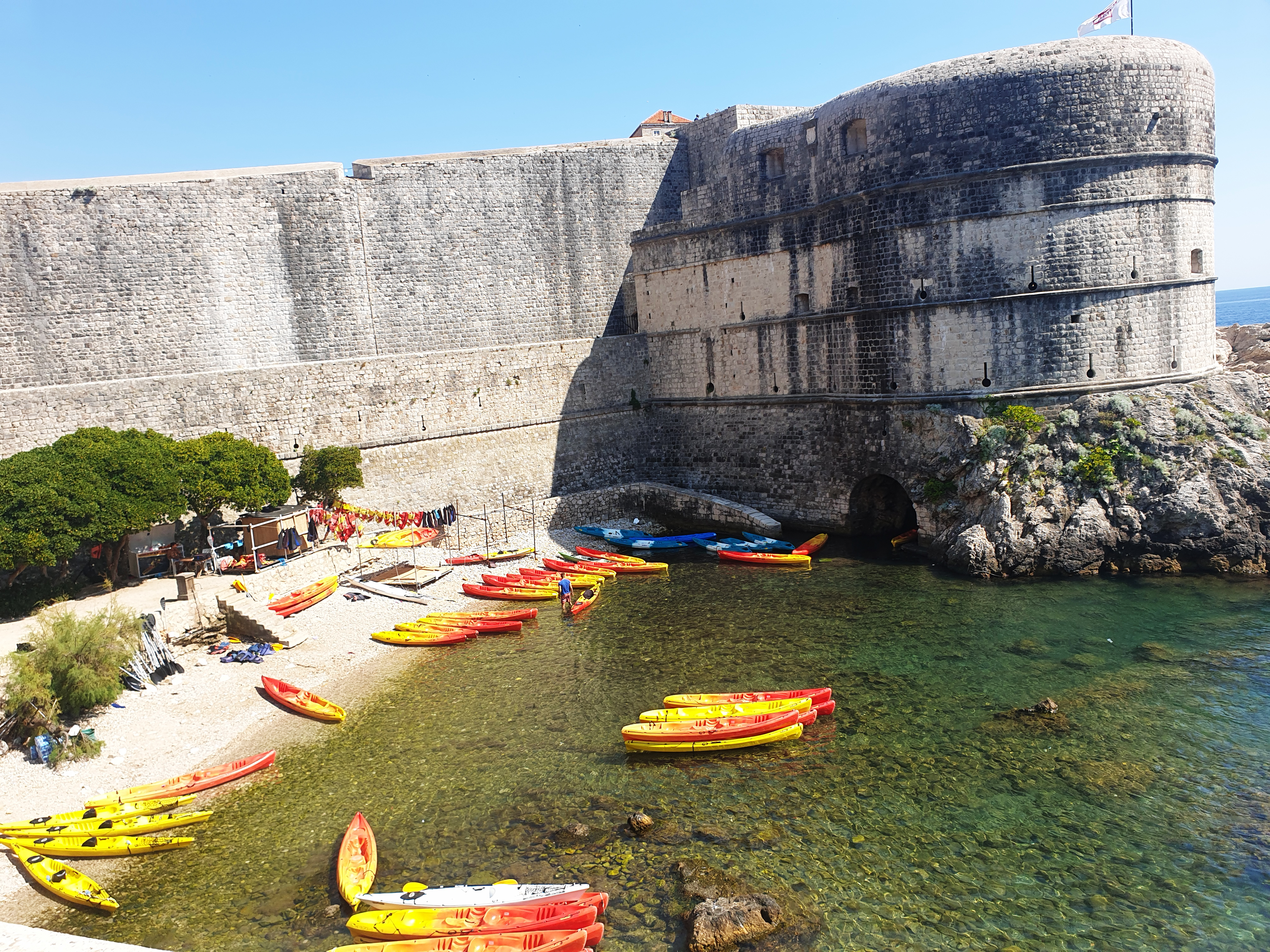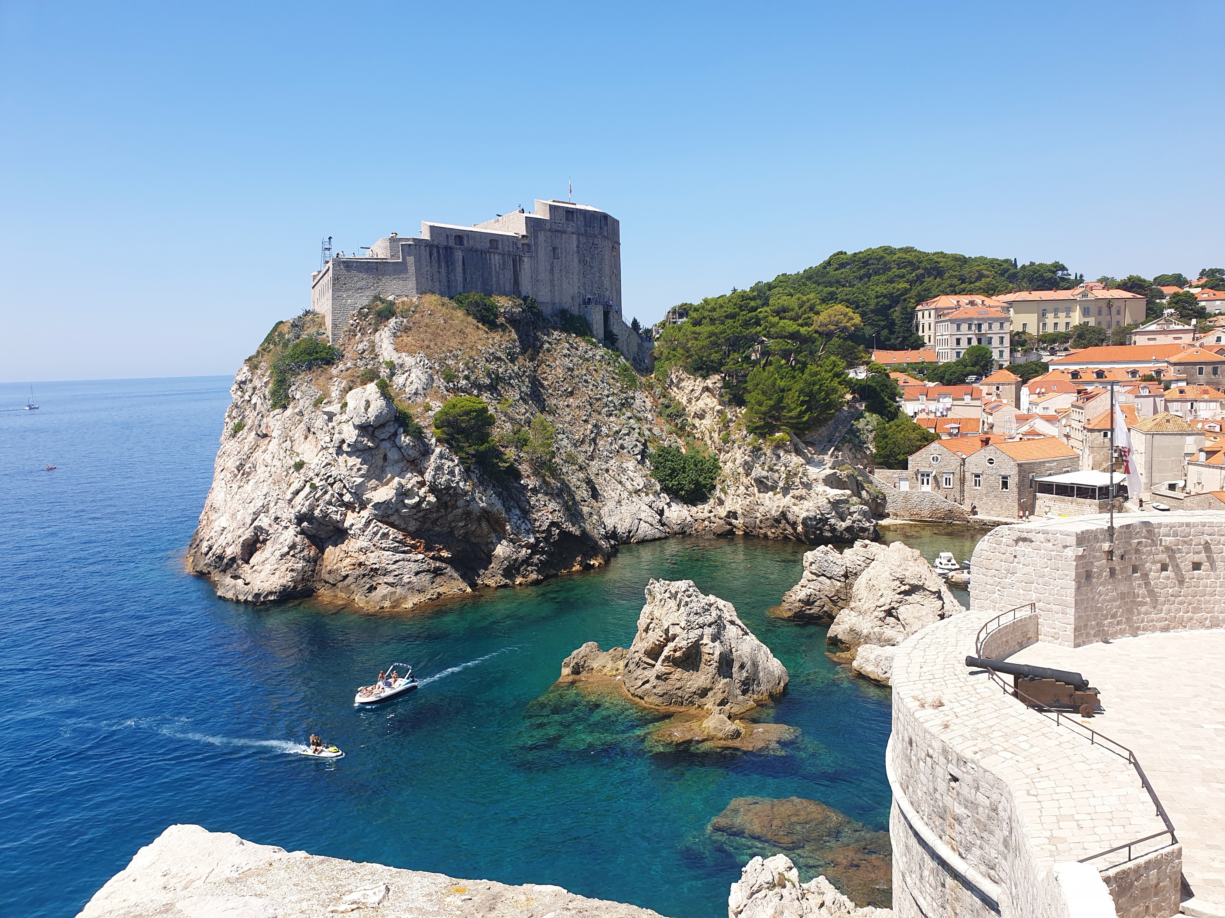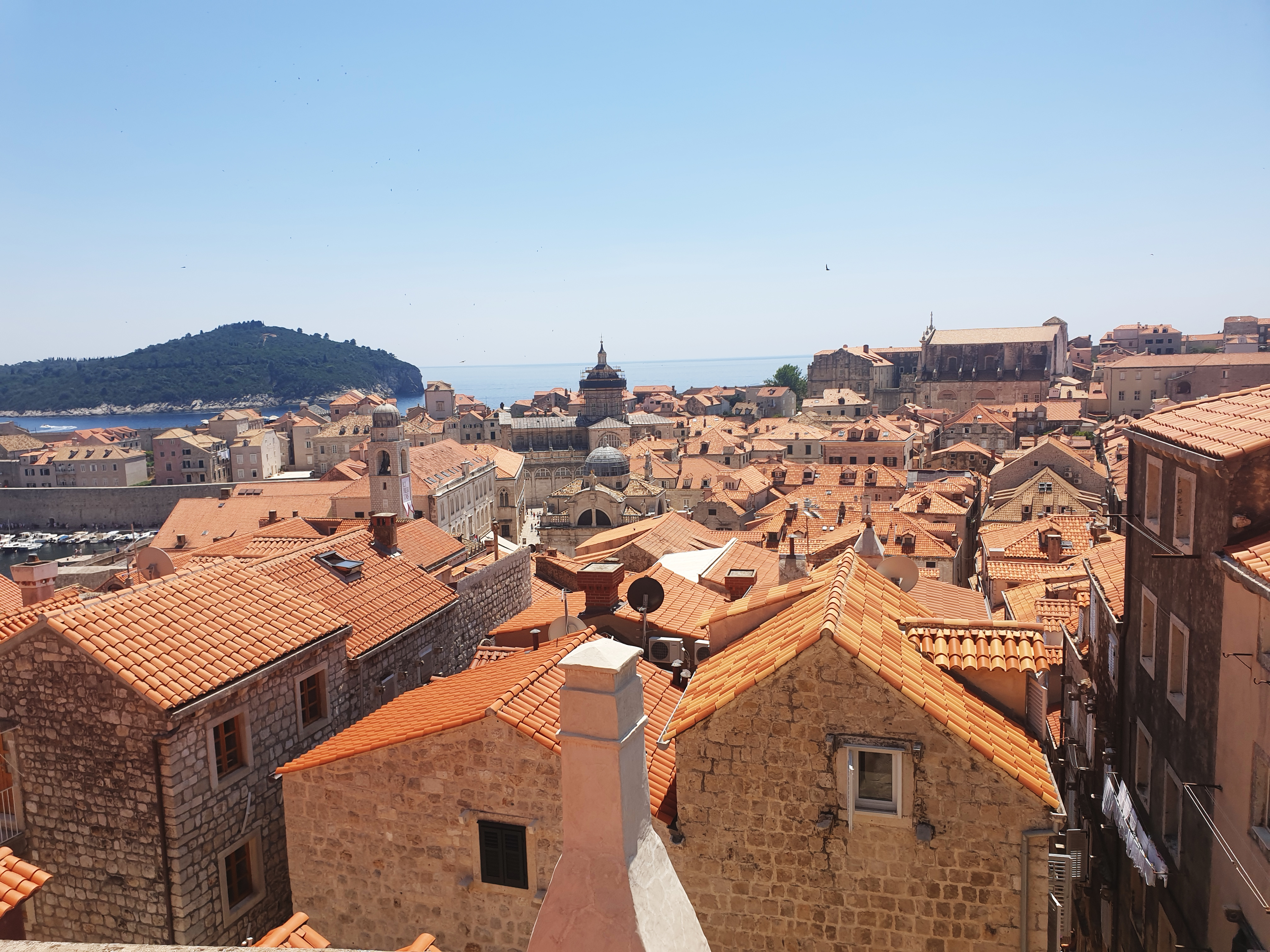 성벽 밖에 보이는 새파란 아드리아 해에서 카약 투어 하시는 분들.. 그리고 저 멀리 보이는 로크룸 섬!