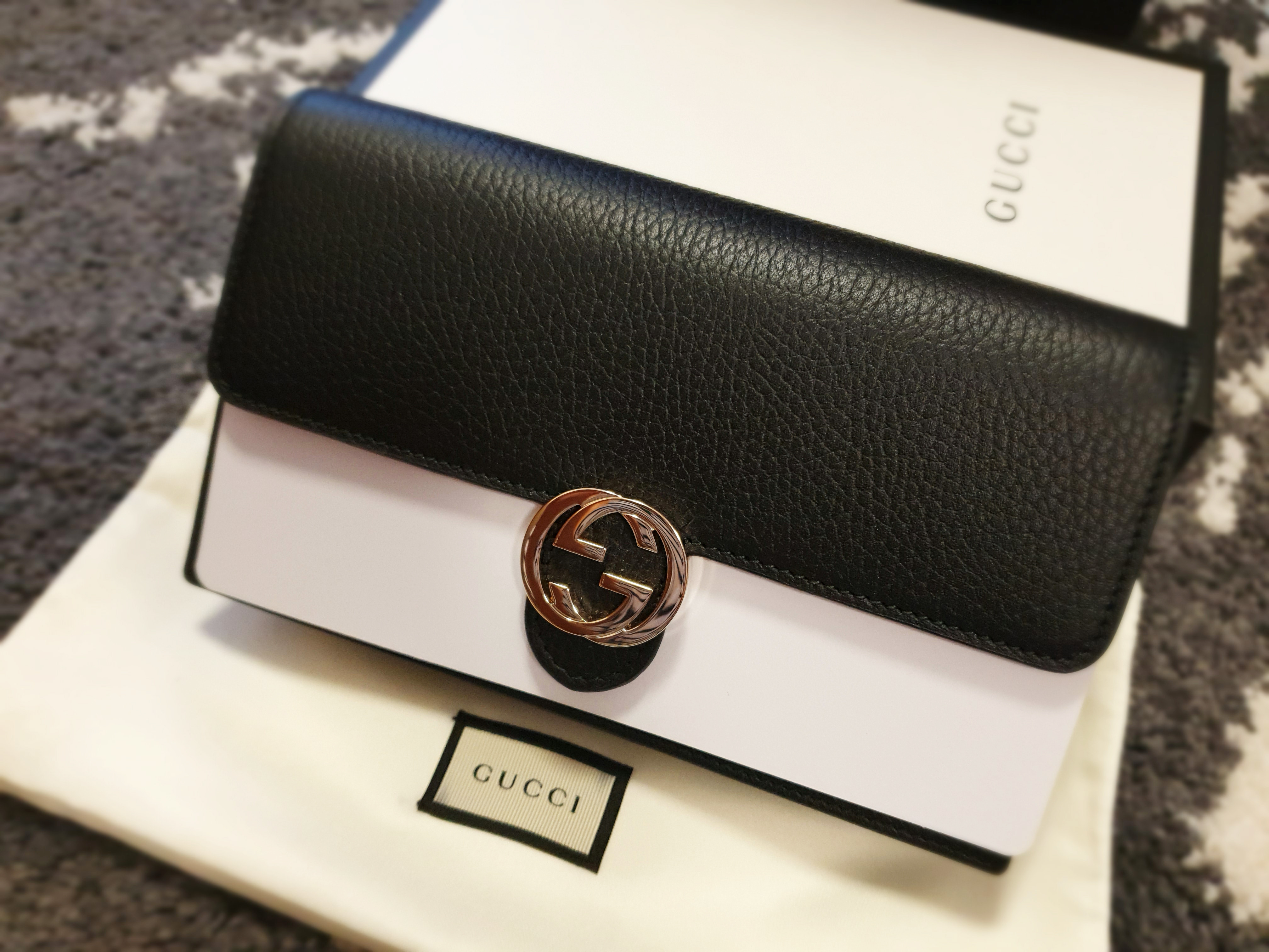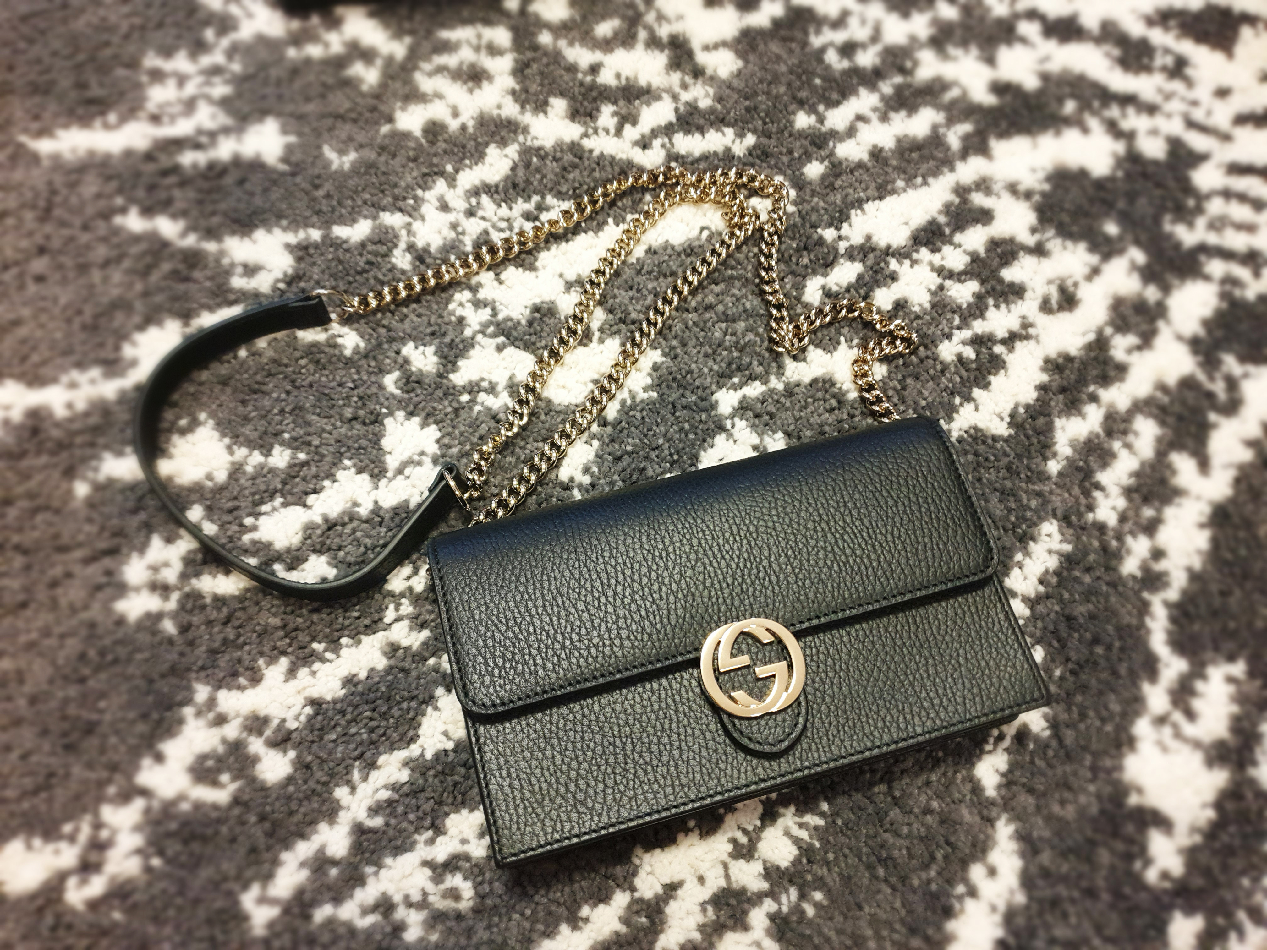 구찌 인터로킹 미니 크로스백은 블랙 색상 외에도 연 핑크, 연 회색, 레드, 색상이 있었지만 나는 역시나 블랙으로 선택... ㅋㅋㅋ