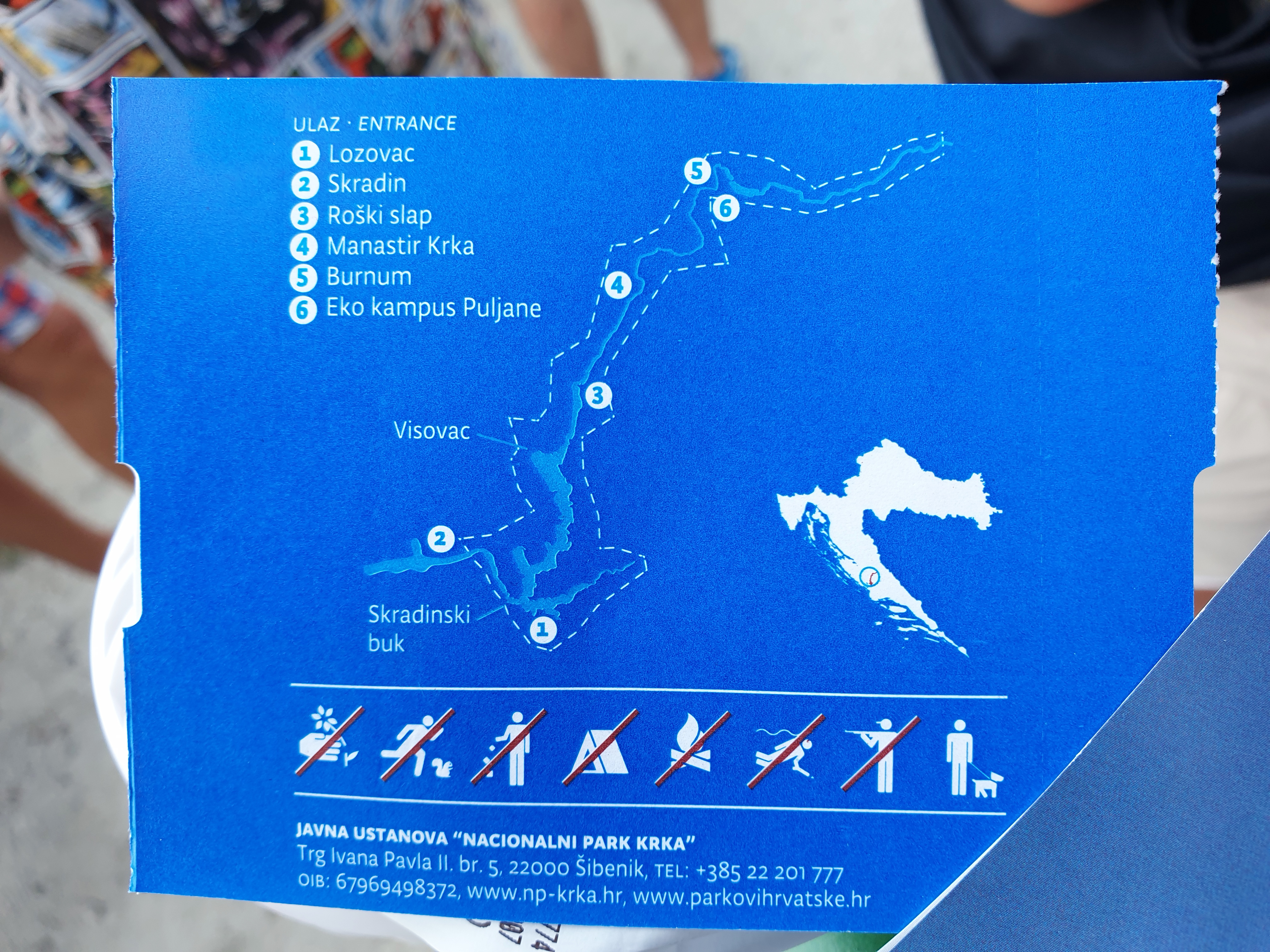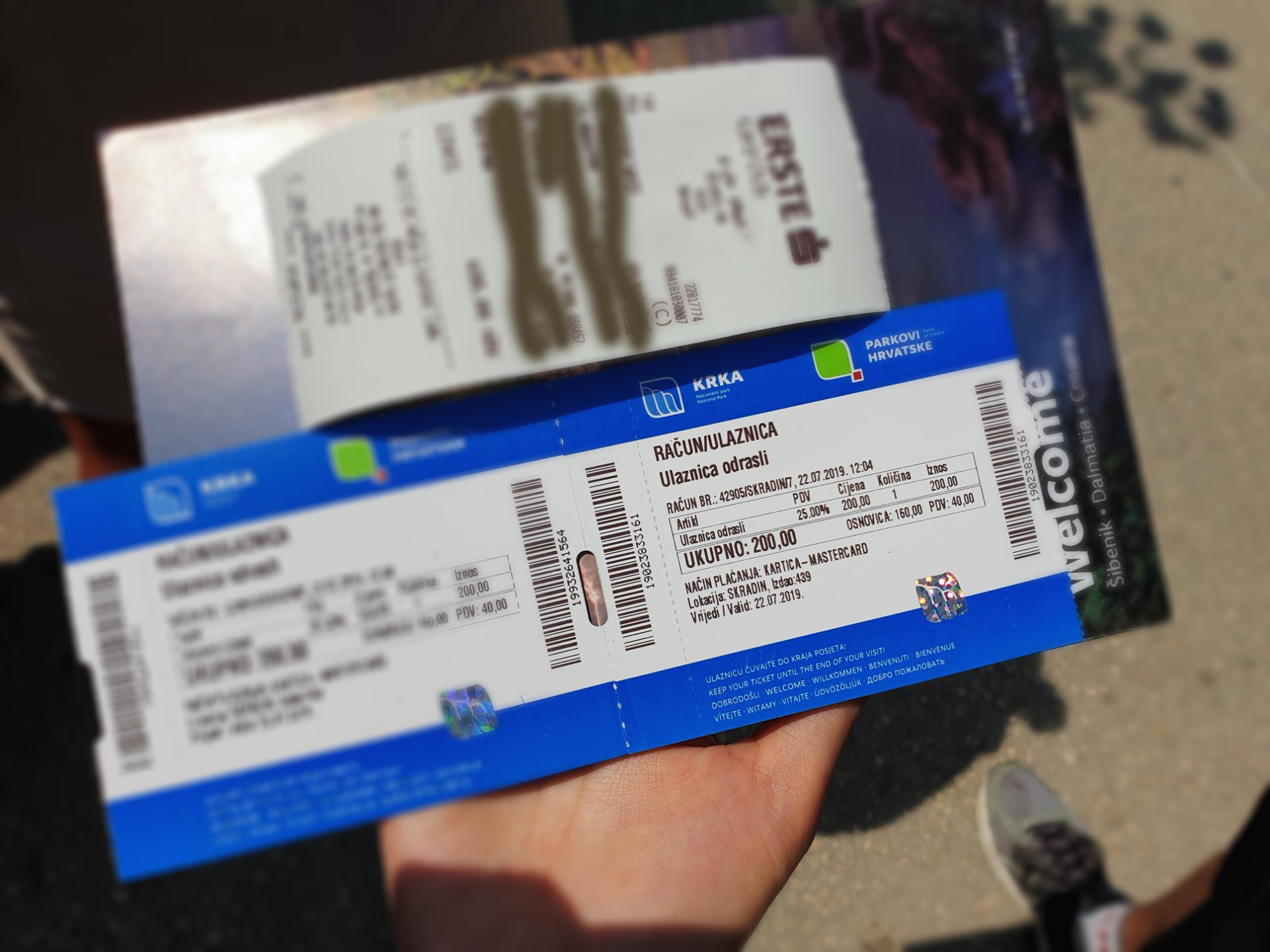 저희는 2번 스크라딘 폭포로 가기 위해서 (6월~9월 성수기) 성인 기준 1인 200쿠나 (약 36000원 정도) 지불했어요, 크로아티아는 어딜 가나 입장료가 기본 200쿠나부터인 것 같아요...