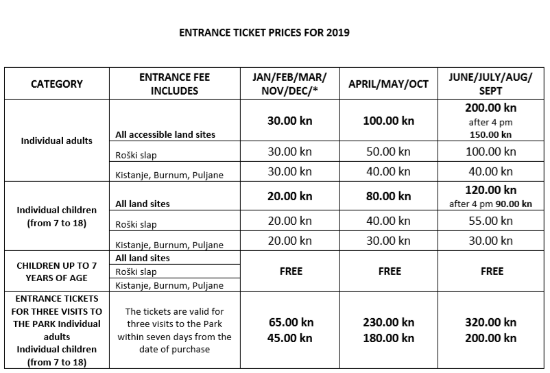 출처:http://www.np-krka.hr/stranice/pricelist-2019-individual-visitors/337/en.html