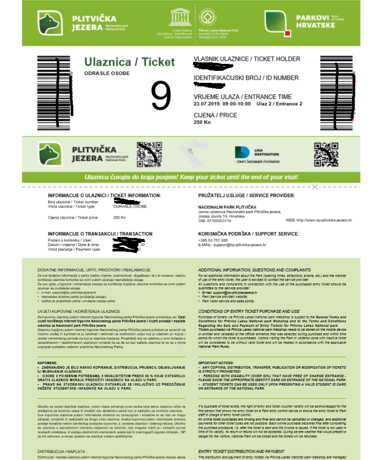 NP Plitvička jezera e-Ticket sustav | NP Plitvička jezera