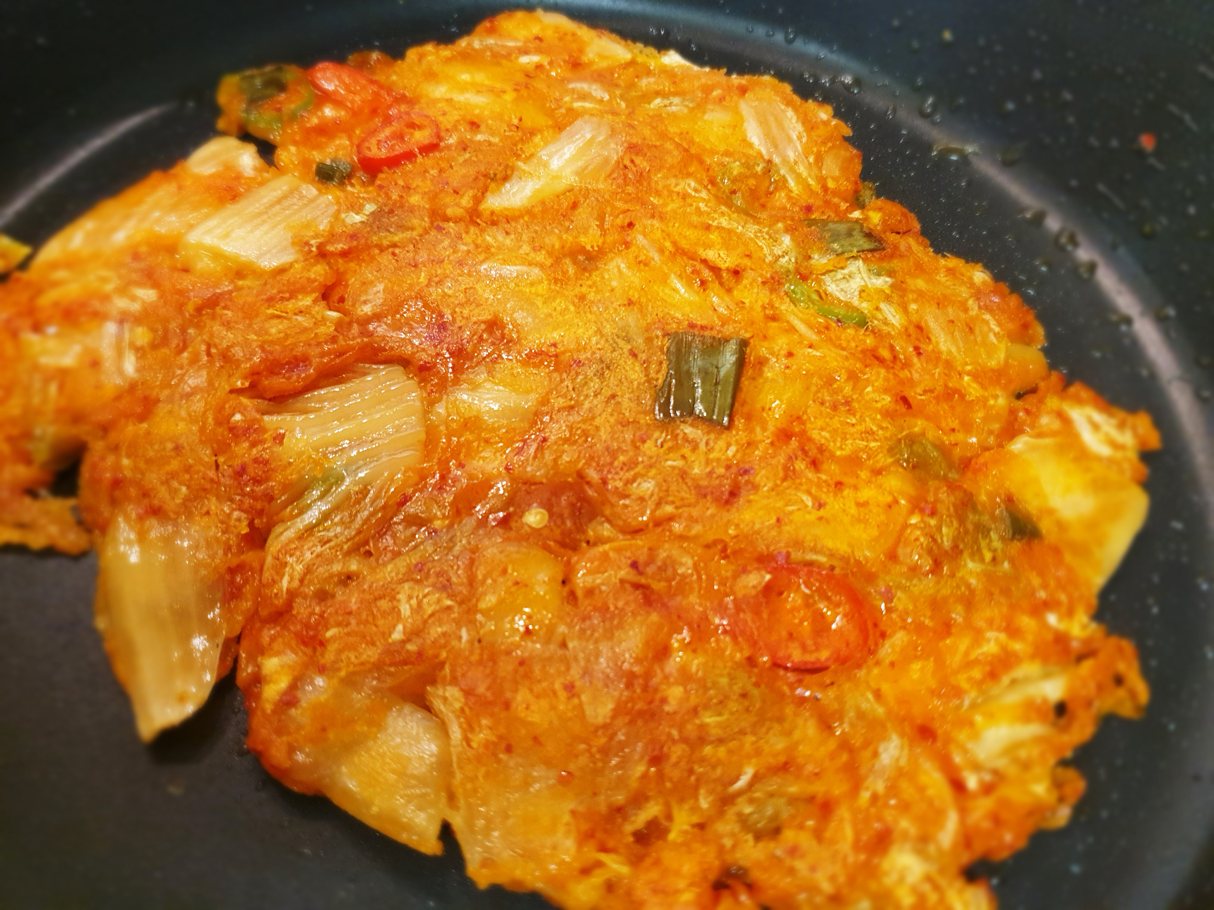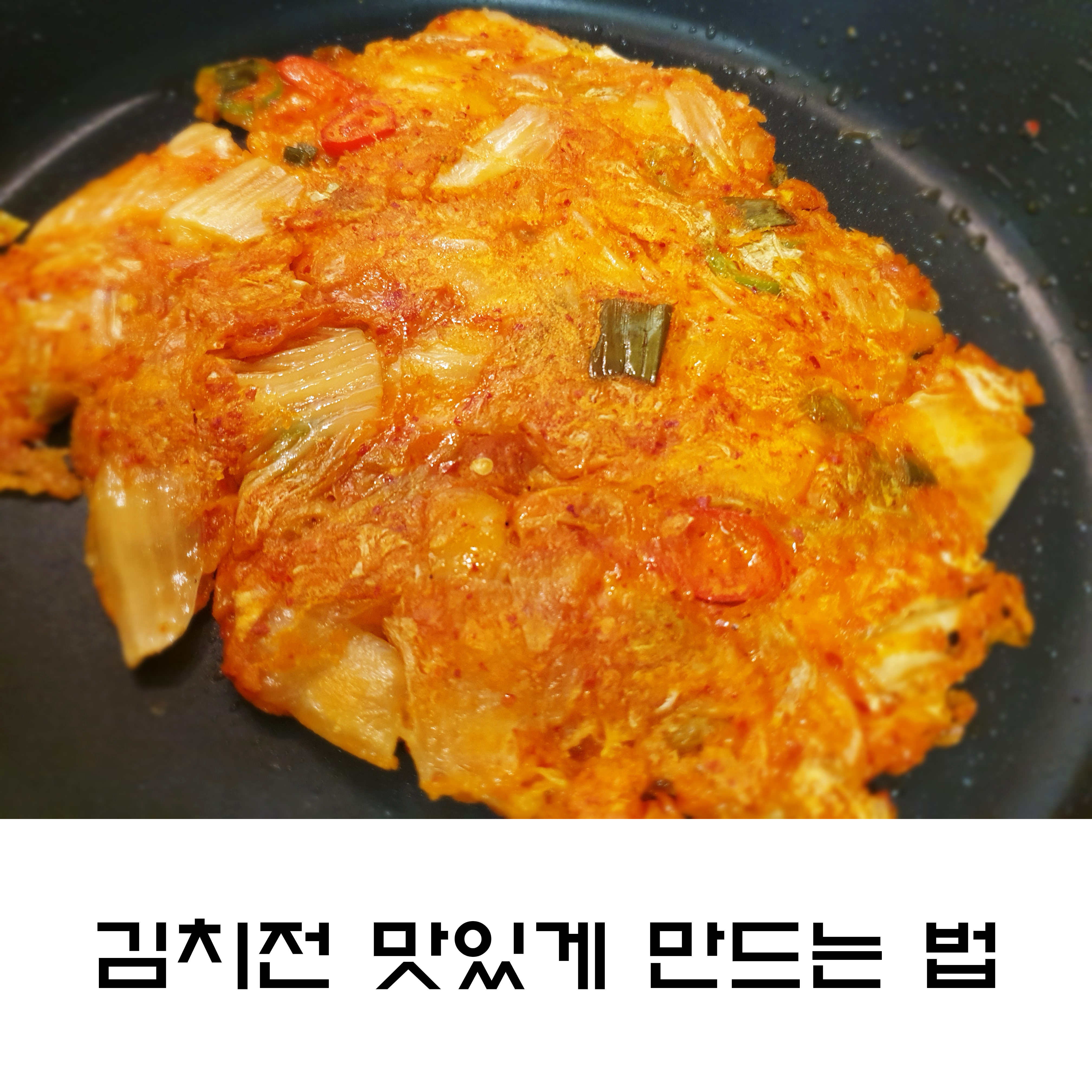 앞뒤로 골고루 김치전을 익혀주면 끝!! 전 김치전을 만들 때 밀가루를 적게 넣는 편이에요~ 그래야 간장을 찍어 먹지 않고 이것저것 조미료를 넣지 않아도 맛이 풍성하더라고요~