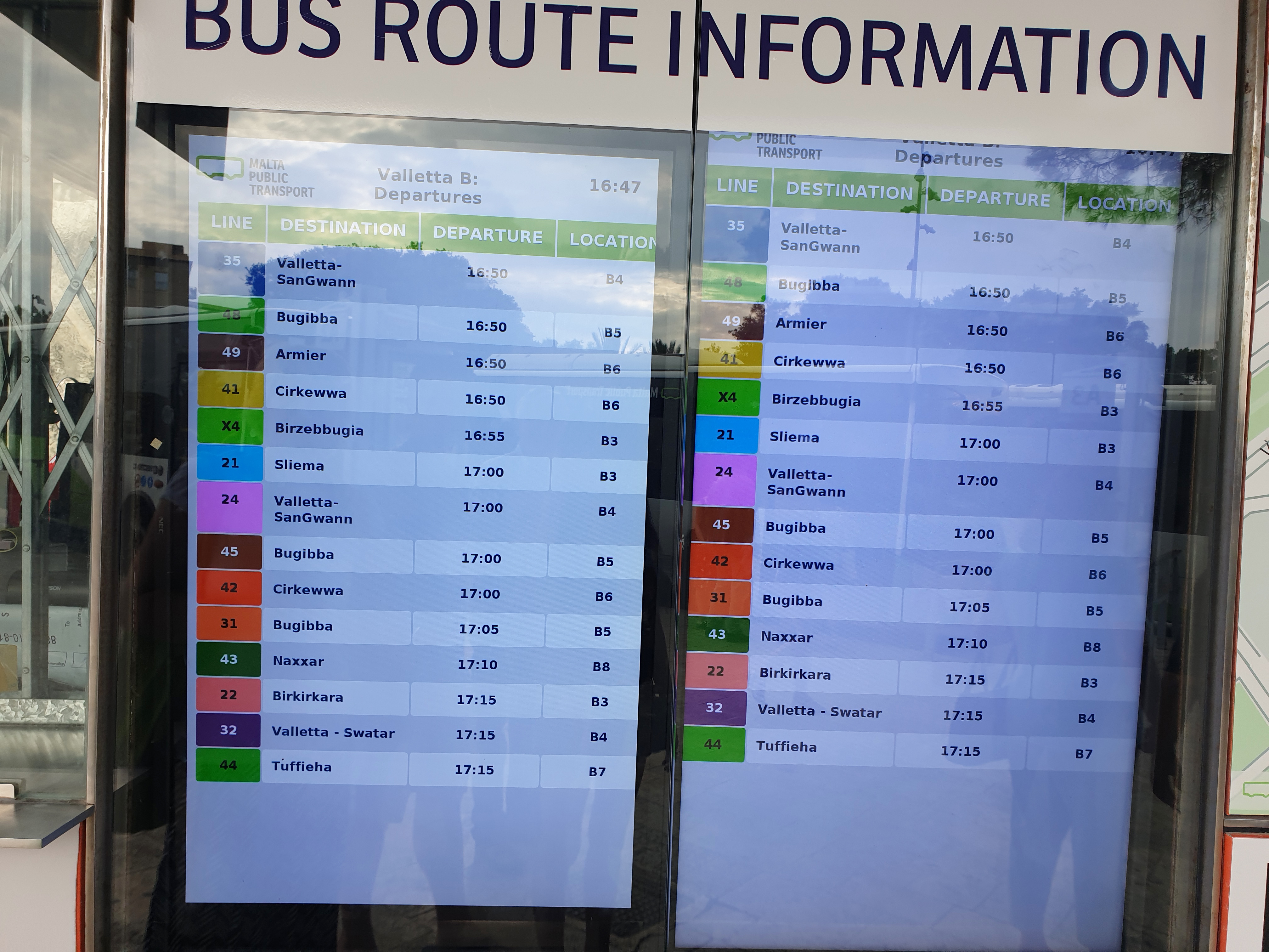몰타 공항에서 버스 타는 곳으로 오면 공항으로 다니는 버스들을 볼 수 있습니다. 목적지로 향하는 버스를 이용하시면 돼요~!