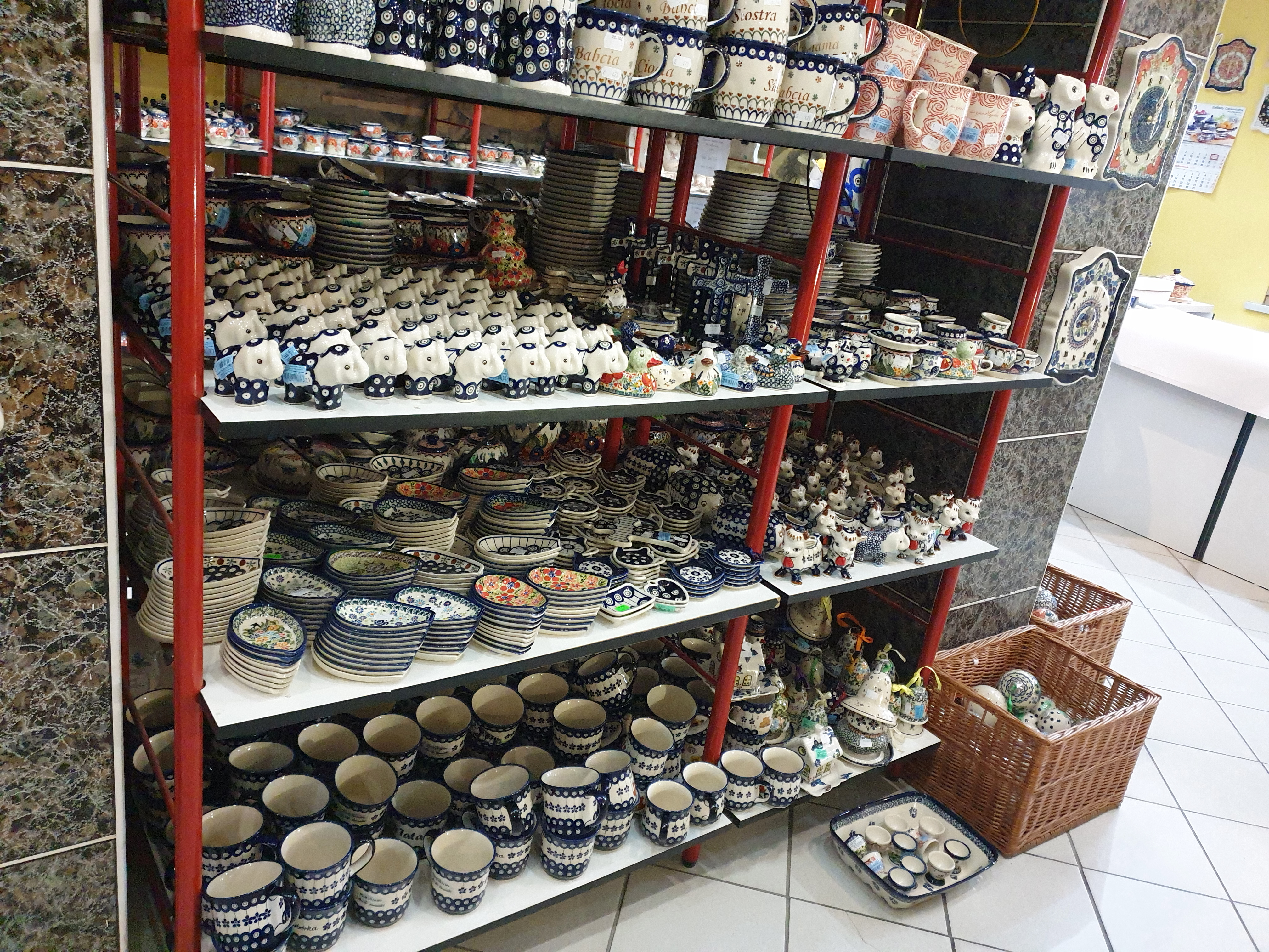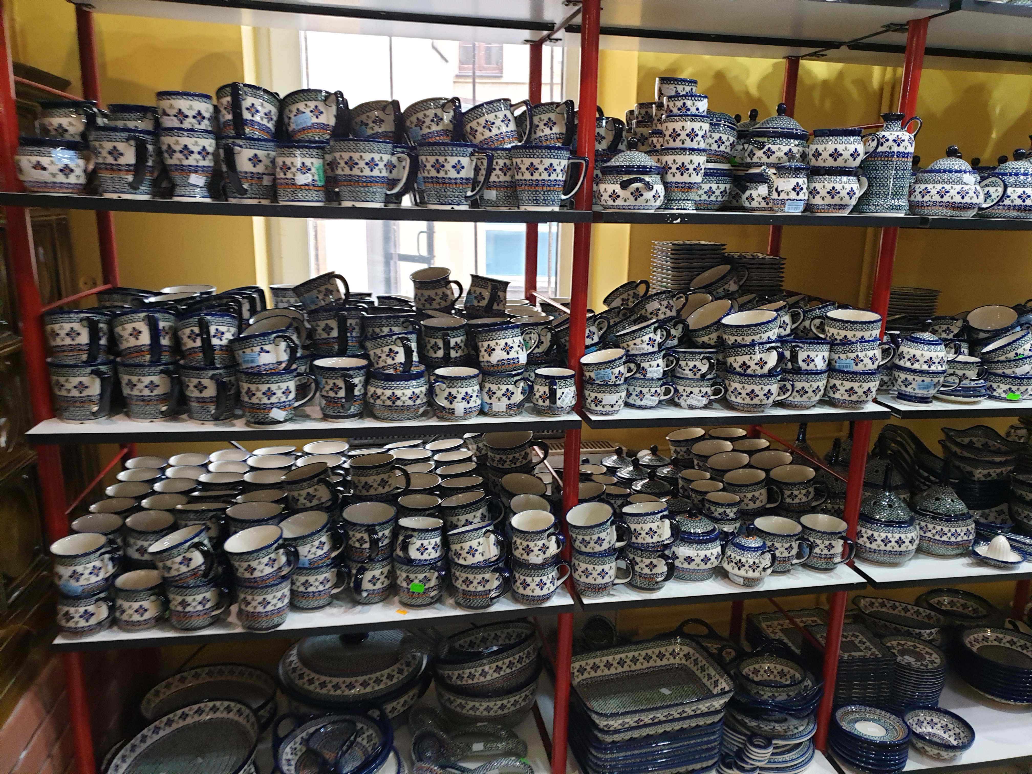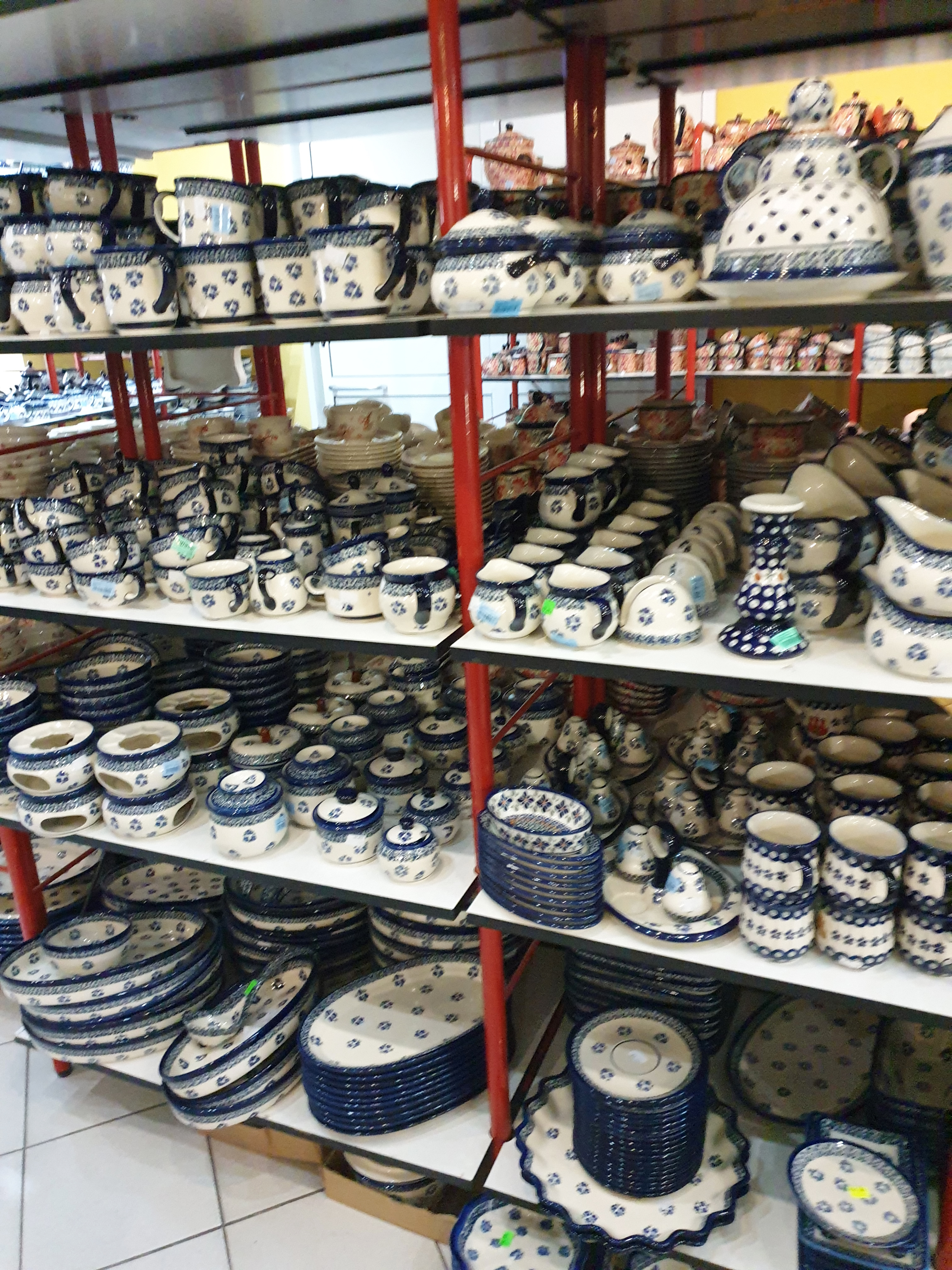 이 폴란드 그릇들은 볼레스와비에츠에서 여러 폴란드그릇 공장들을 돌아다니면서 구매한 그릇들이에요~ ㅋㅋ 저기 위에 보이는 항아리 같은 상품이 자크라디에서 구매한 거예요!