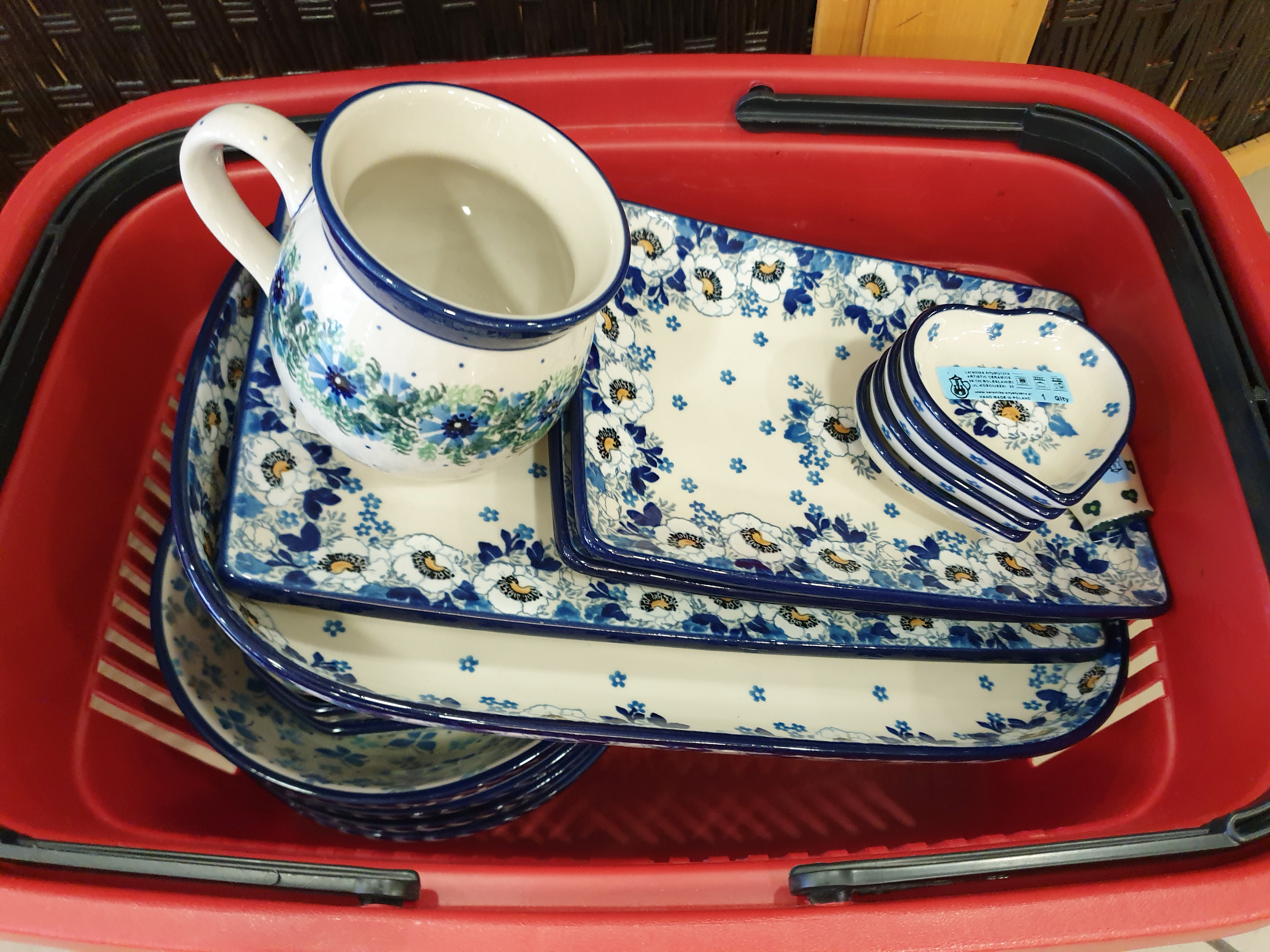 다른 공장에 갔을 때는 눈으로만 구경을 하고 딱히 당기는 그릇들이 없었는데 폴란드그릇 아티스티나 공장에 오니 뭐 이리 이쁜 게 눈에 많이 들어오는지.. 바구니에 담기 시작 ㅋㅋㅋ