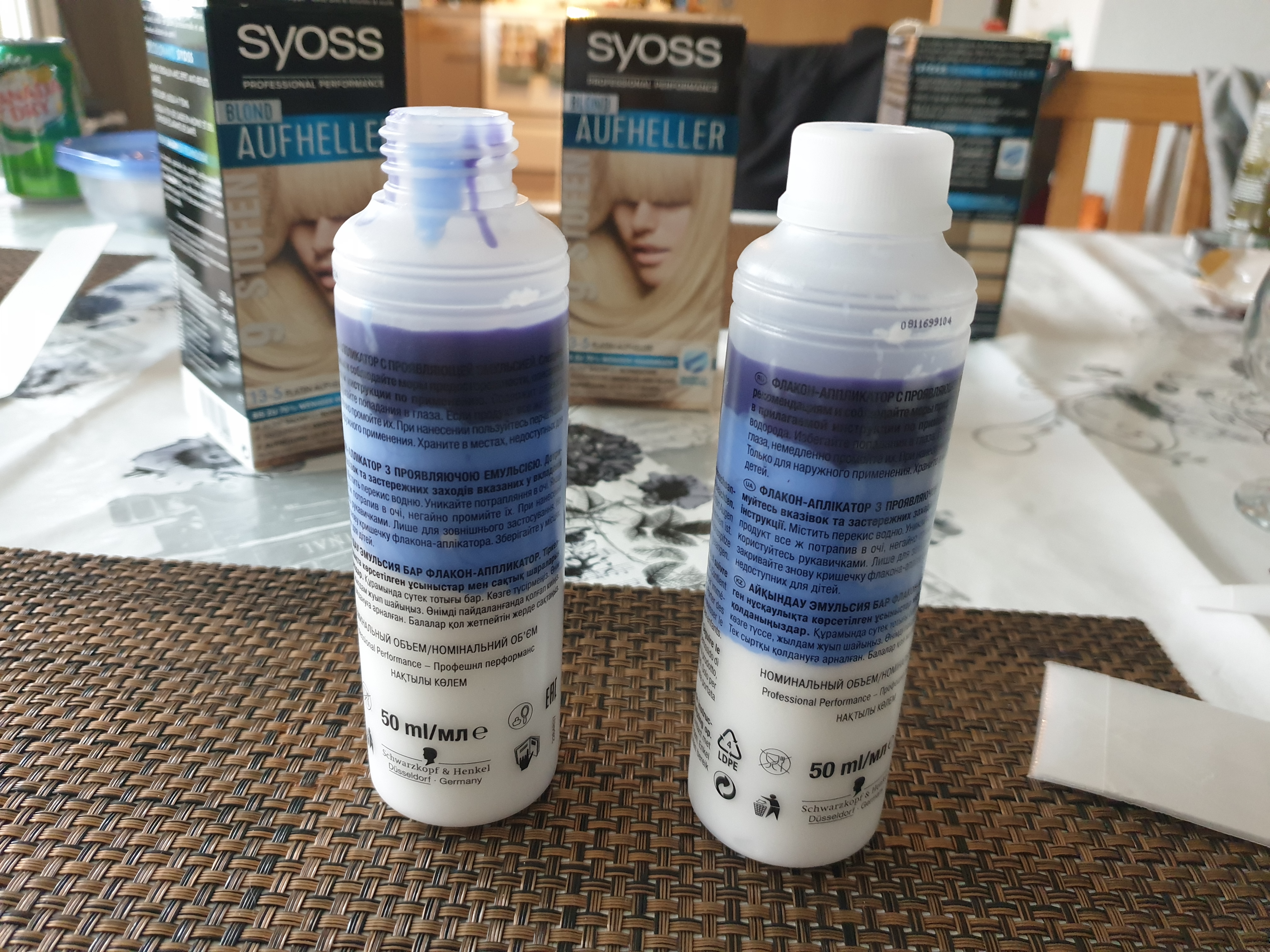 사이오스 탈색약(syoss)13-5 3개를 구매를 해왔어요! 컨디셔널을 제외한 나머지를 통에 다 넣어주시면 됩니다.