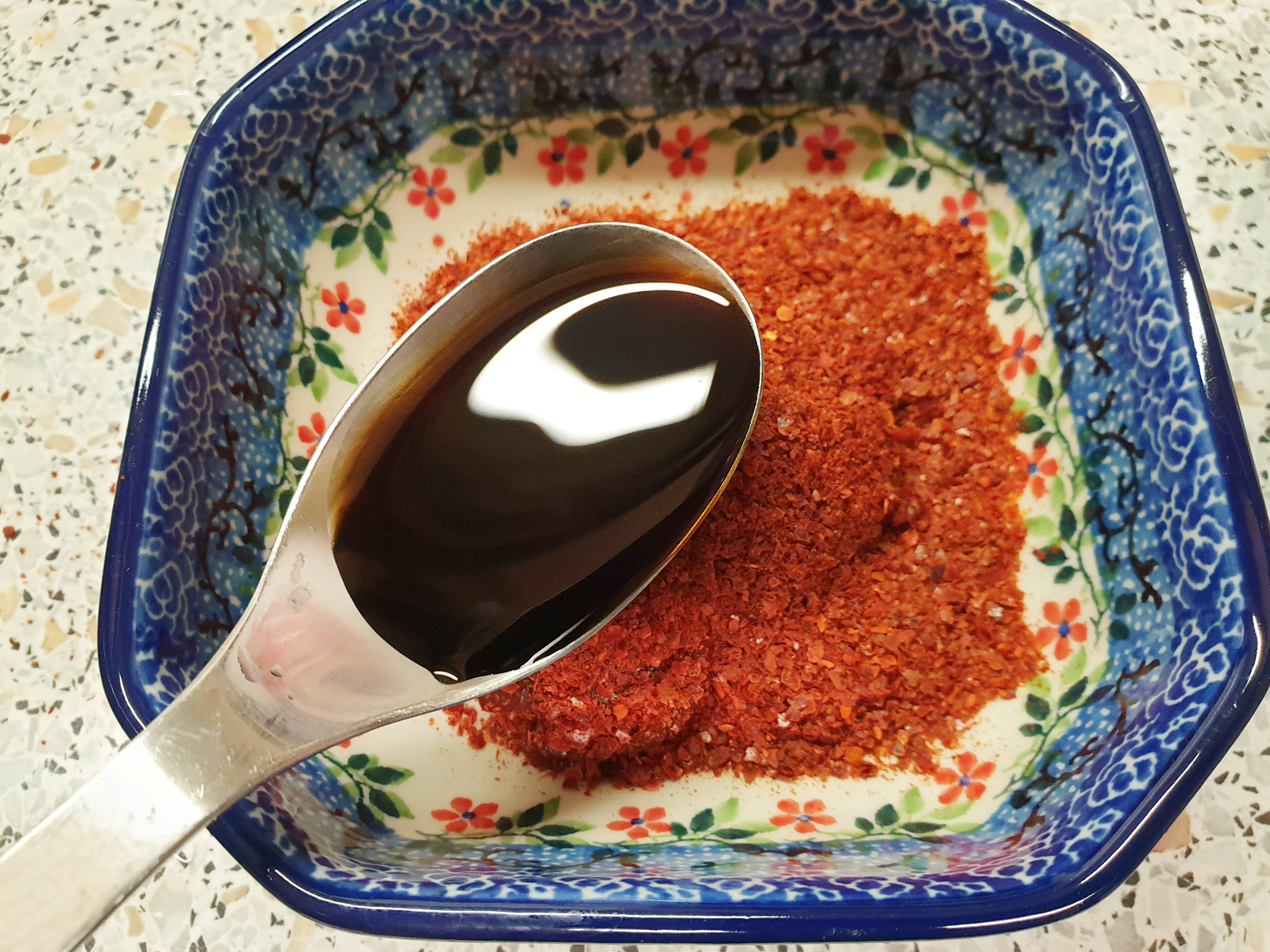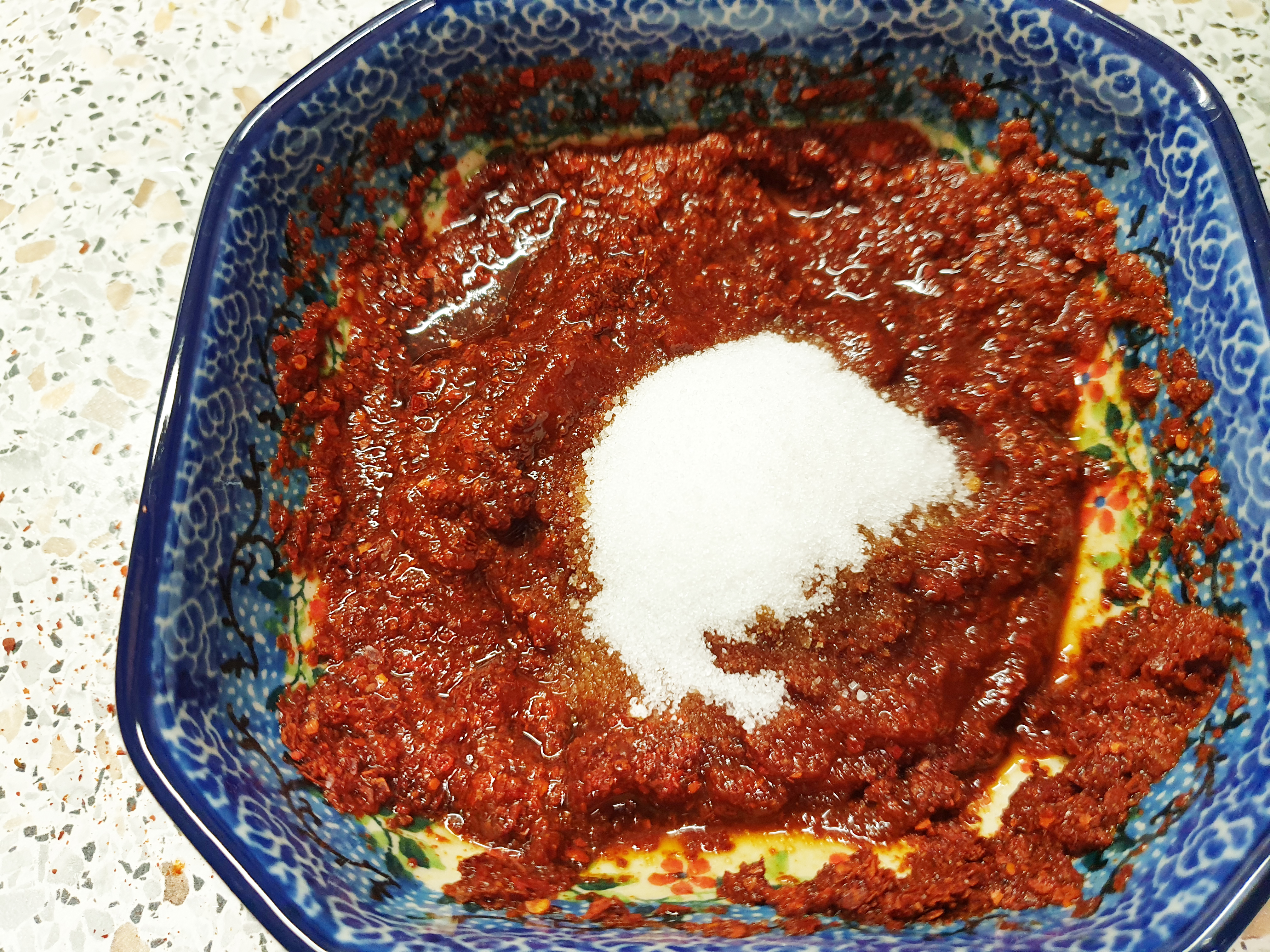 고추장 1스푼, 고춧가루 2스푼, 간장 2스푼, 설탕 1스푼 , 식초 2스푼 반을 넣고 잘 섞어 양념장을 준비해줍니다.