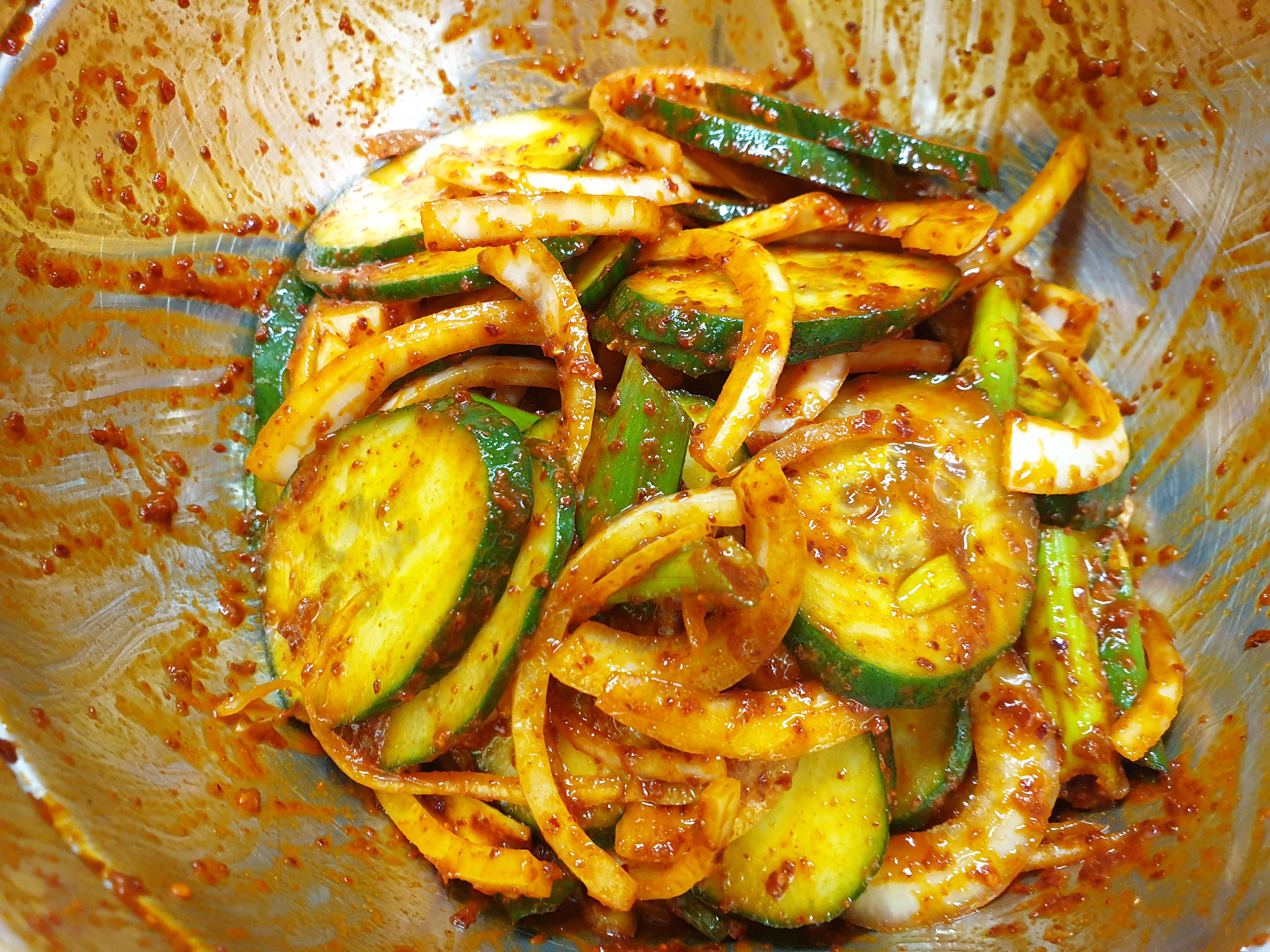 냉장고를 열어보니 김치가 똑 떨어져서 김치 만드는 김에 오이무침도 같이 한번 만들어 봤어요~ 오이 한 개를 먹으면 비타민C 하루 권장량의 14%를 섭취할 수 있고 지방이 없고 탄수화물이 적어 많이 먹어도 부담 없는 채소인 오이~! 영양소가 풍부한 오이를 이용해 누구나 쉽게 맛있게 만들어 먹을 수 있는 오이무침 황금레시피 ( (오이무침 맛있게 하는법) 을 소개해 드릴게요!