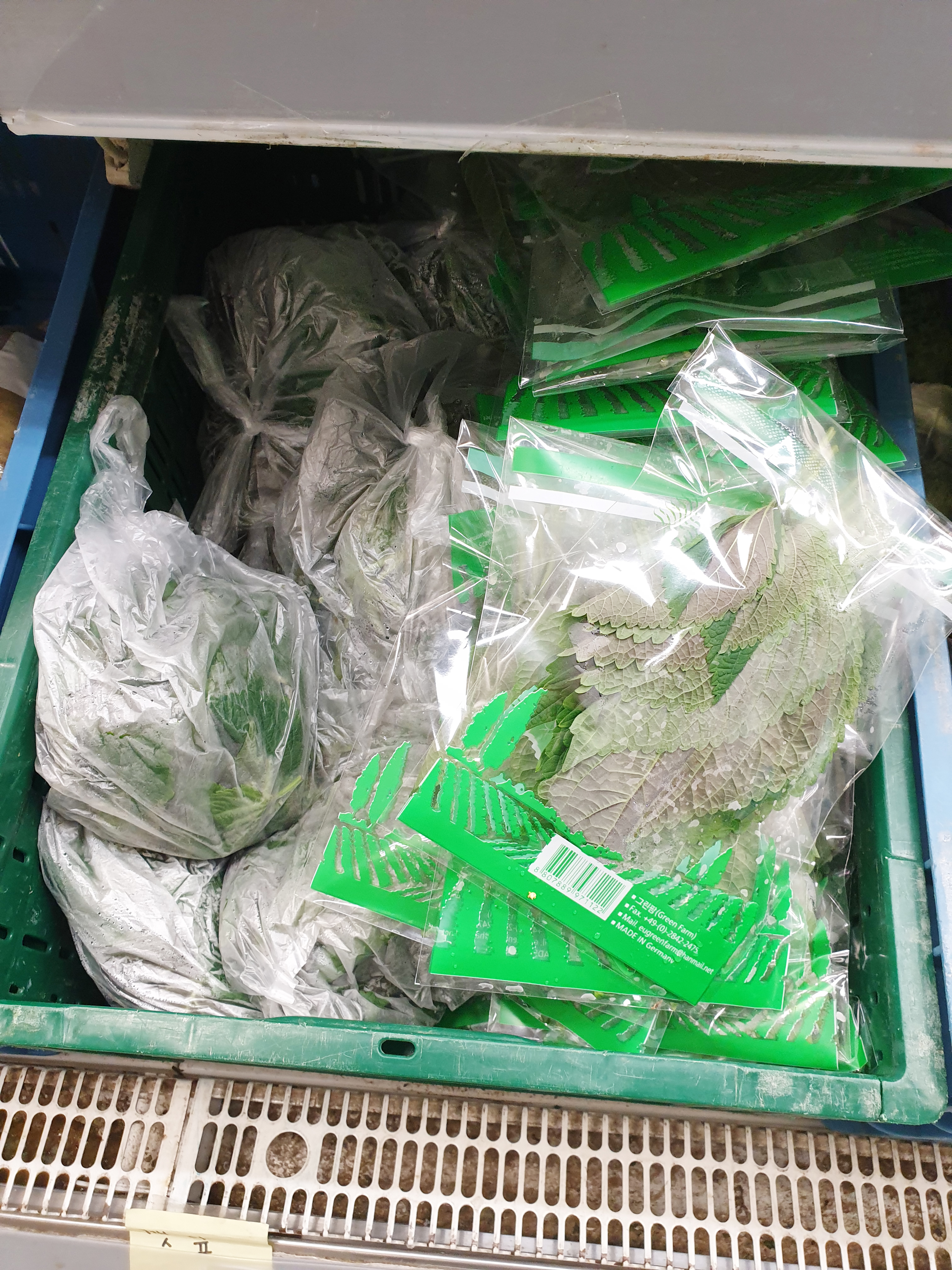 독일에서 정말 구하기 힘든 부추와 깻잎 ㅋㅋ 부추는없었지만 깻잎은 팔고 있었다.. 근데 가격이.. 한봉에 3.50유로.. 그냥 안 먹을래 ^^;;