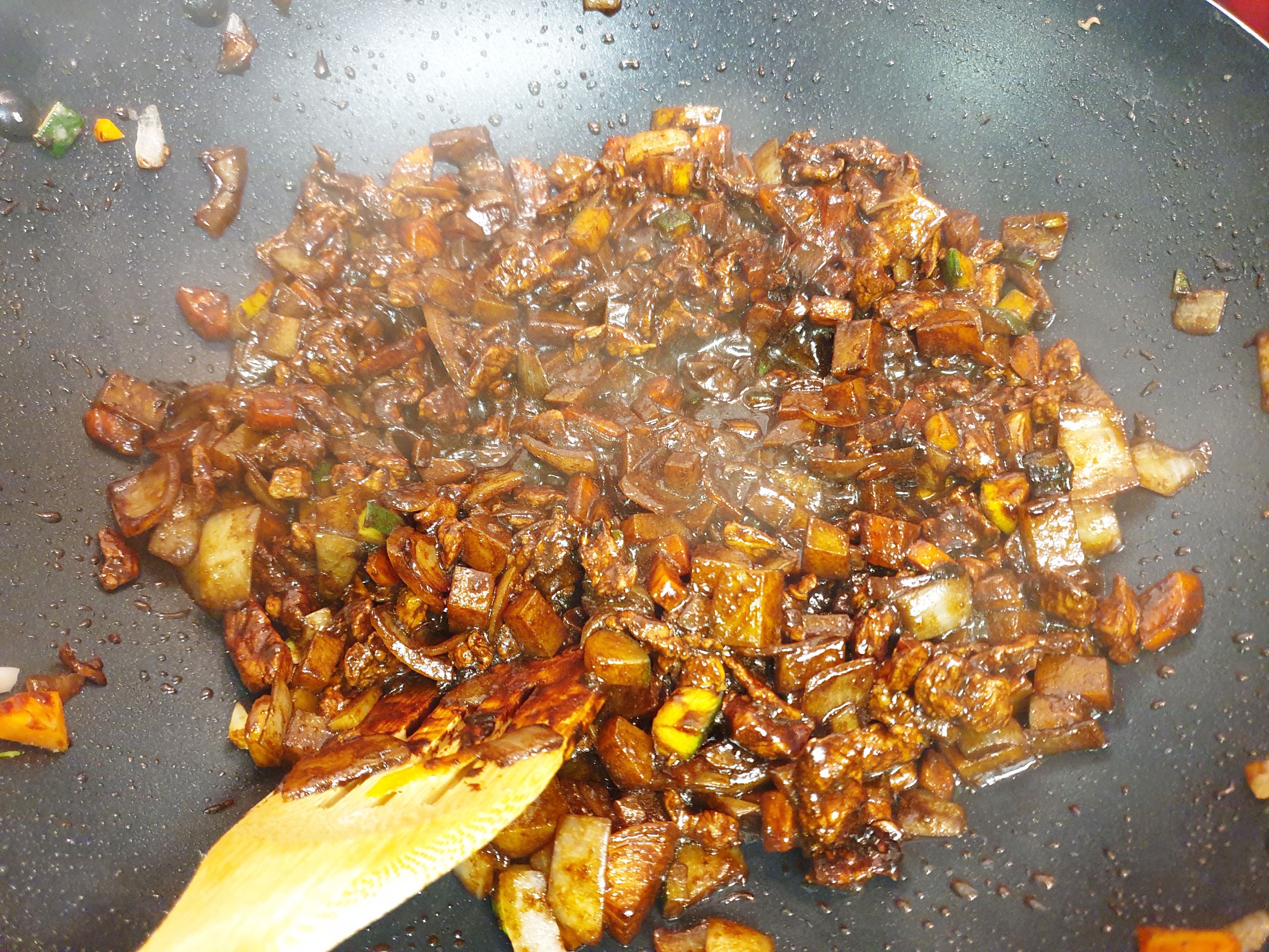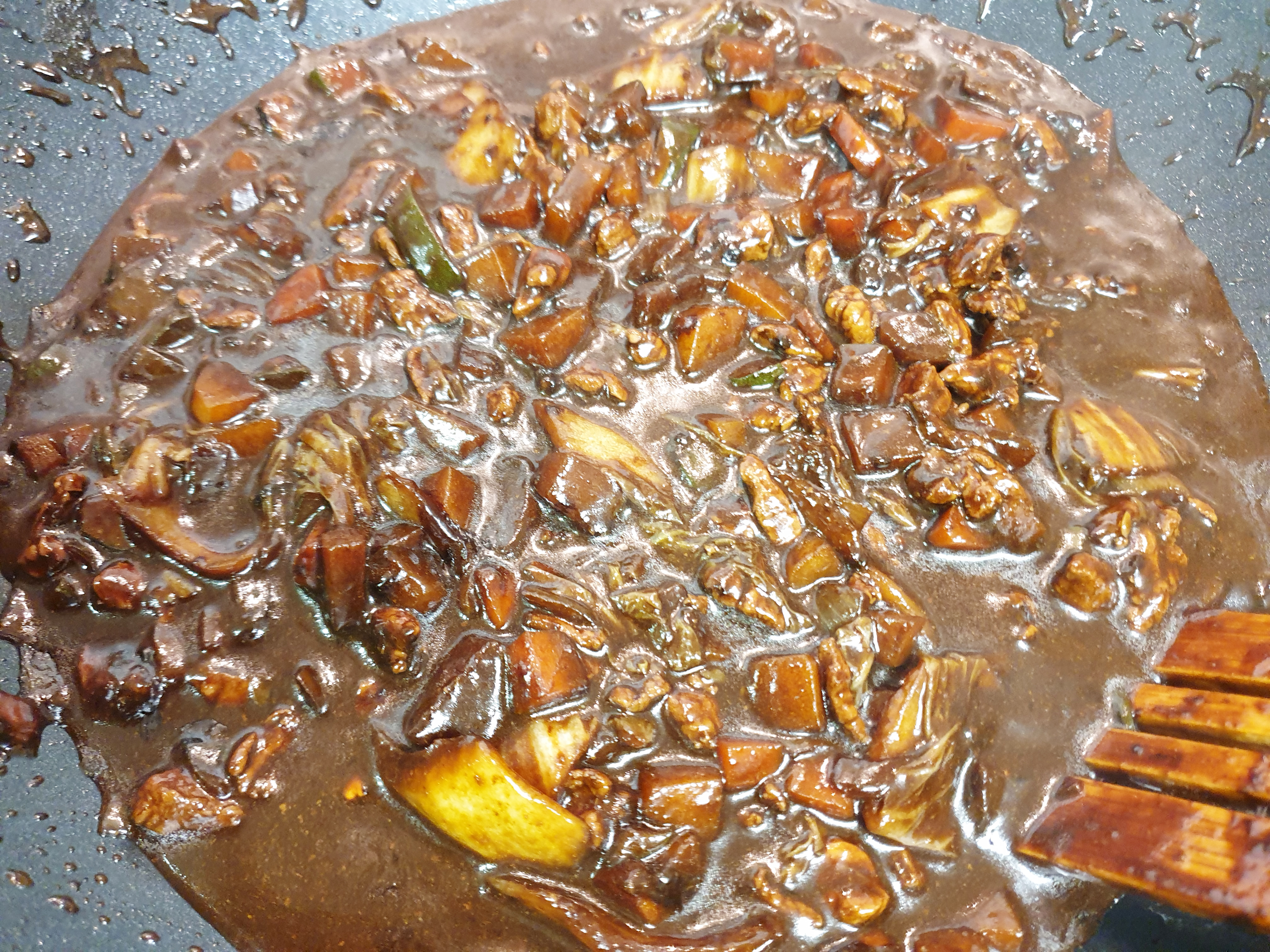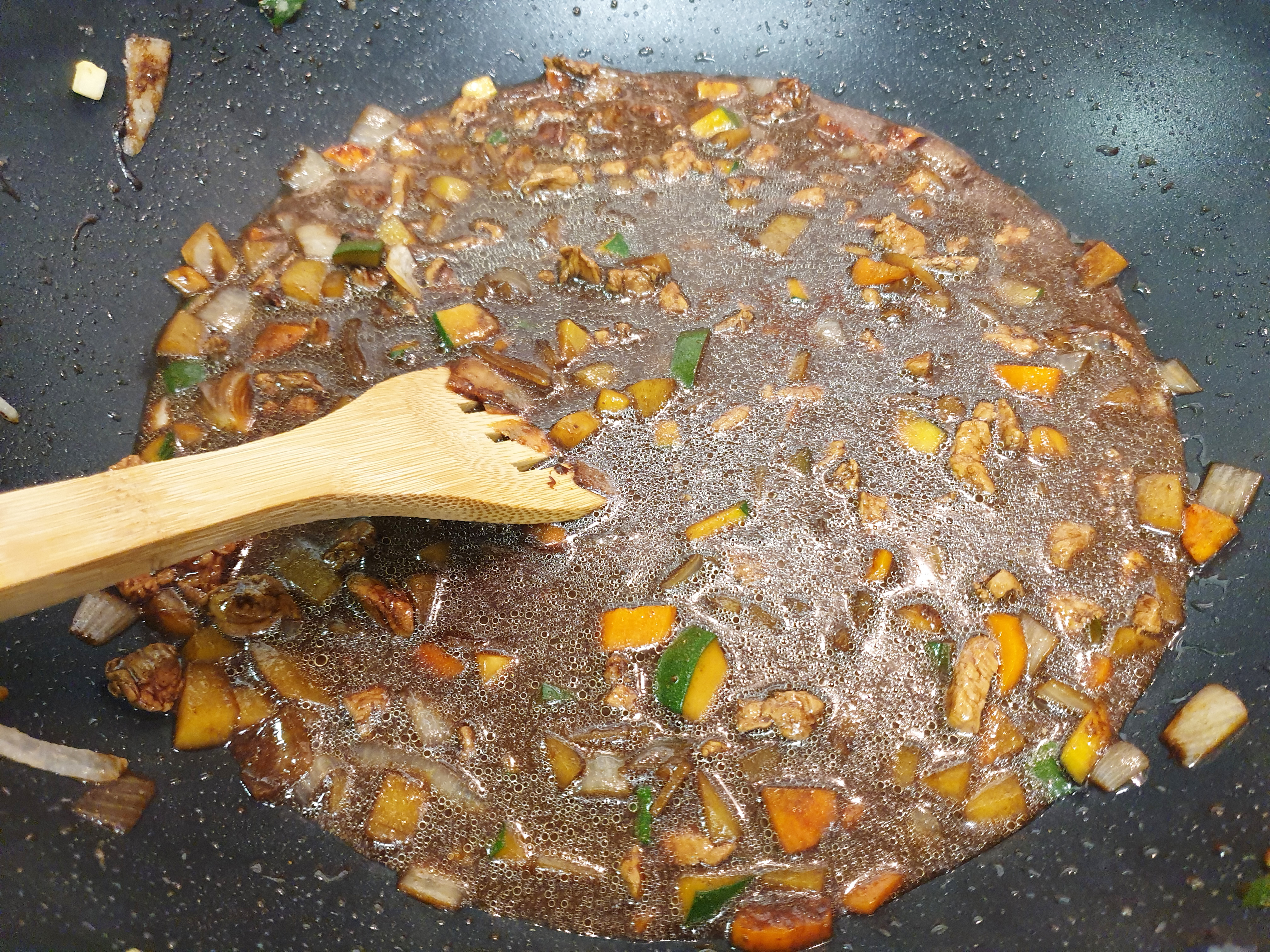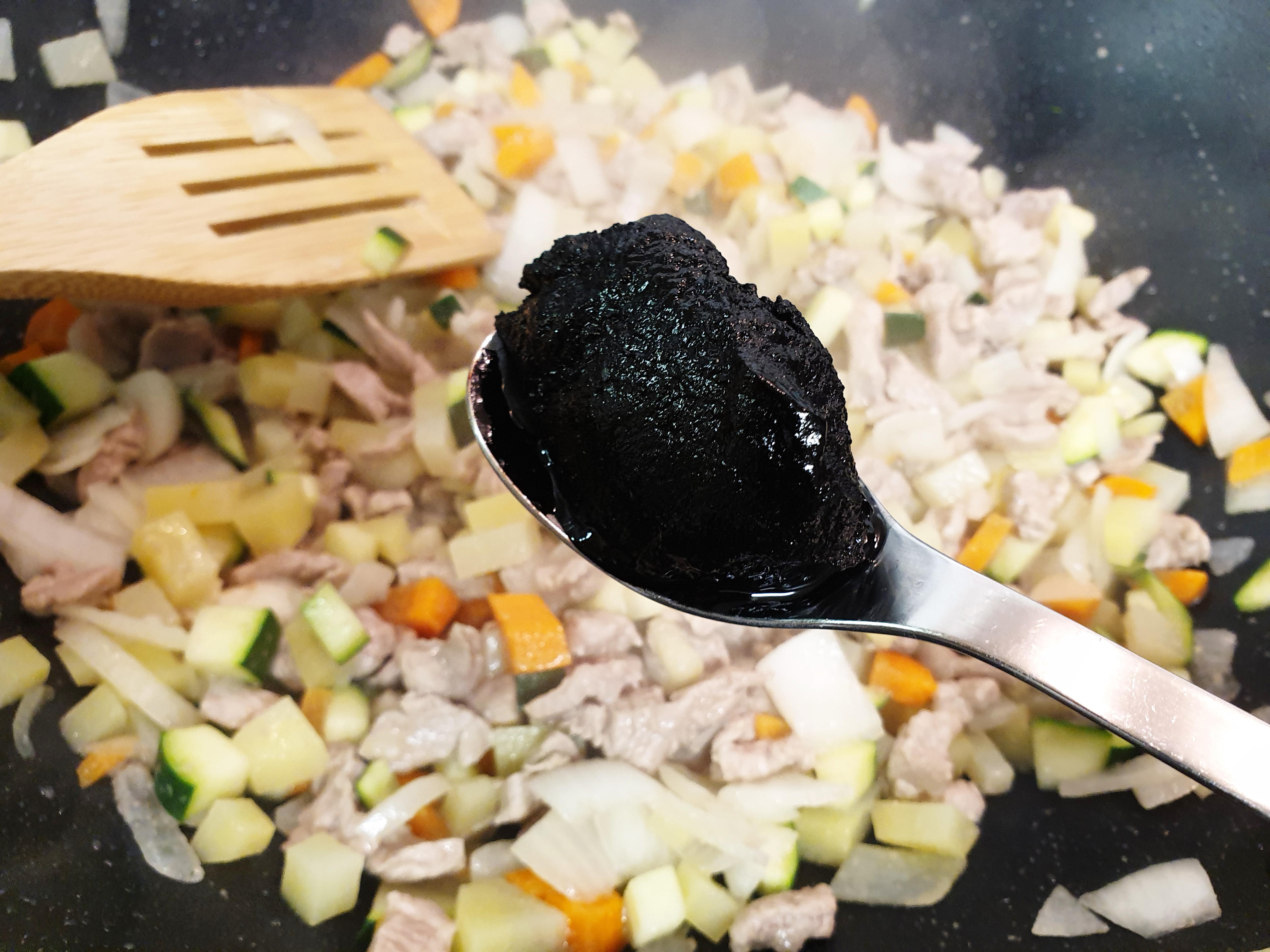 채소가 거의 익어 갈 때쯤 춘장 5스푼을 넣어줍니다.