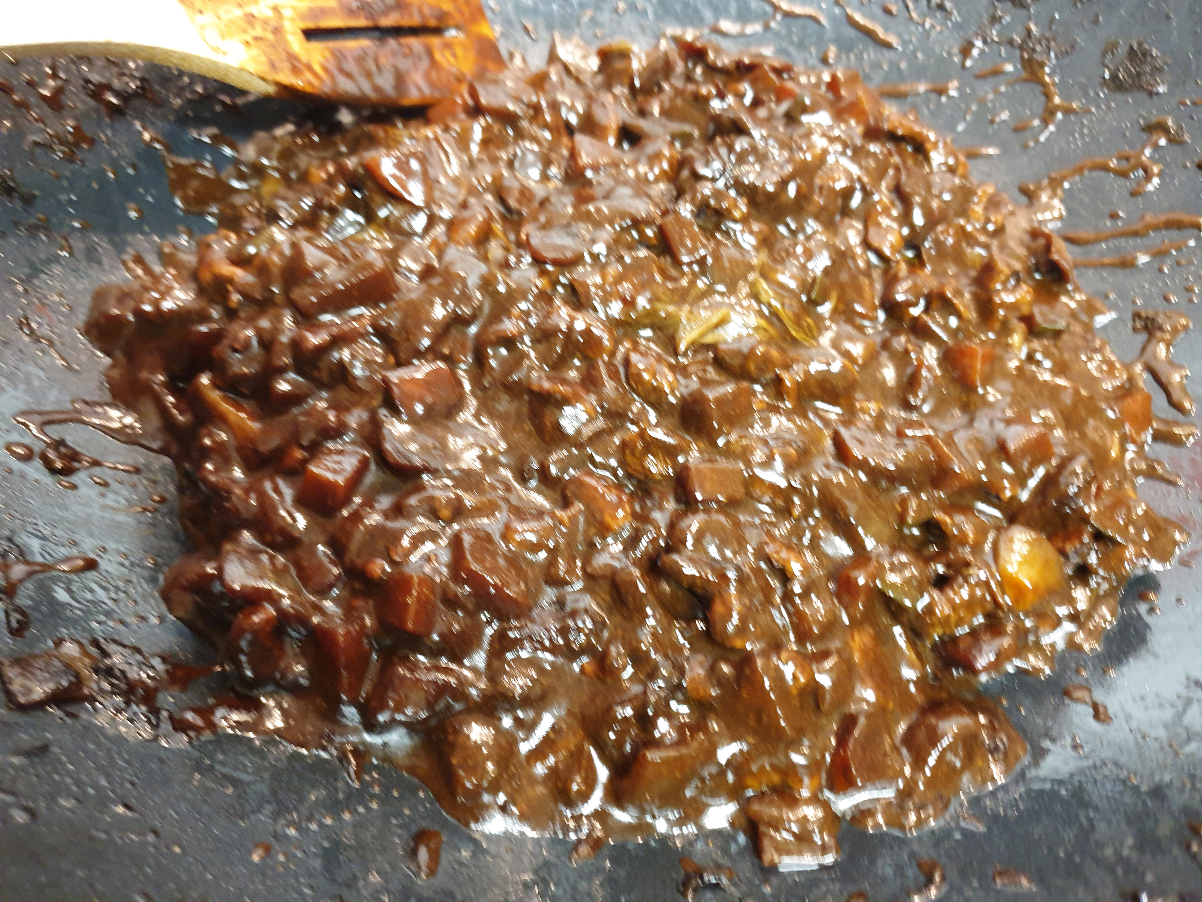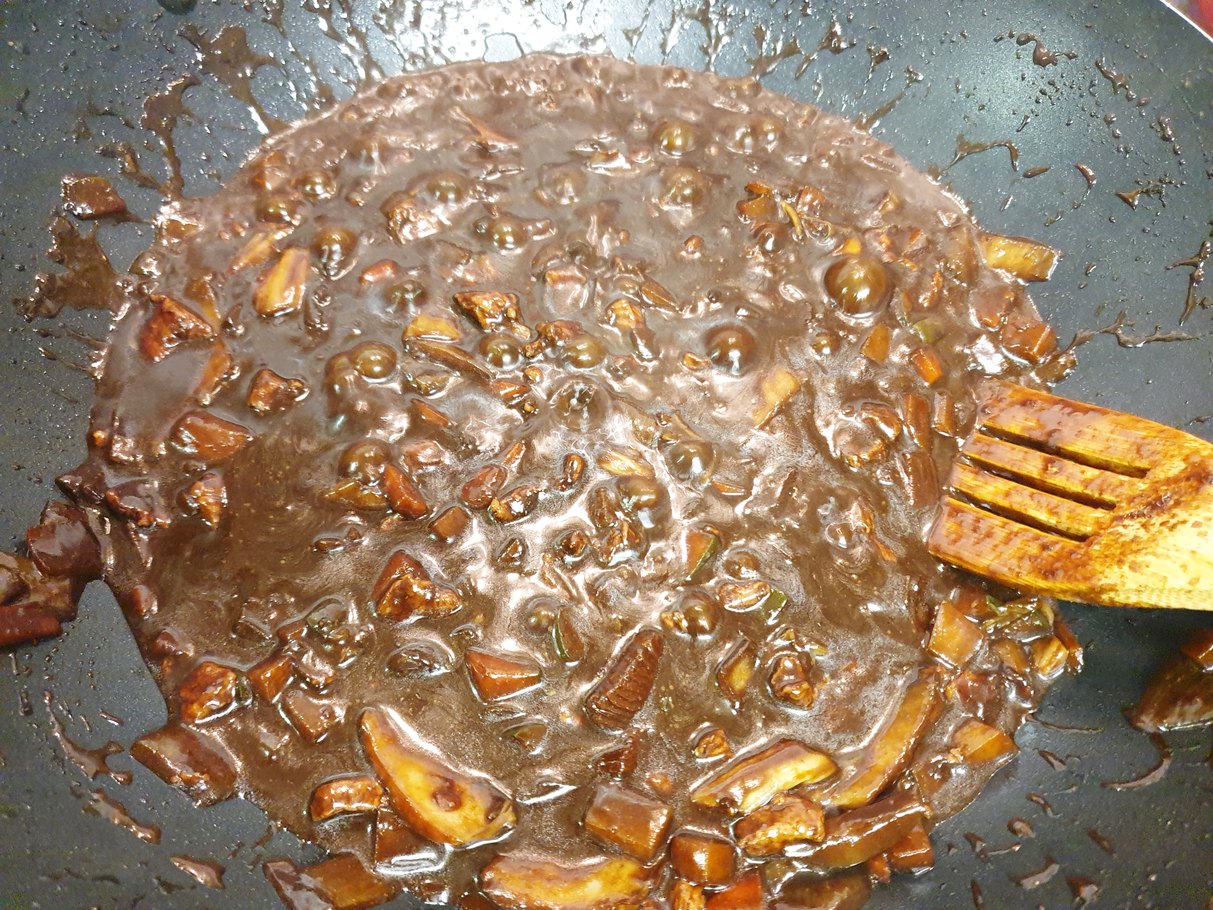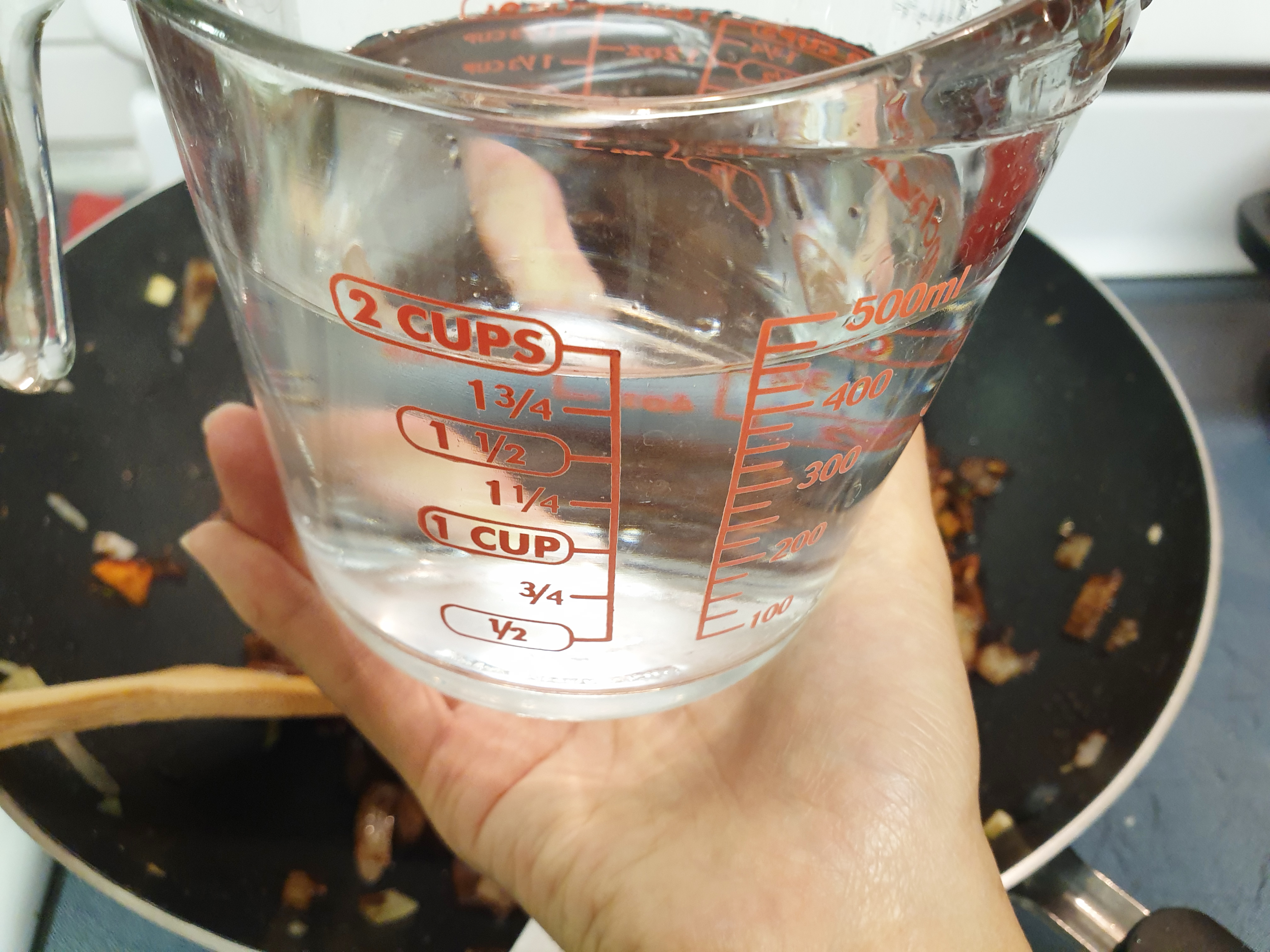 춘장을 넣고 볶다 물 2컵을 부어줍니다.