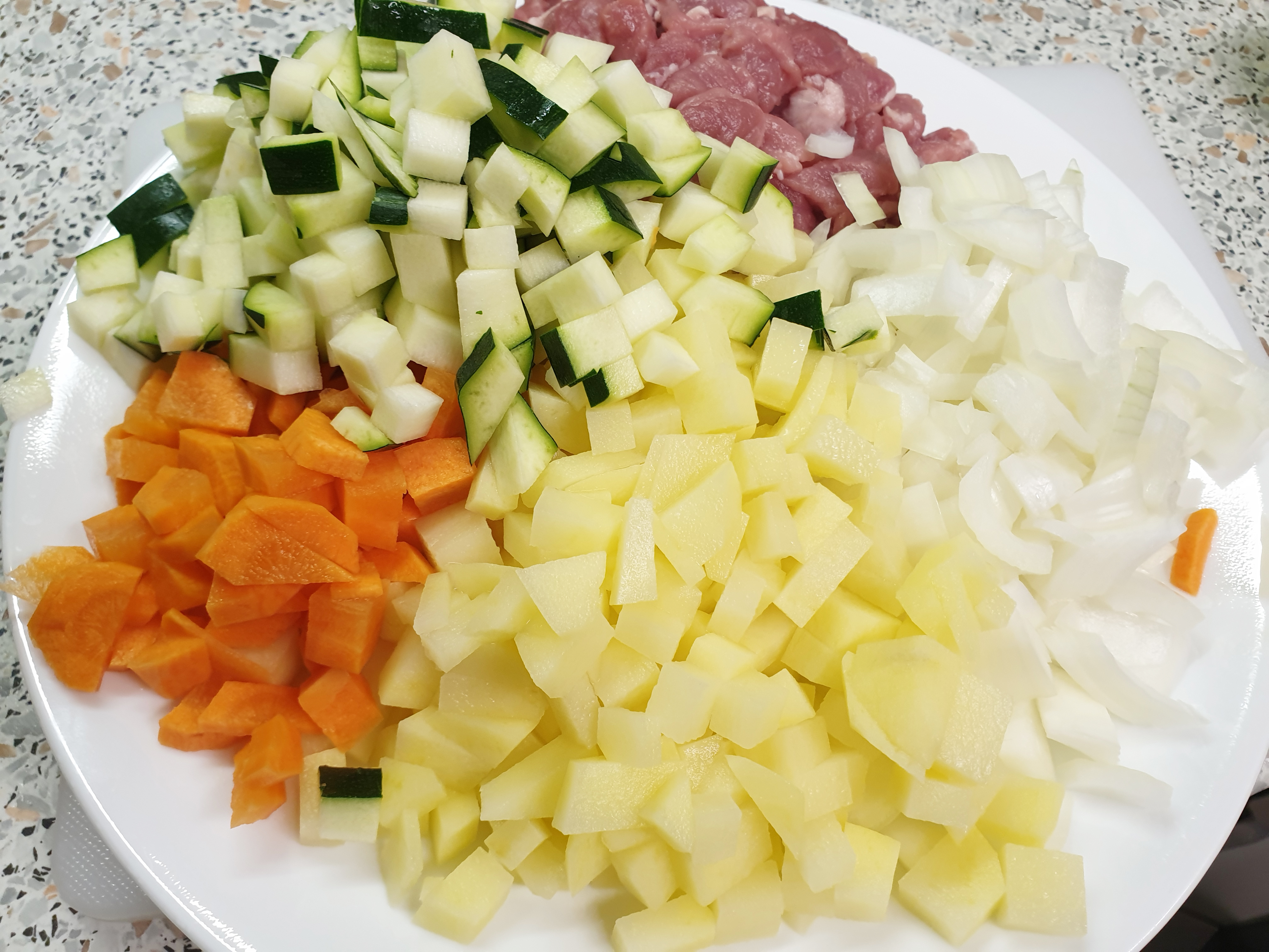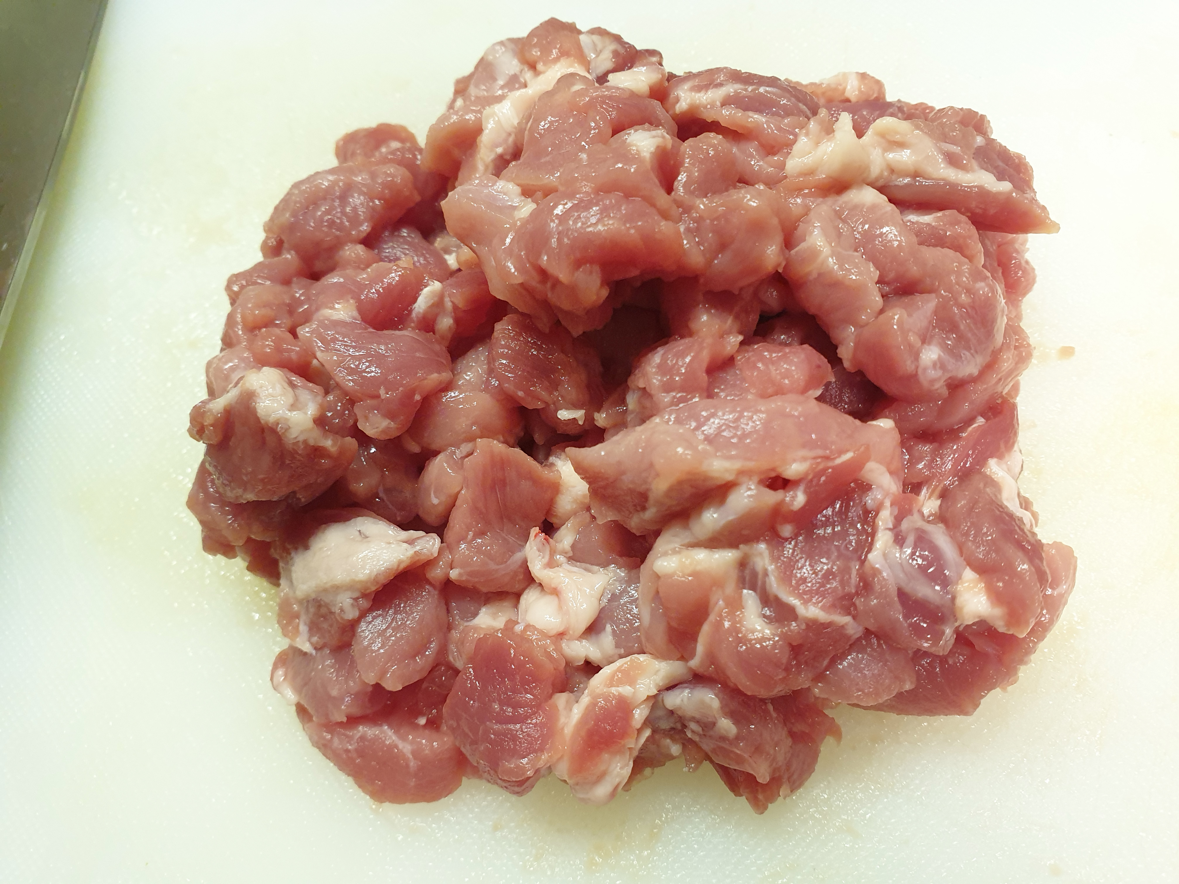 짜장밥 황금레시피 가장 첫 번째! 재료가 준비 됐다면 채소를 깨끗이 씻어 주고 돼지고기와 채소들은(호박, 당근, 감자, 양파, 배추) 사진과 같게 먹기 좋은 크기로 썰어줍니다.