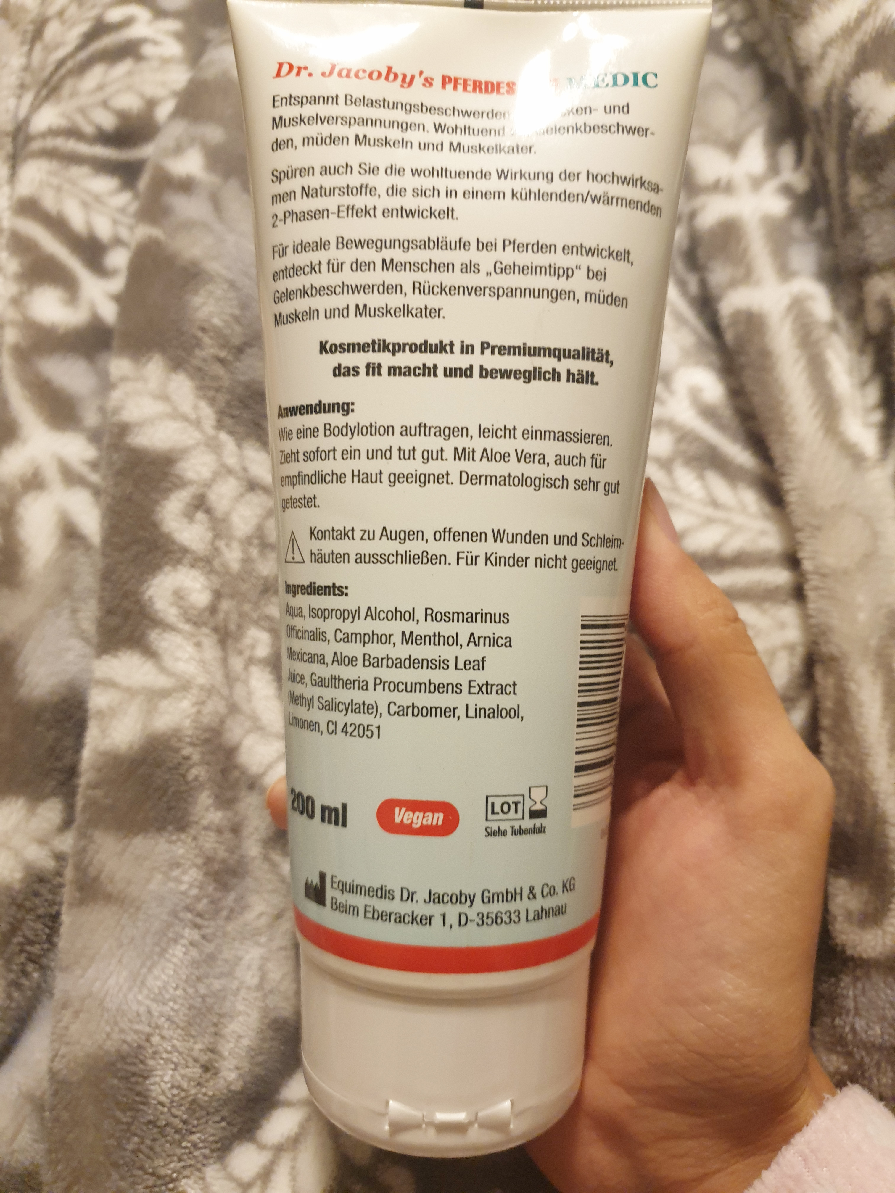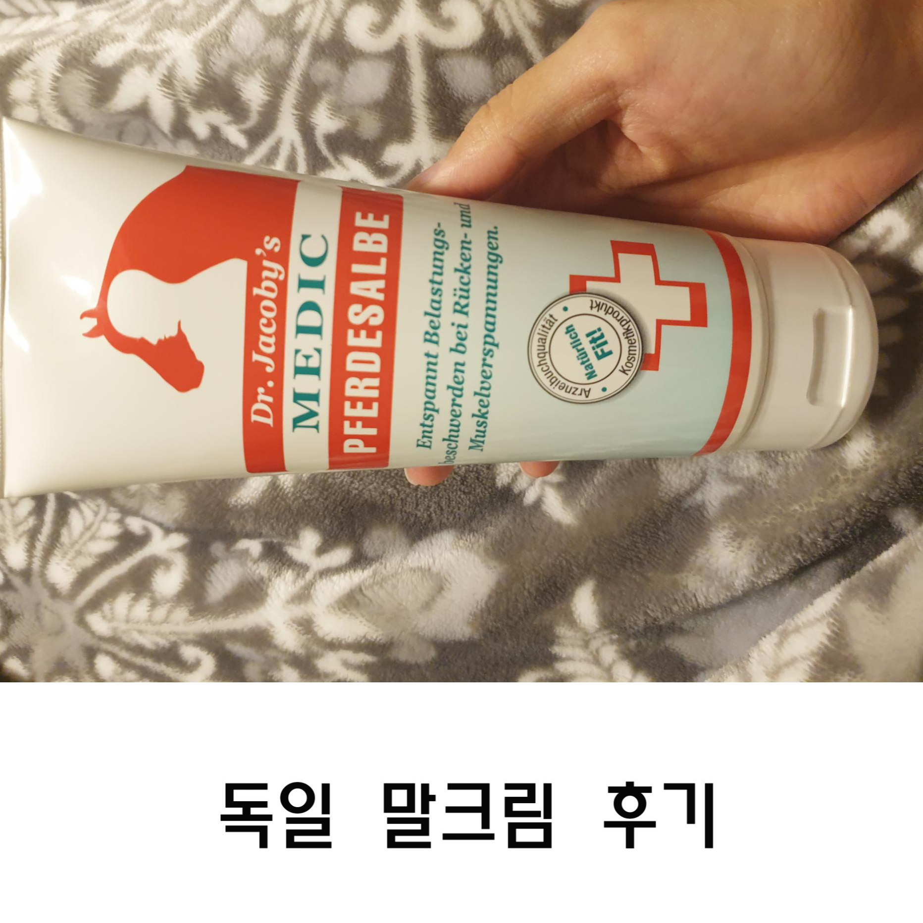 독일의 생활필수품인 닥터 야코비 메딕 말크림 ! 이상품은 닥터야코비라는 회사에서 나온 제품이며 이 제품은 처음에 경주마들의 근육과 피로를 풀어주기 위하여 사용됐던 제품입니다. 그러다 말을 타는 기수들에 의해 점차 개발되어 사람도 사용할 수 있도록 재탄생된 제품! 한국의 맨소래담처럼 독일에선 말 크림이 국민크림이라 해도 손색이 없는 제품!