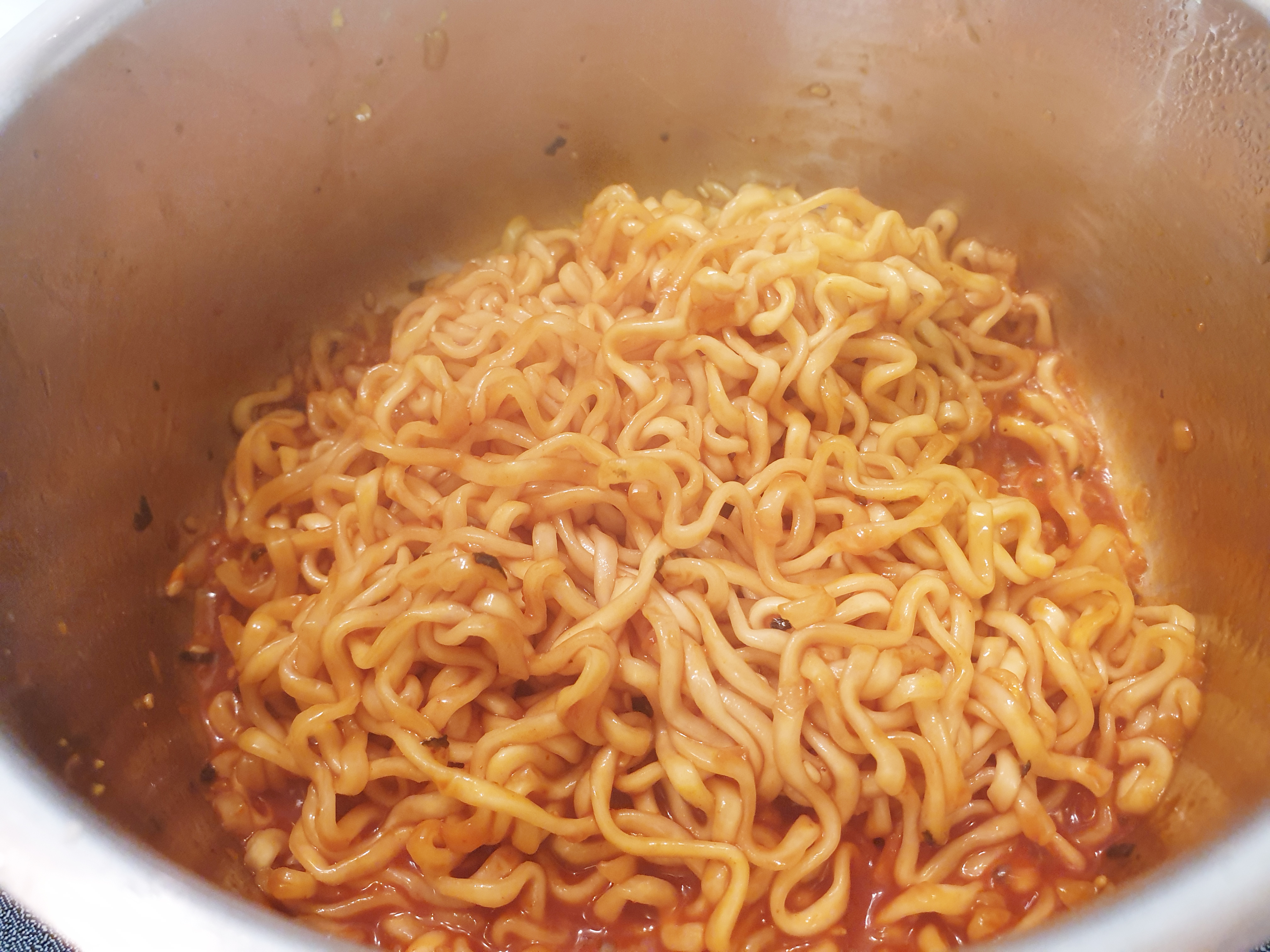 추가한 치즈를 잘 섞어주면 끝~~~ 이렇게 먹으면 맵지도 않고 내 입맛에 딱! 정말 맛있음!! 면이 부족하다 느낄 정도로 금방 후루룩~~ 이 맛에 반해서 일주일에 2번 이상은 먹는 듯싶다. 중독성이 강한 치즈 불닭볶음면 강추!