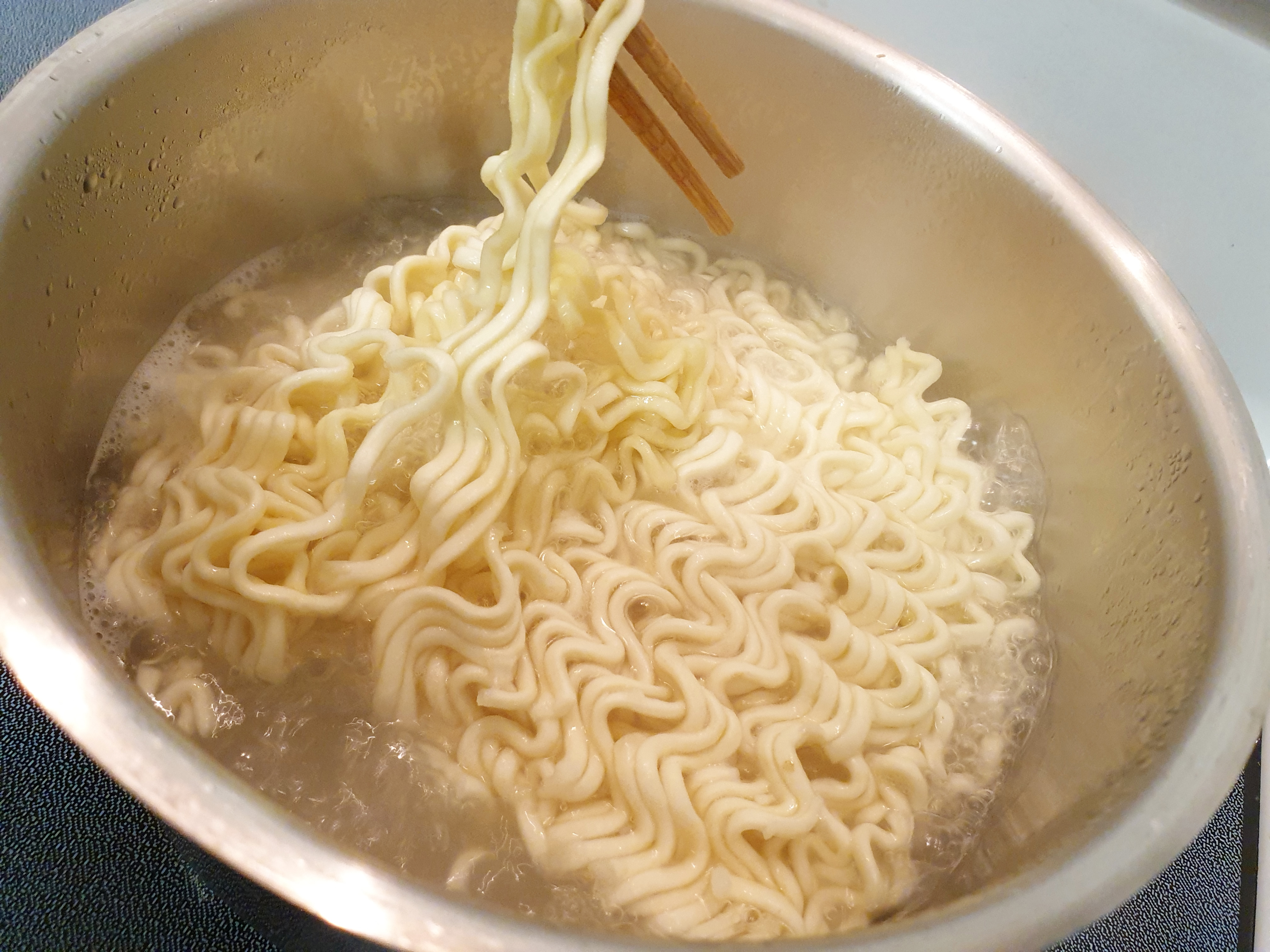 물이 끓기 시작 하면 면을 넣어준다.