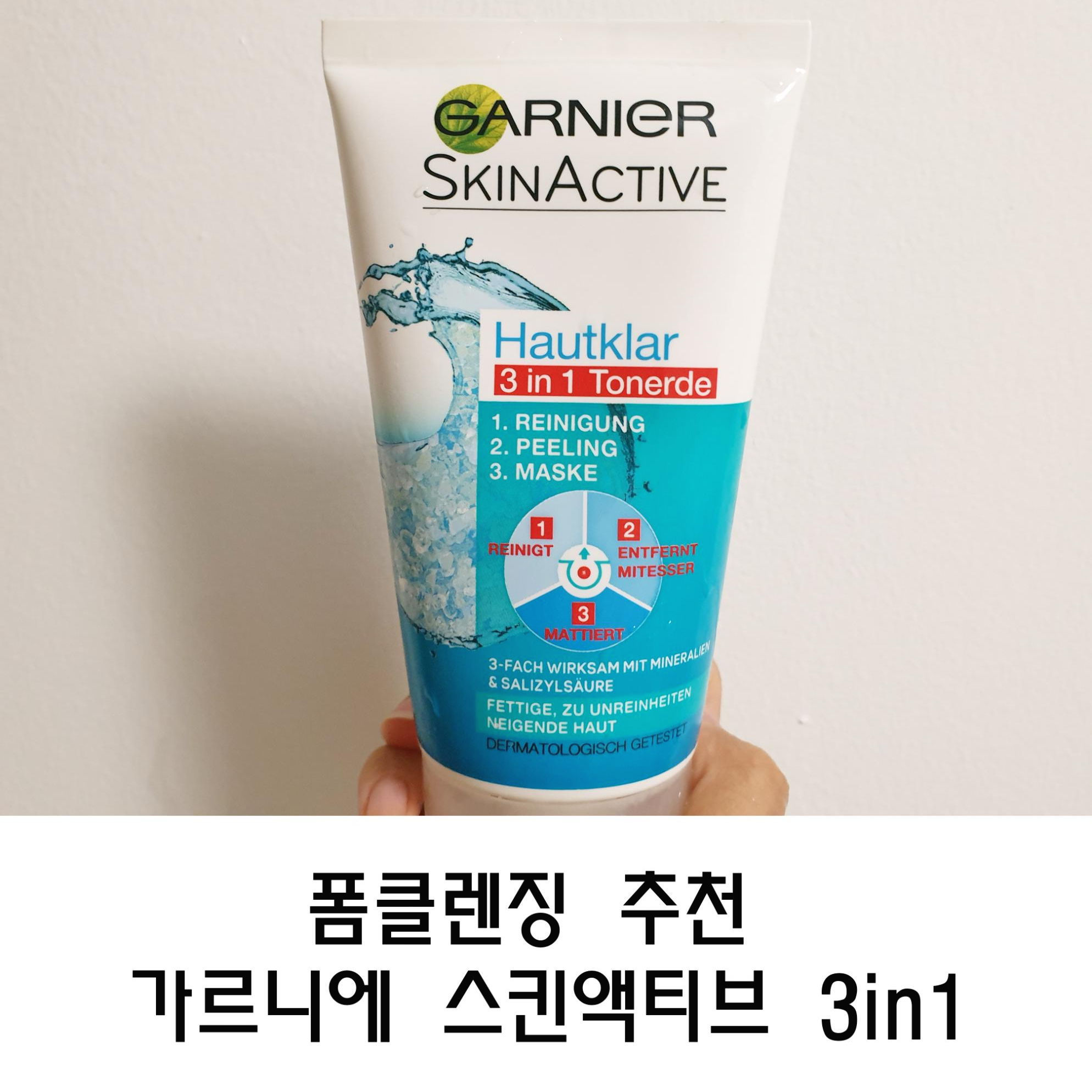 가르니에 스킨액티브 3in1 폼클렌징은 지성 및 복합성 피부, 여드름성 피부에 적합한 폼클렌징으로 과잉 피지 분비물을 제어해 트러블 유발을 줄여주는 제품! 하나로 3가지기능을 하는 만능 제품이기도 하다. 클렌징으로도 사용 가능하고 스크럽과 마스크로도 사용이 가능한 제품!!