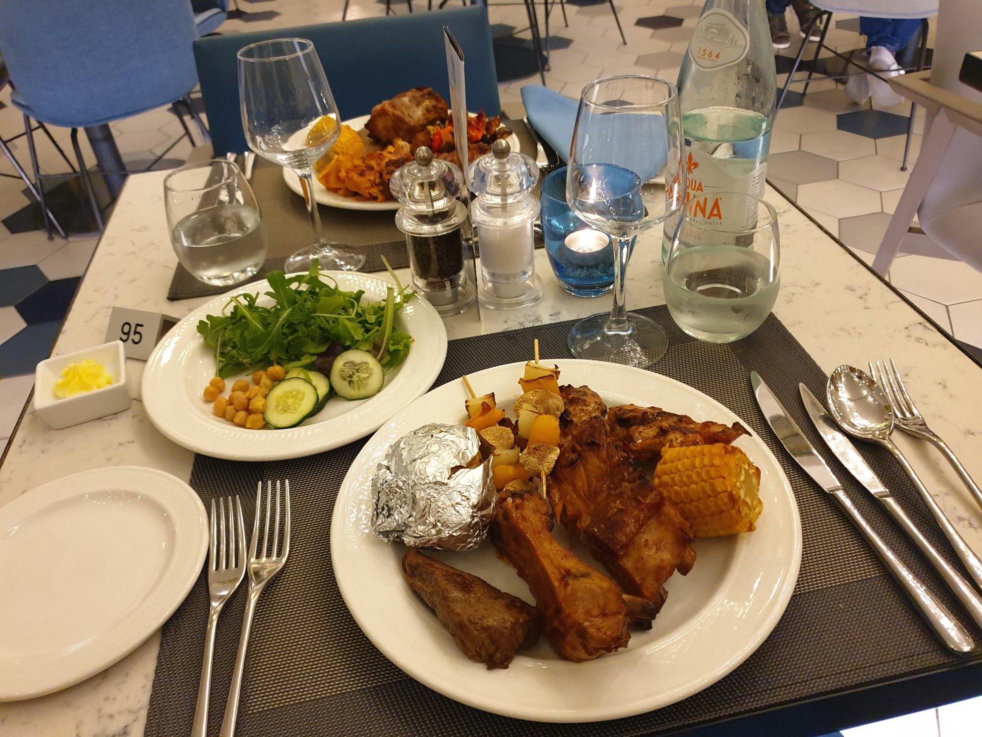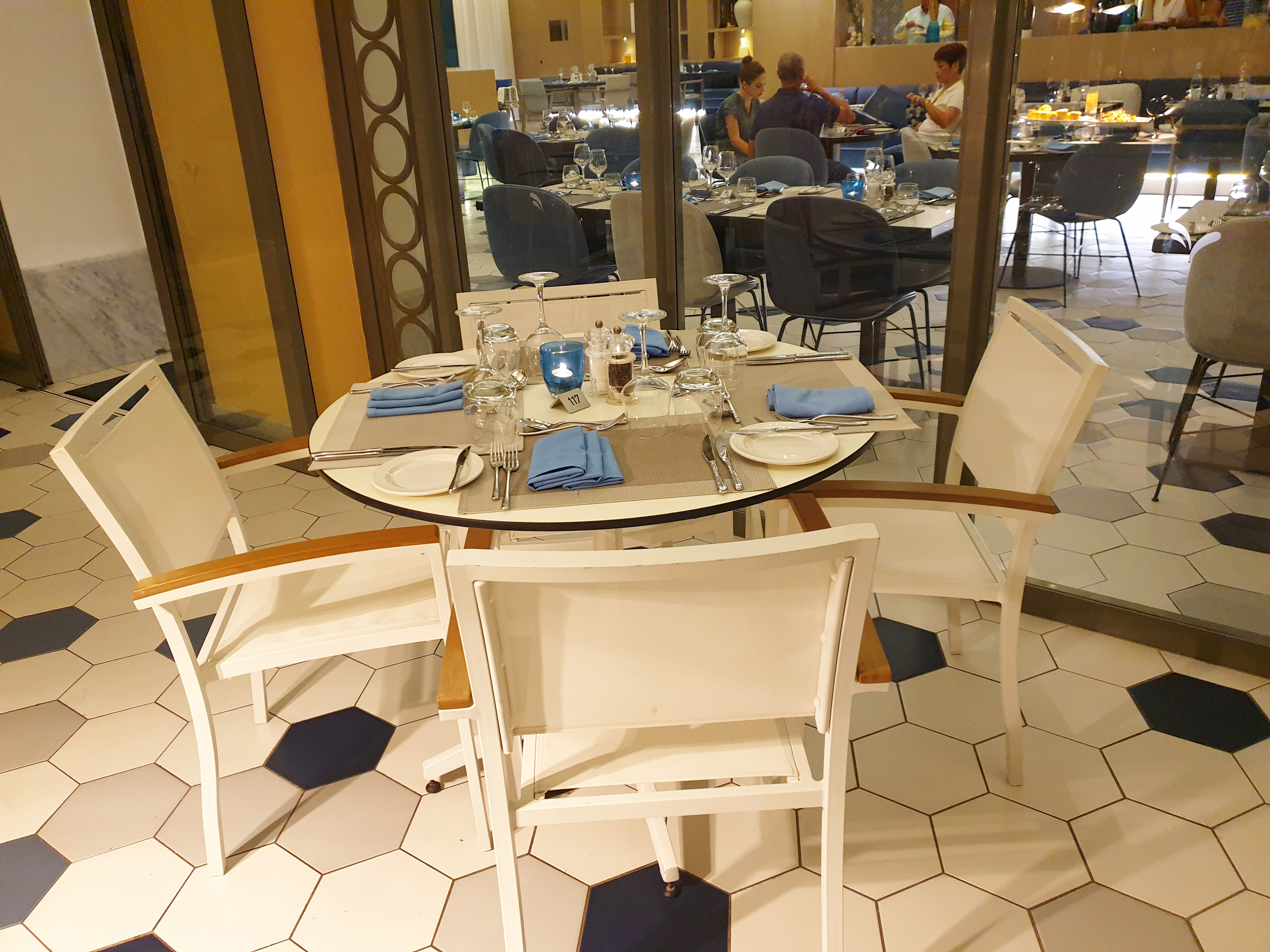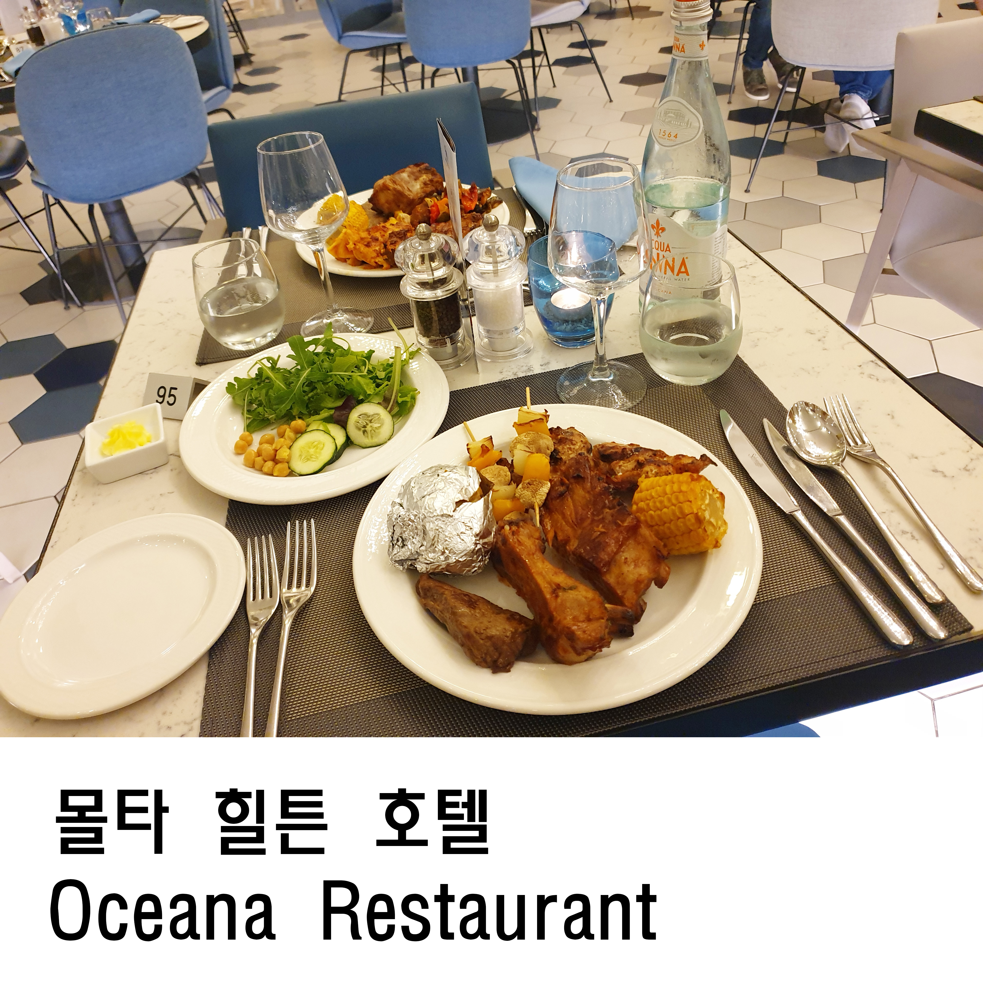 Oceana 레스토랑은 몰타 힐튼호텔 수영장가에 있고 조식이 나오는 곳과 같은 곳에서 저녁식사를 제공한다. 오픈 시간이 되자마자 바로 내려왔는데 이미 사람이 꾀있었다.