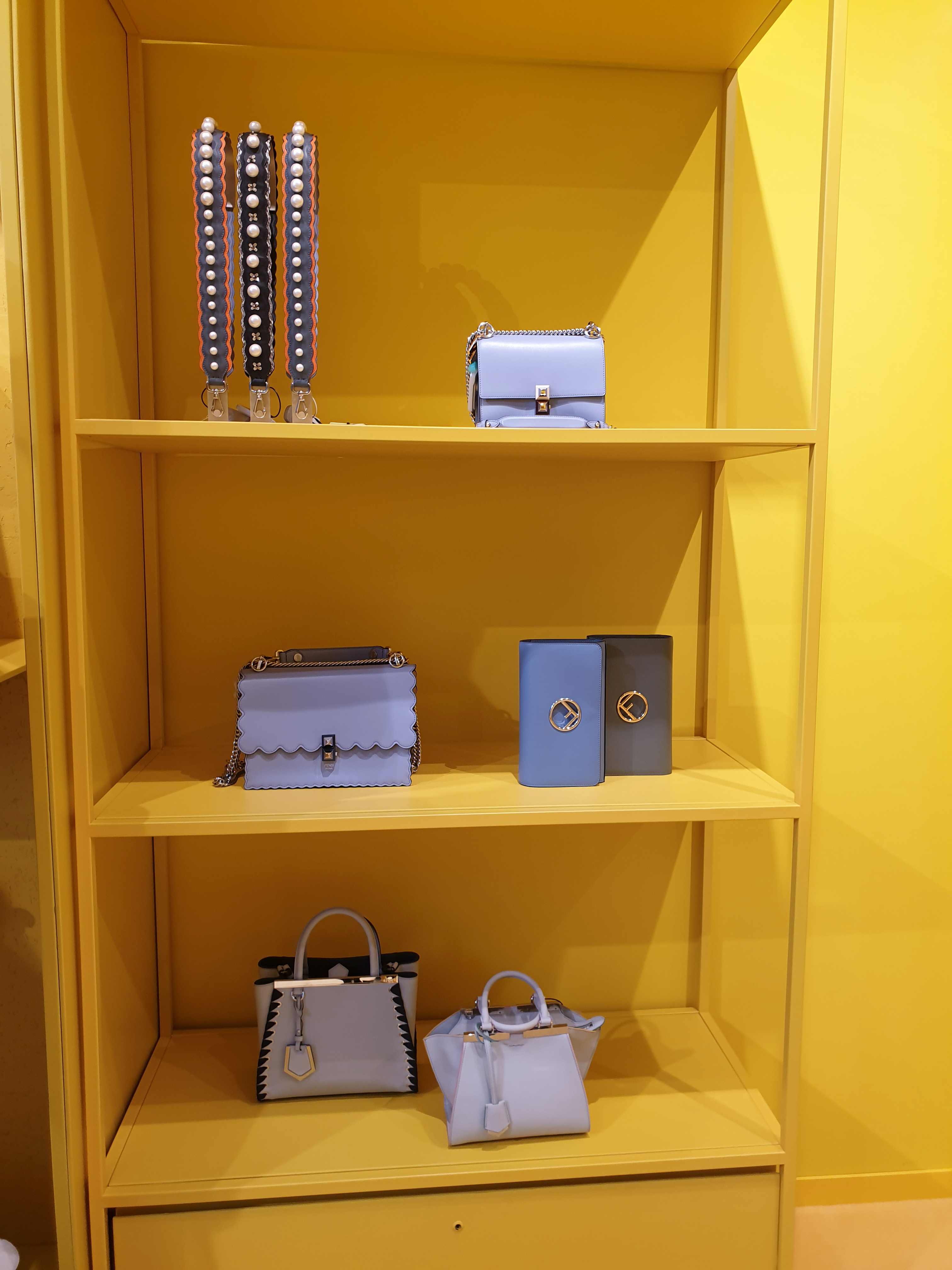 펜디 매장에 들어서서 가장 먼저 보이는 상품은 펜디 지갑들! 펜디 매장이 오픈한 지 별로 되지 않아서 그런지 상품이 많지는 않았다.