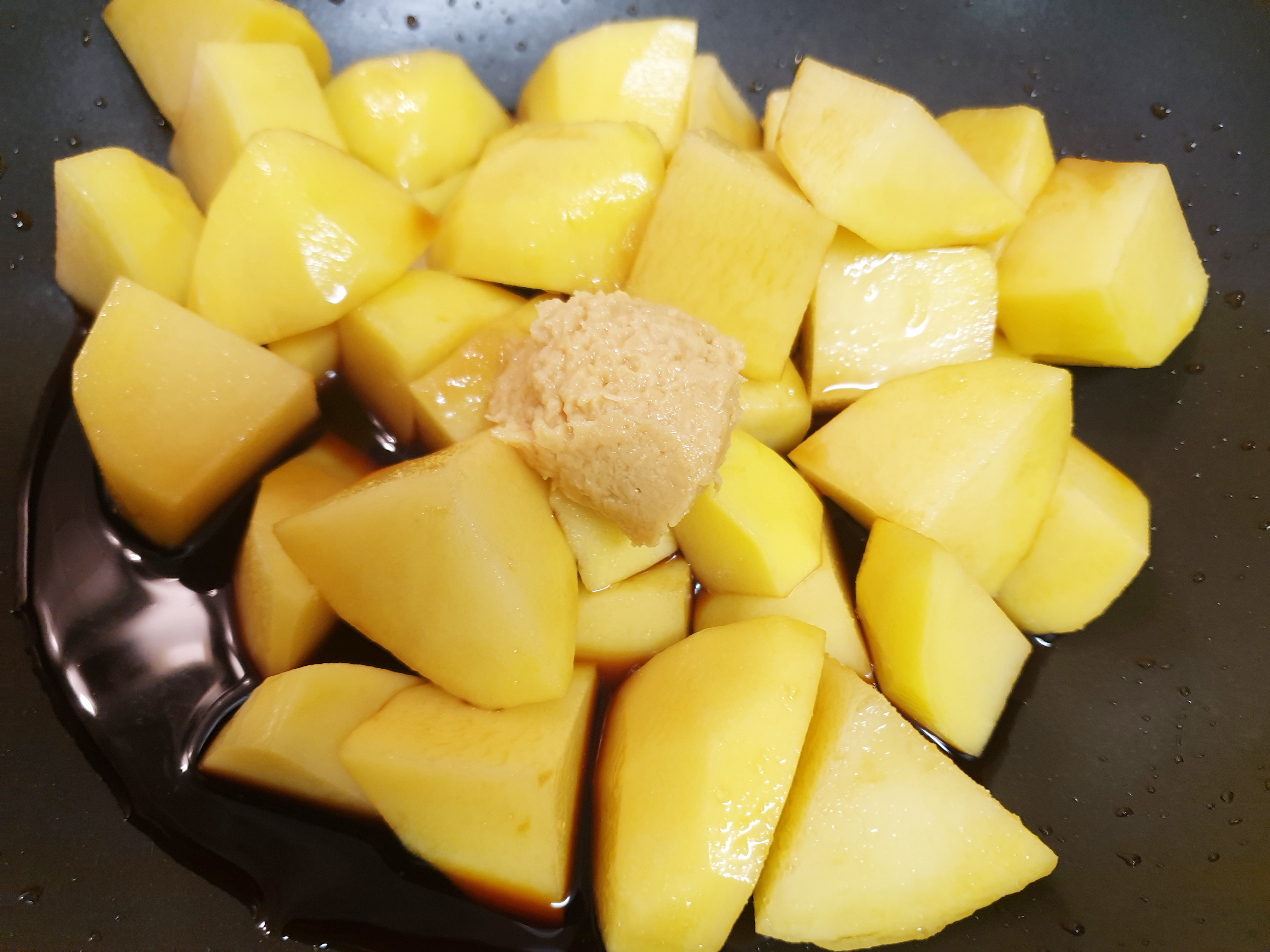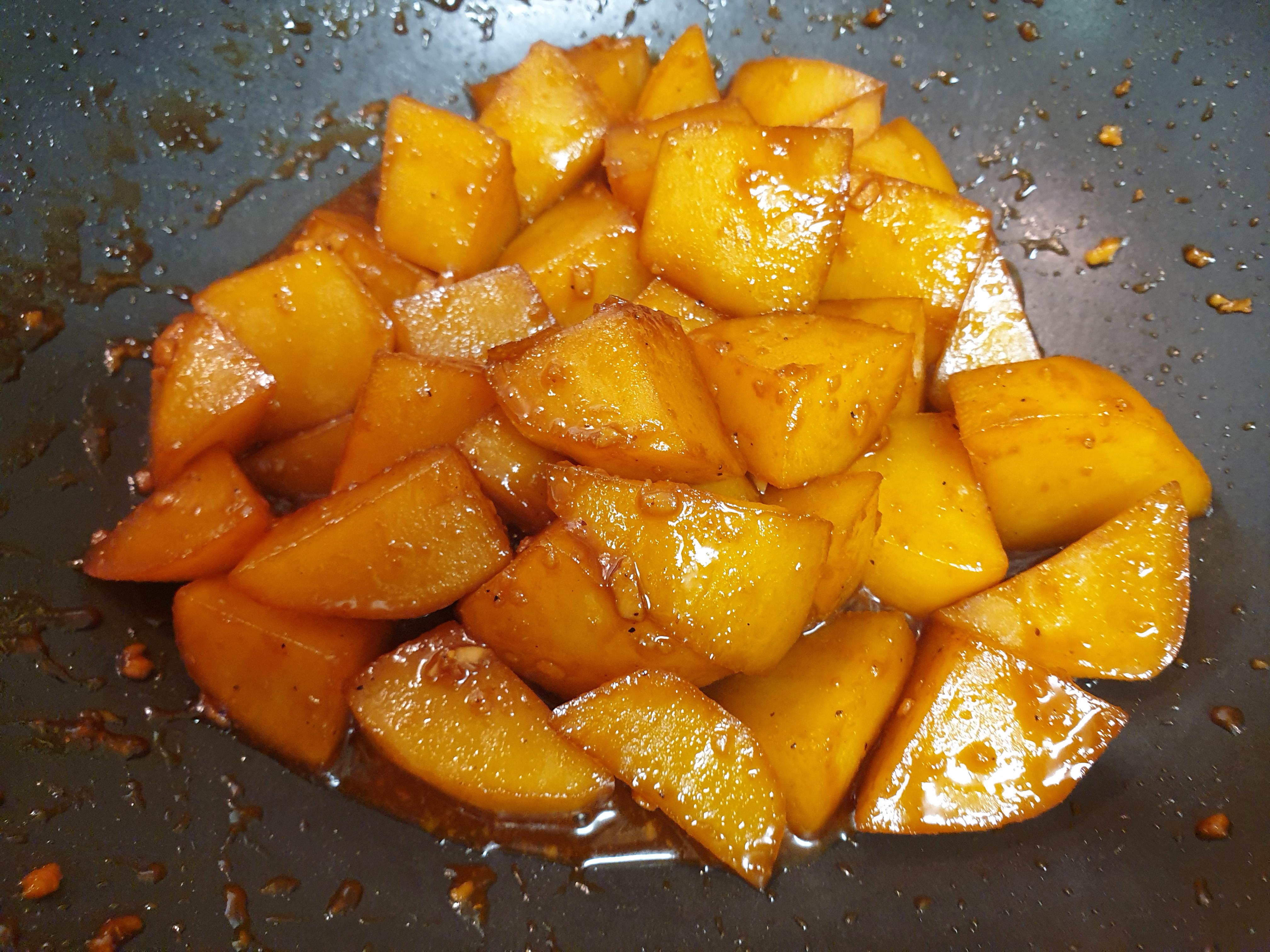마지막으로 볶음 깨를 뿌려 마무리해줍니다. 초간단한 재료로 완성된 감자조림! 달짝지근한 게 정말 맛있습니다. ^^ 감자 3개의 양이 은근히 많아서 이틀 동안 먹었네요~!