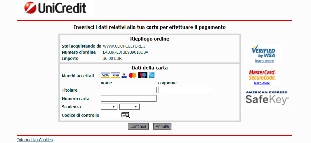 순서대로 이름, 성, 카드번호, 유효기간, CVC 번호를 입력하고 Continua를 눌러주세요!