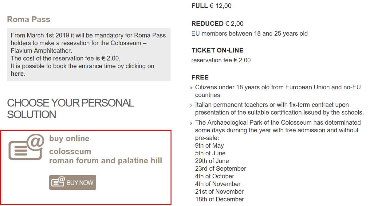 로마 콜로세움 통합권은 PC와 모바일을 통해 예약을 할 수 있어요! 전 PC를 통해서 예약을 했습니다.