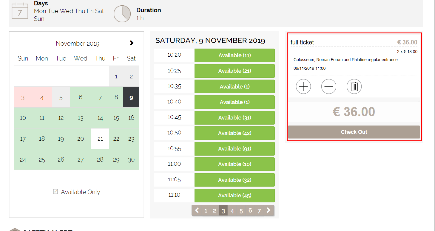 여기서 중요한 사항은 안전상 문제로 내부 입장객 최대 3000명 제한하고 있어 예약자도 지연될 수 있고 큰 가방이나 캐리어 술 , 음료 등 금지되어있습니다. 그리고 2019년 11월 1일 날짜로부터 가격이 16유로로 인상됩니다. 위에 중요 사항들을 참고하시고 숙지하셨다면 왼쪽에 있는 BUY NOW를 클릭해 이동해주세요!