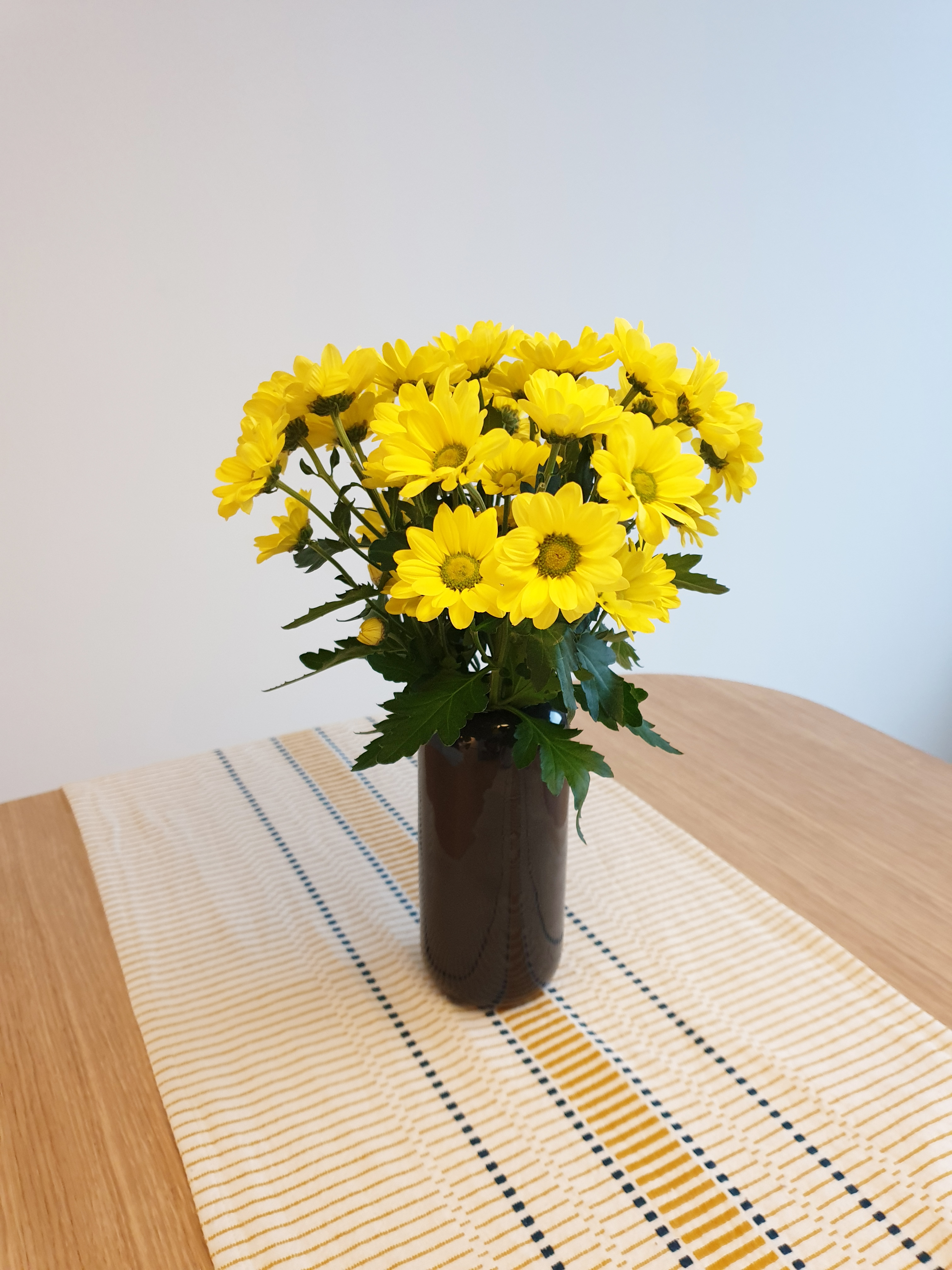 친구 집에 도착하니 제일 눈에 들어오는 건 식탁 위에 있는 화병이었어요~ 선명한 노란색의 꽃이 식탁 분위기를 화사하게 바꿔주는 것 같아요~