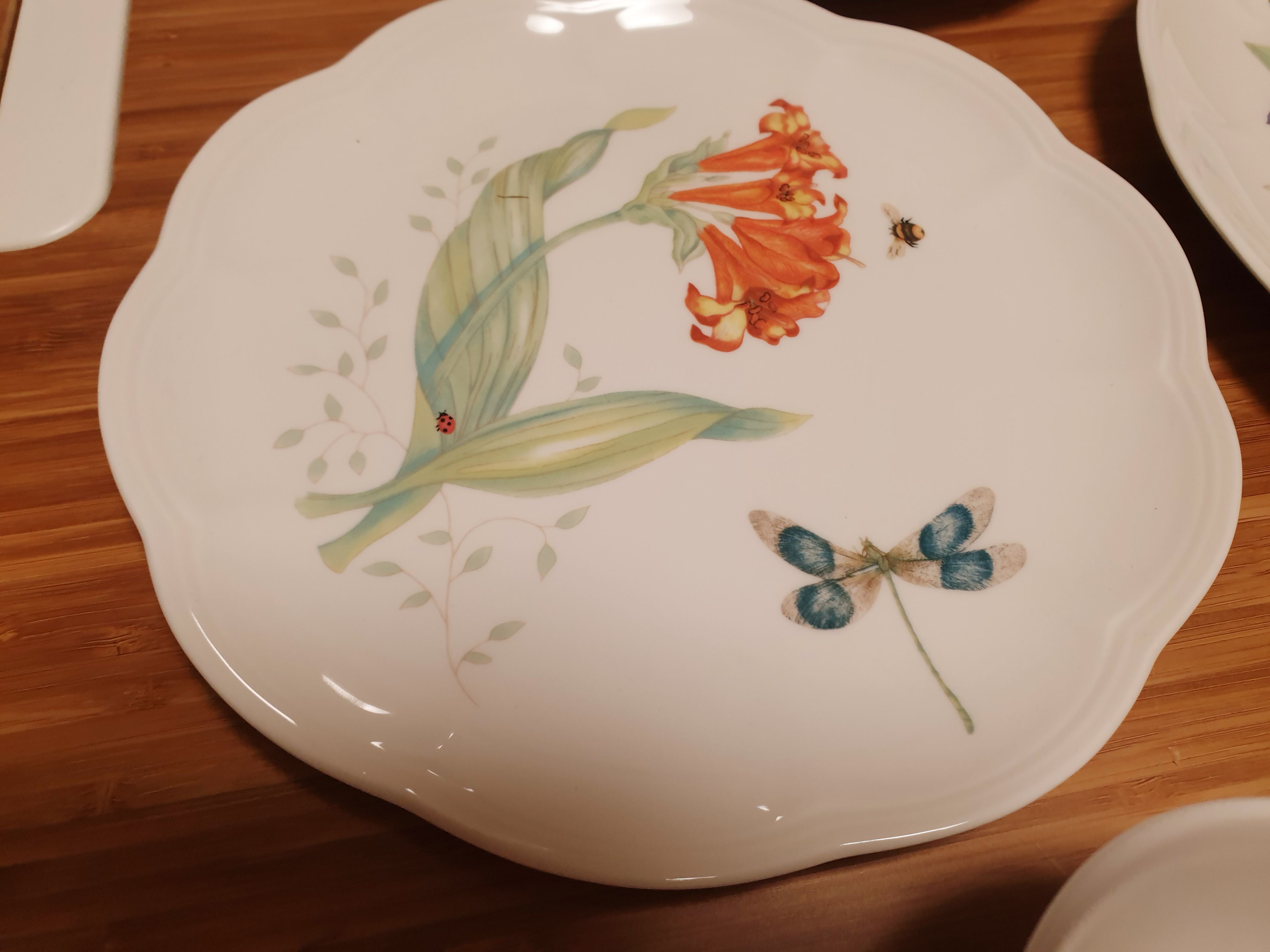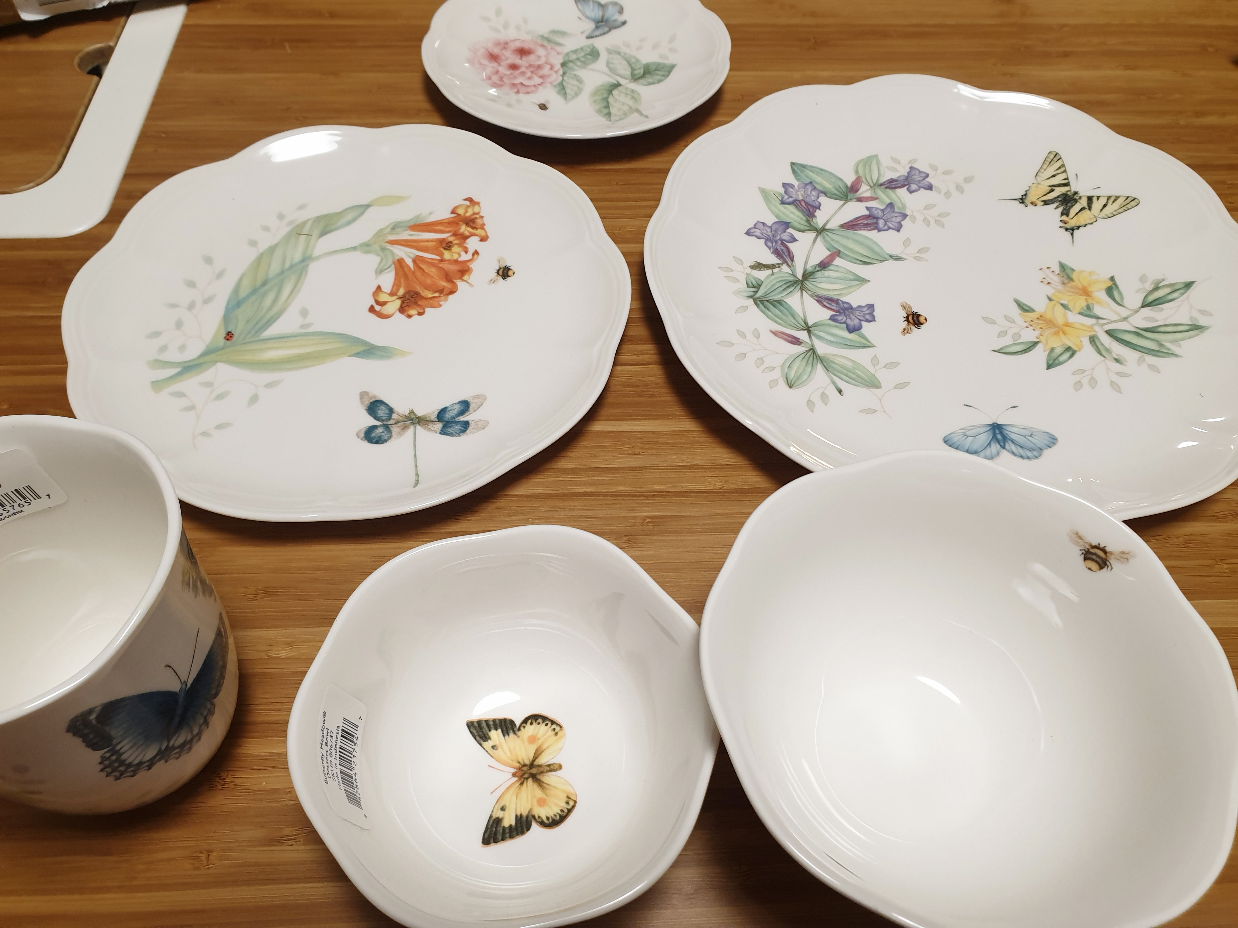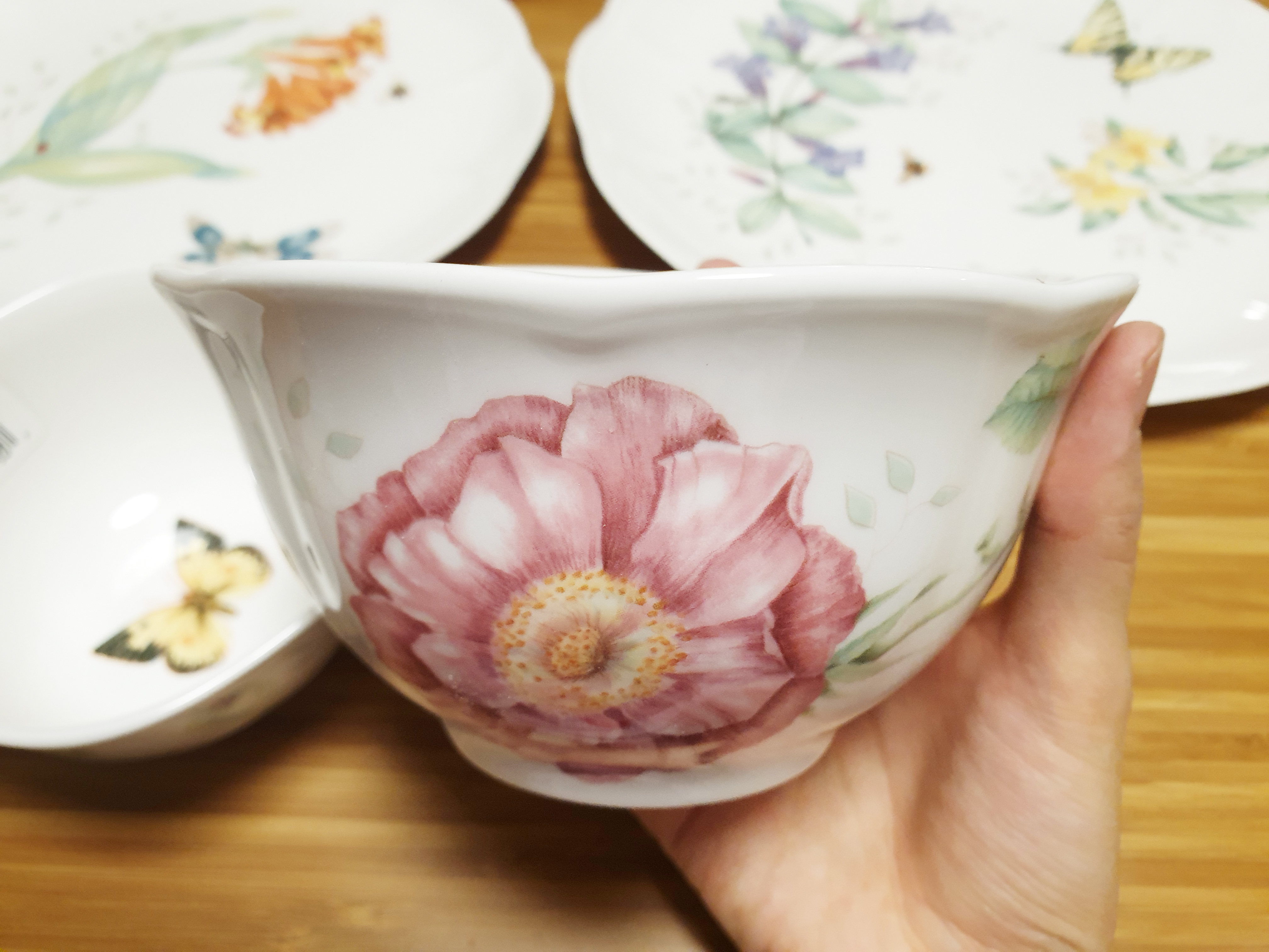 그릇의 종류는 7개로 총 28피스가 들어 있어요~ 위에 사진에는 6개의 종류밖에 없는데 그 위에 사진을 보면 다른 하나의 반찬 그릇을 볼 수 있습니다. 과일접시와 같이 포장이 되어 있어서 숫자를 다시 세보고 확인하다가 발견했네요~ 당시 구매했던 가격은 기억이 나지 않지만 지금 아마존에서 판매되고 있는 가격은 164달러네요~ 엄마가 레녹스 버터플라이 그릇세트를 받고 좋아하길 ^^~