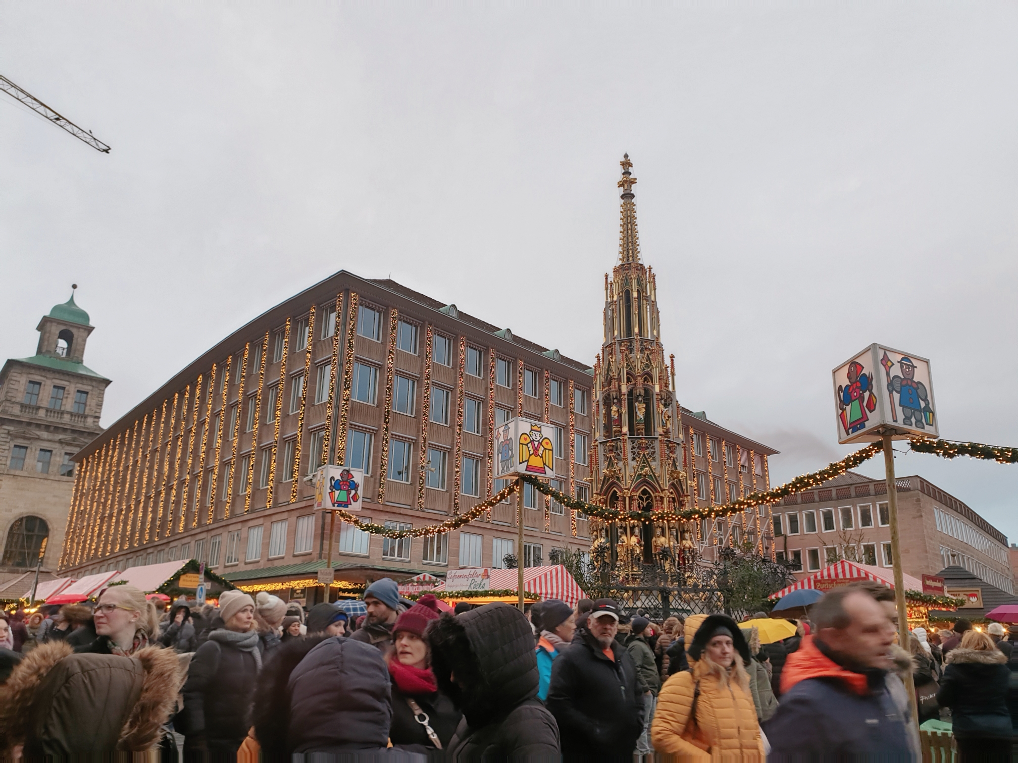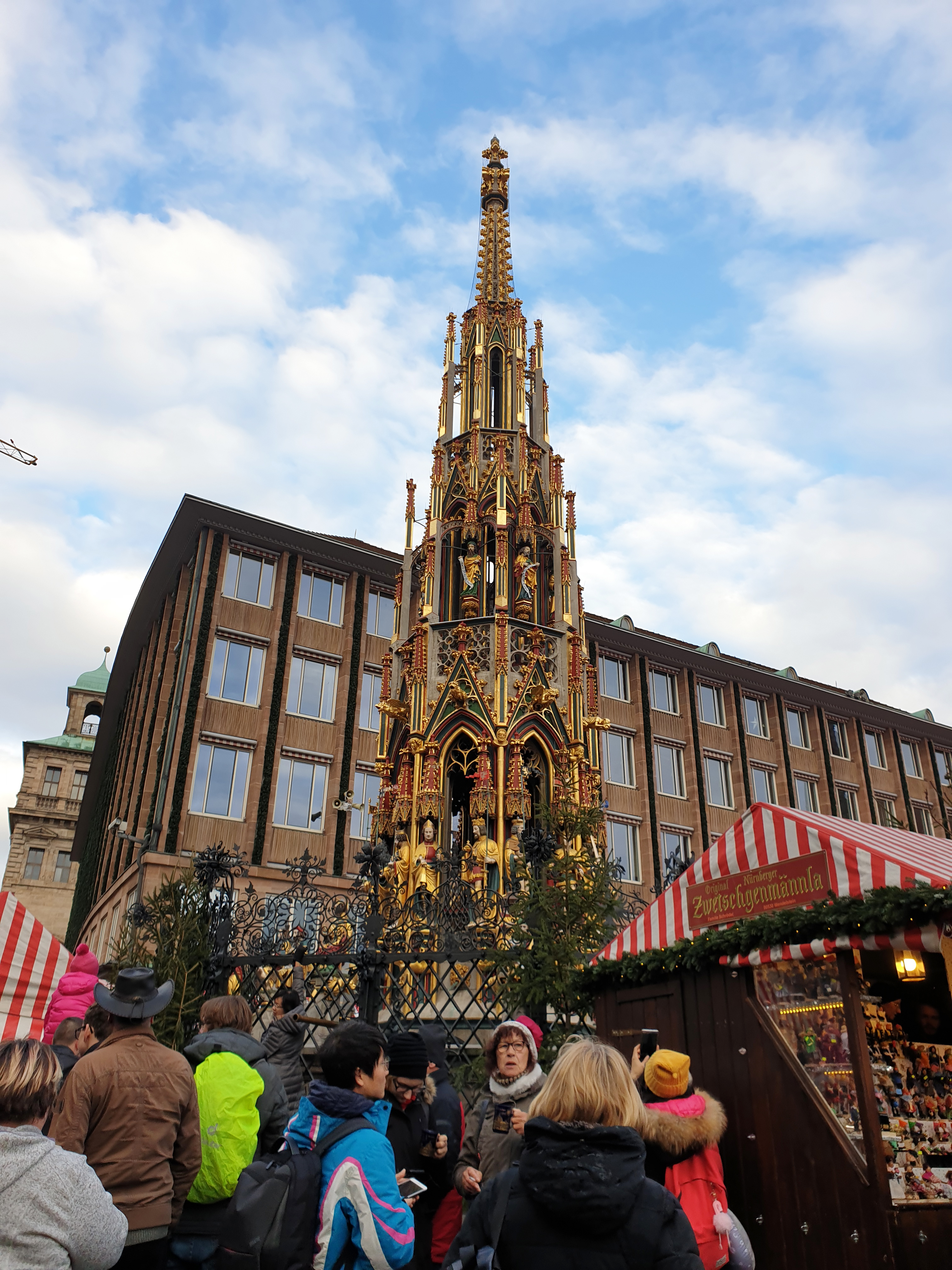 크리스마스마켓 광장을 걷다 보면 아름다운 샘이라는 뜻을 가진 화려한 쇠너부르넨 분수( Schöner Brunnen)도 볼 수 있어요~!