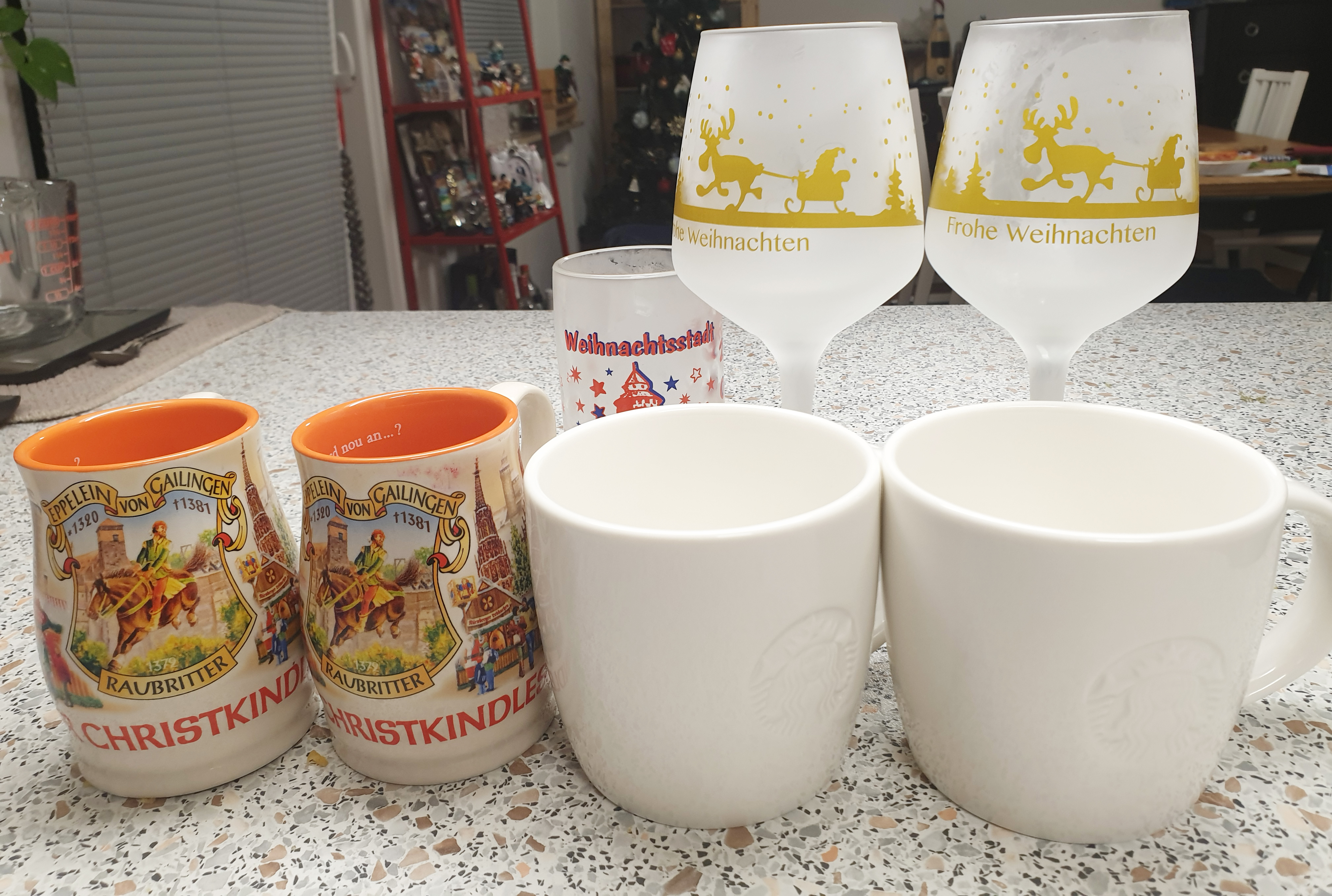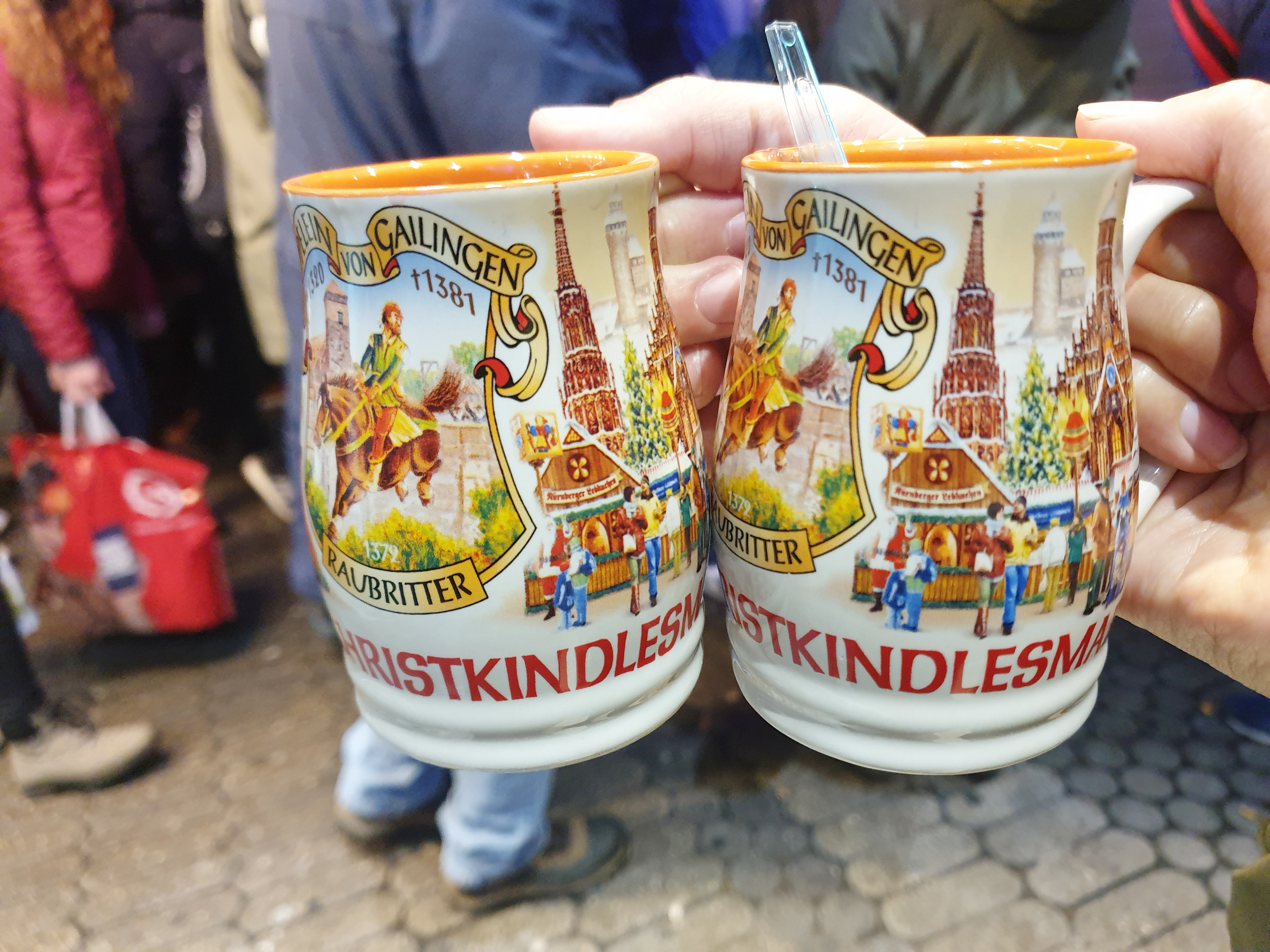 Handwerkerhof Nürnberg 에는 작은 크스리마스마켓이 있었어요~! 그 길을 지나 뉘른베르크 시내 쪽으로 가니 가장 눈에 들어왔던 것은 다양한 크리스마스 컵들!