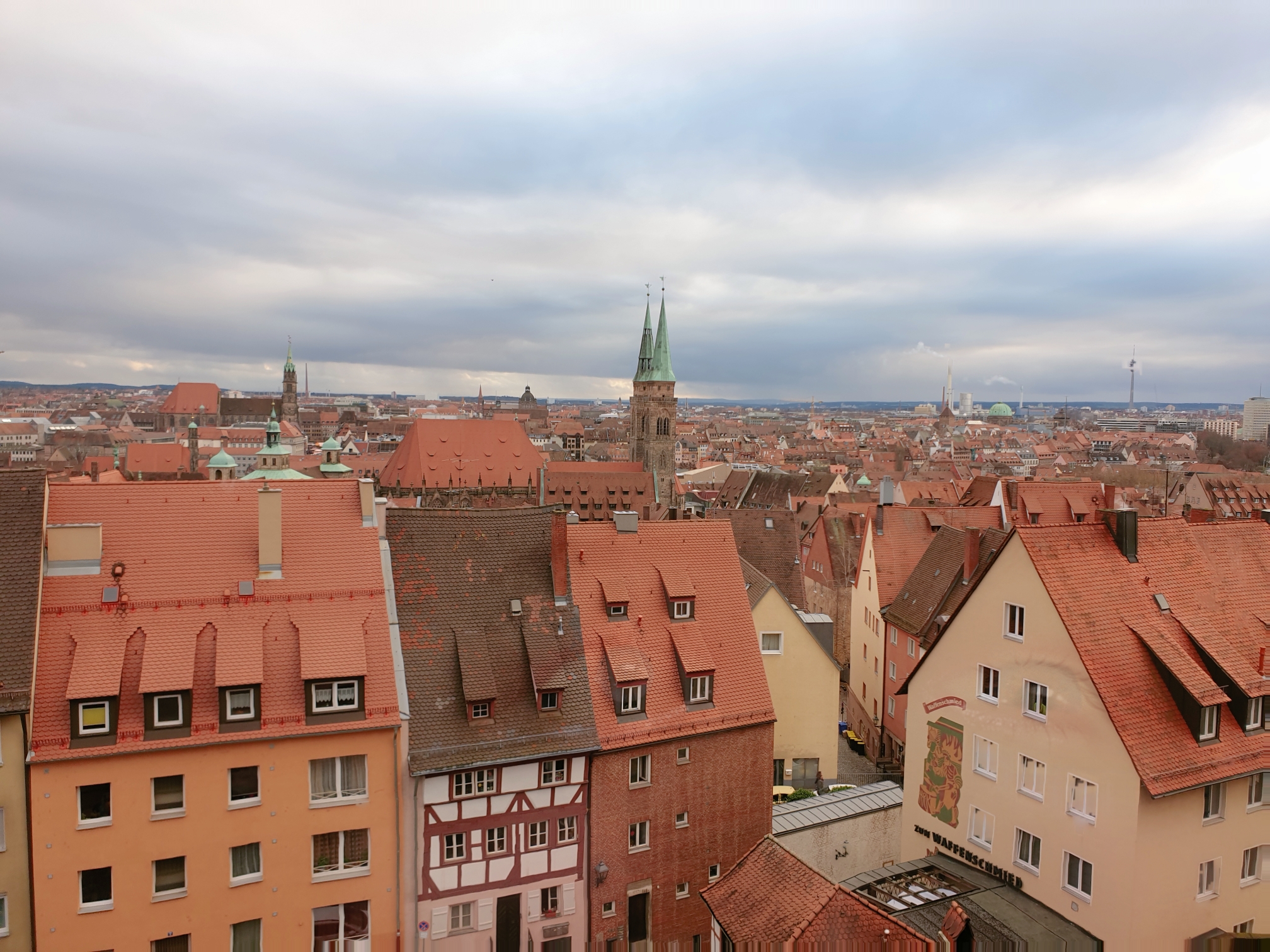 가장 보고 싶었던 누렘버그 성에서 바라본 뉘른베르크 뷰~! 이날은 비가 내려가 날씨가 우중충.. 누렘버그 성이 조금 더 높은 위치 있었더라면 하는 아쉬움이 .. ㅎㅎ 그래도 멋진 뷰를담아 왔습니다.