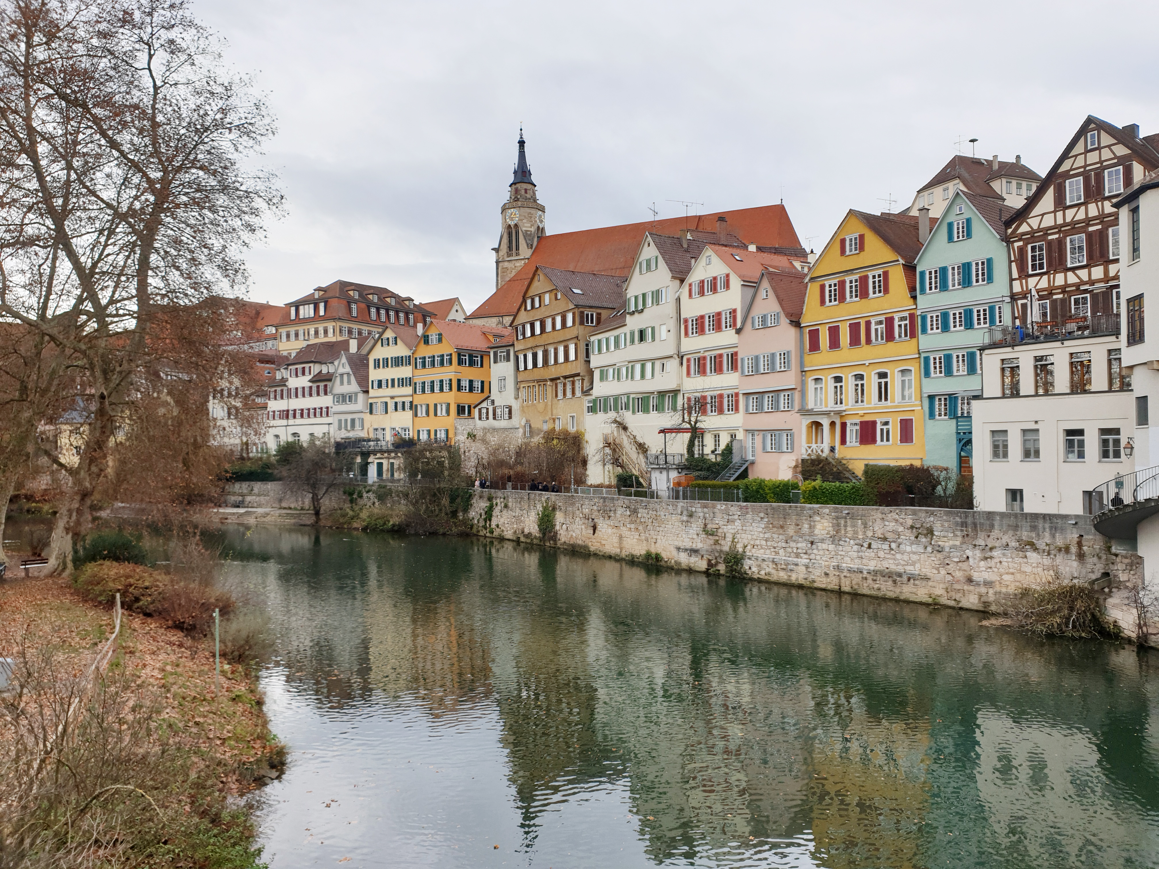튀빙겐역에서 시내로 가는 거리에는 다리가 있는데 다리 위에서 바라본 뷰가 너무 이뻤어요~ 여기서 남편이랑 사진을 찍고 튀빙겐 초콜릿 페스티벌이 열리는 시내로 이동~