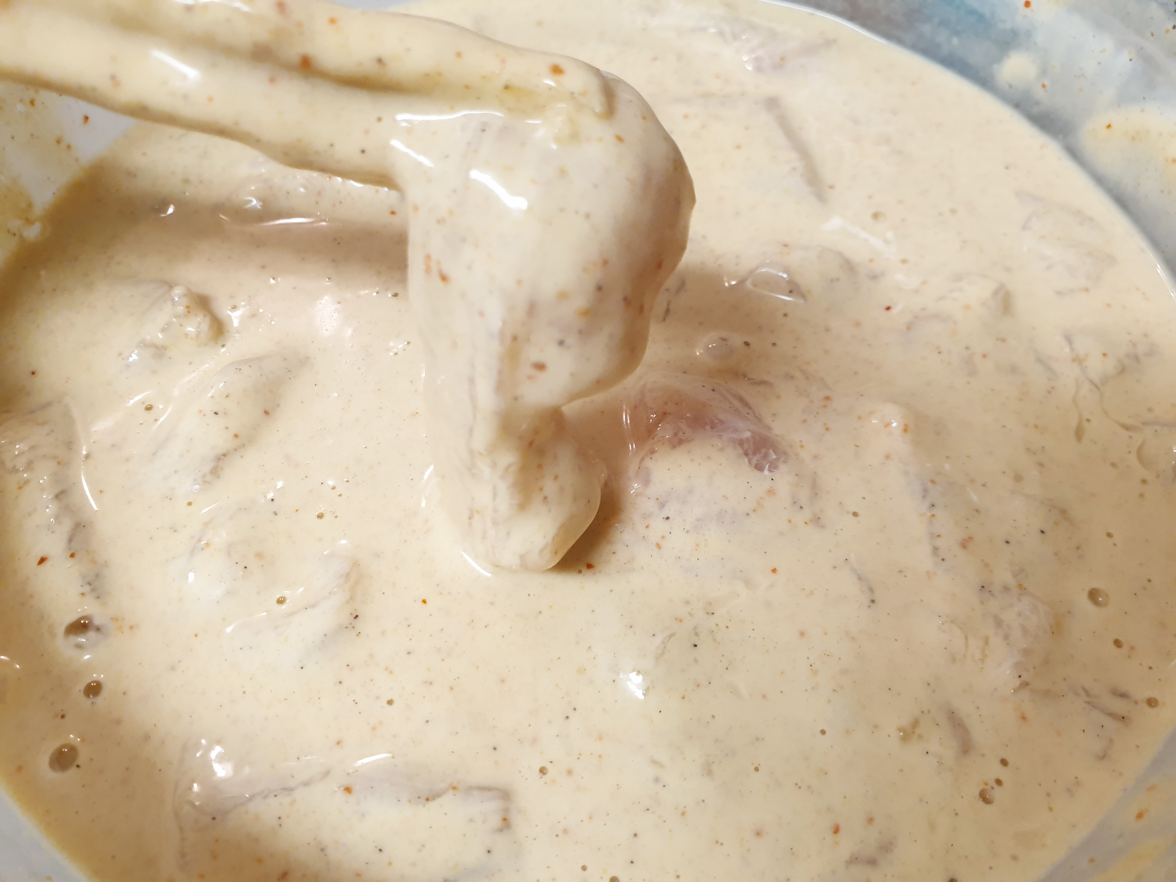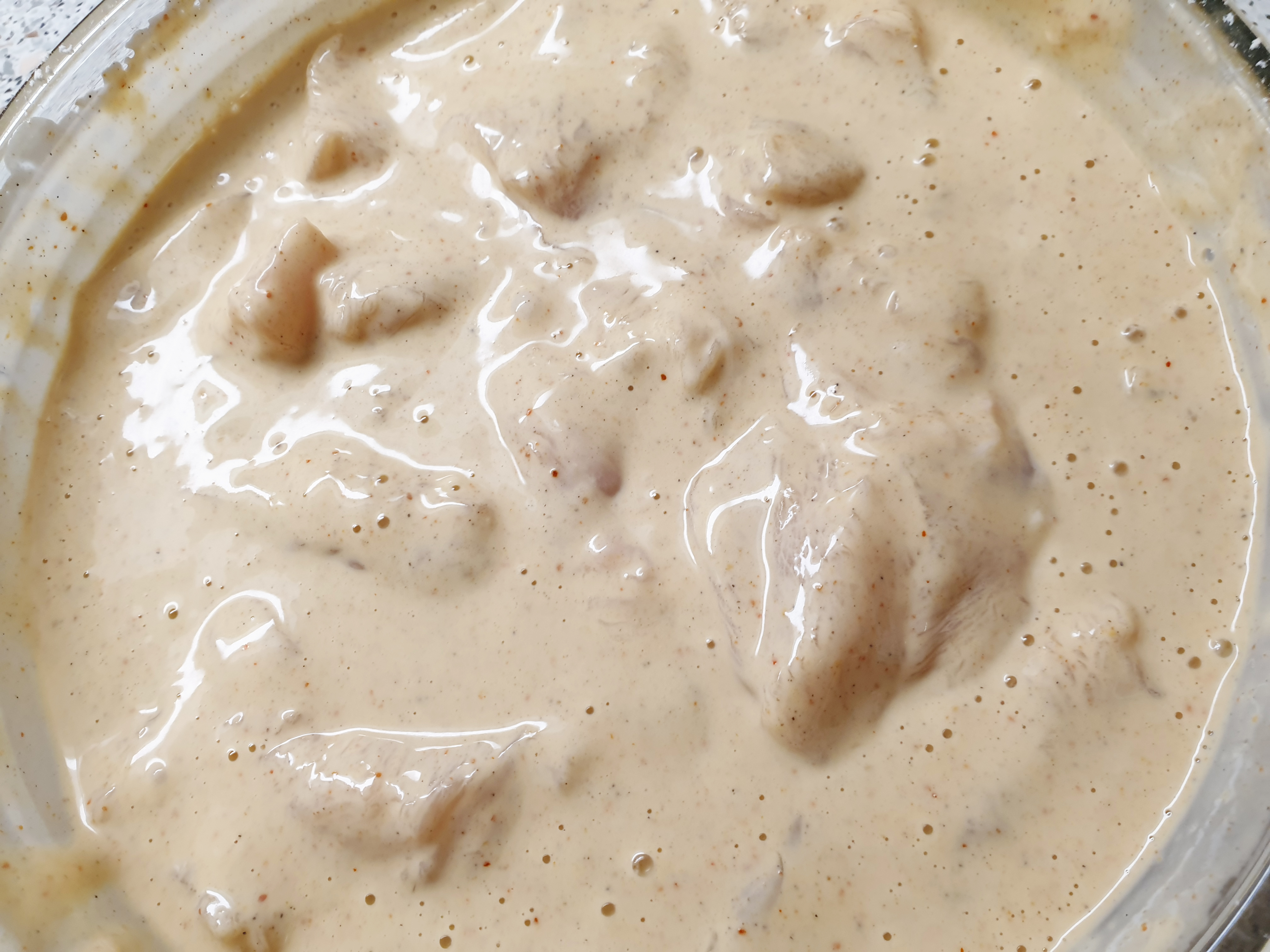 5. 닭 튀김용 반죽에 닭 순살을 넣어주고 잘 섞어줍니다.