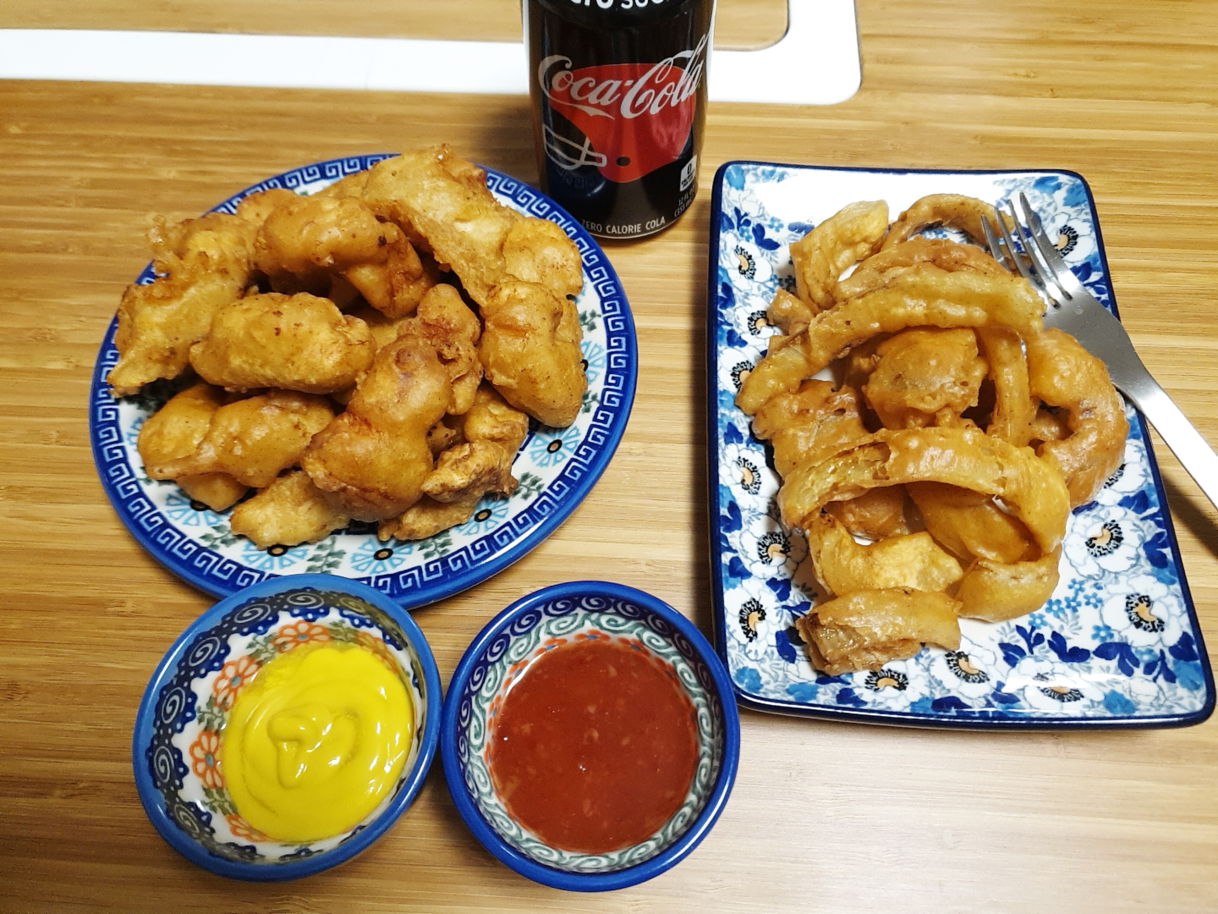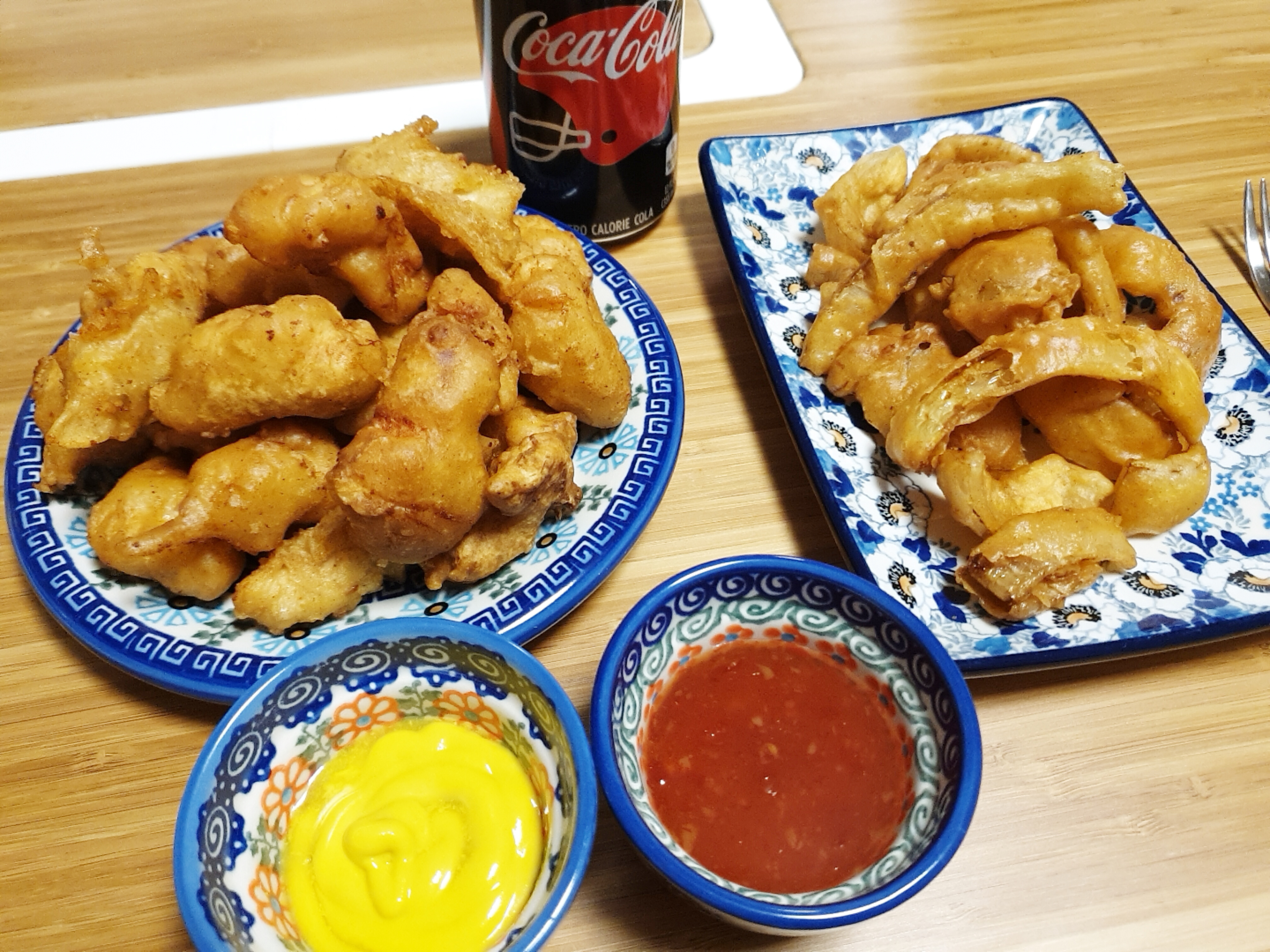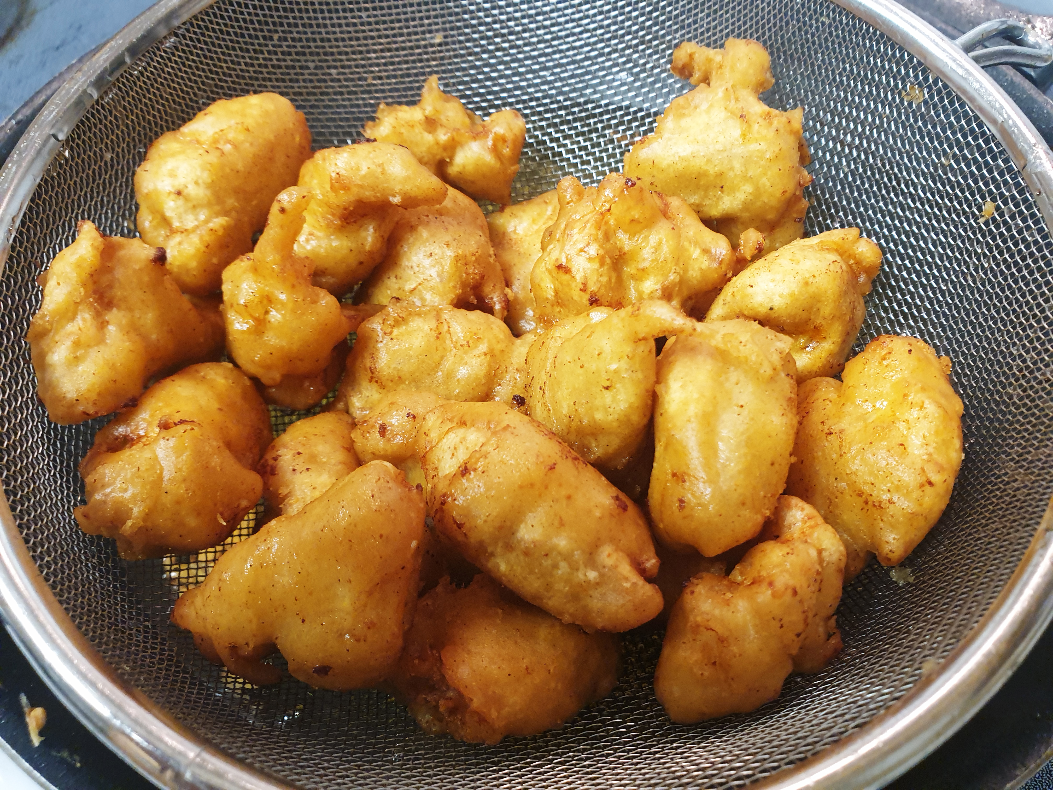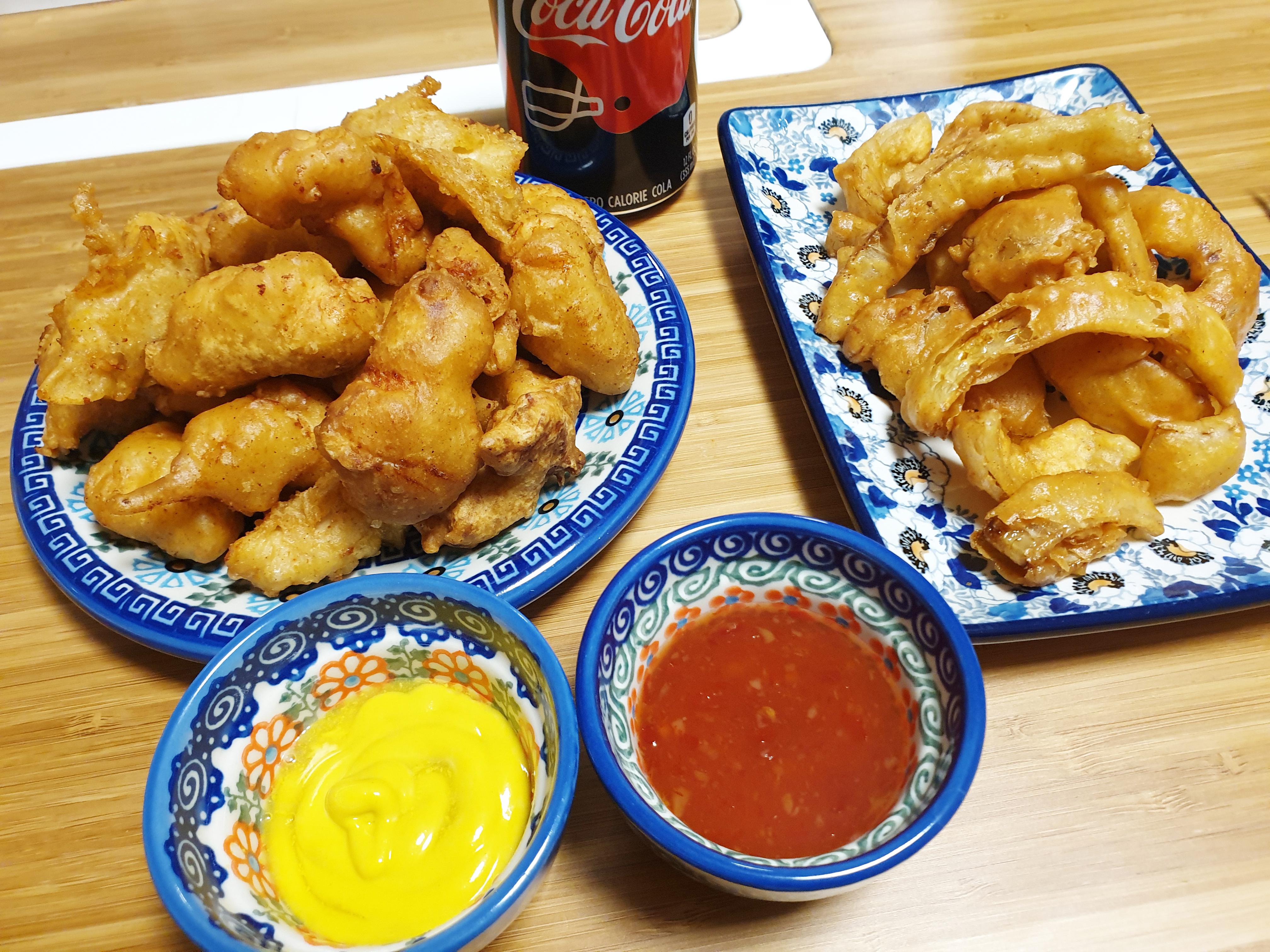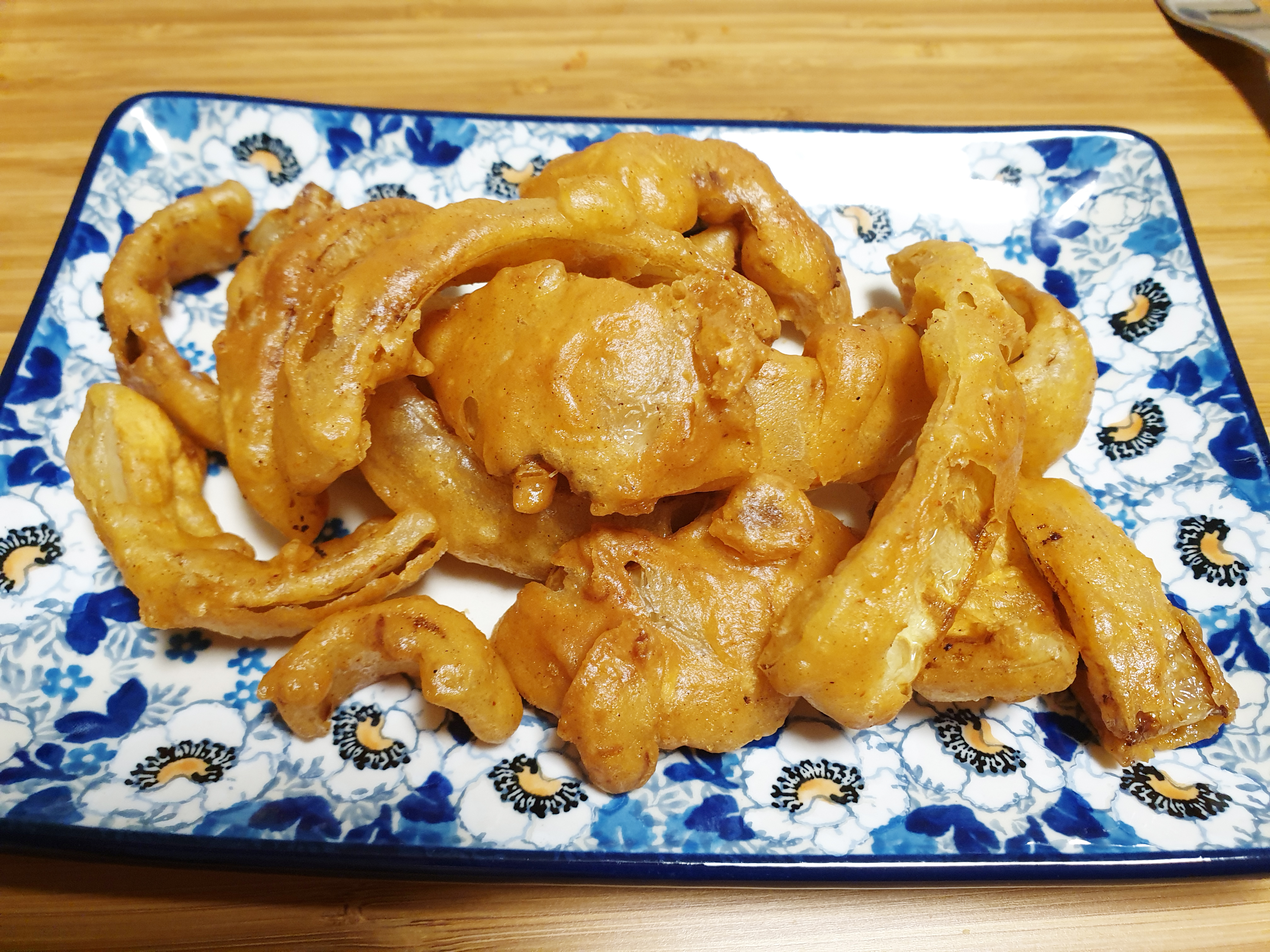 이렇게 완성된 순살치킨~맛을 표현 하자면 시장에서 파는 순살치킨 맛이었습니다. ㅎㅎ 그리고 음식을 하다 남은 양파가 있어서 남은 반죽으로 양파튀김을 했는데 정말 맛있었어요 ㅋㅋㅋ 먹어본 양파튀김 중 가장 맛있을 정도로 맛이 정말 좋았습니다. ( 모양새는 아니지만 ㅎㅎ)