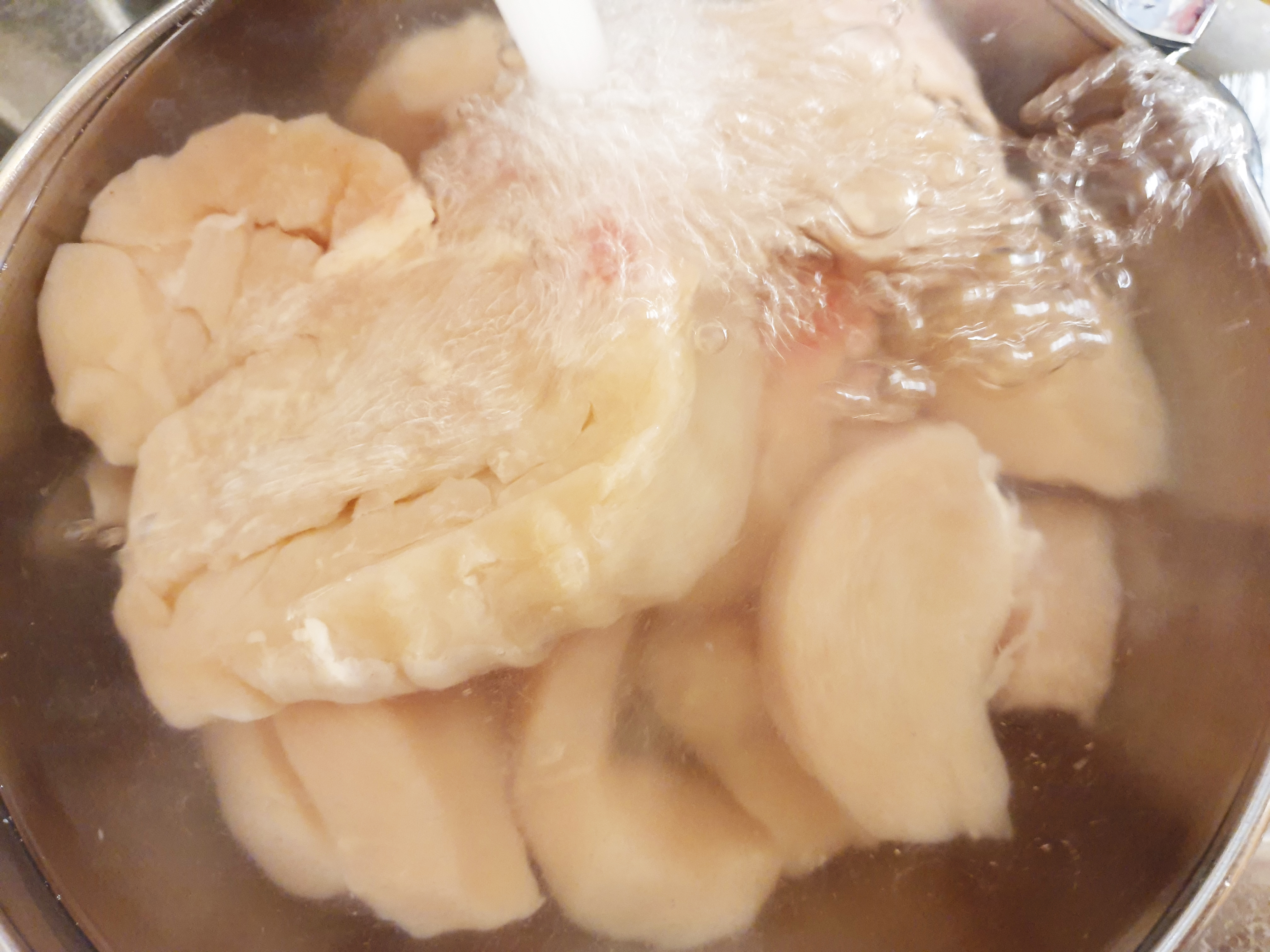 2. 흐르는 물에 준비한 닭 순살을 씻어주고 한입크기 썰어 주세요~