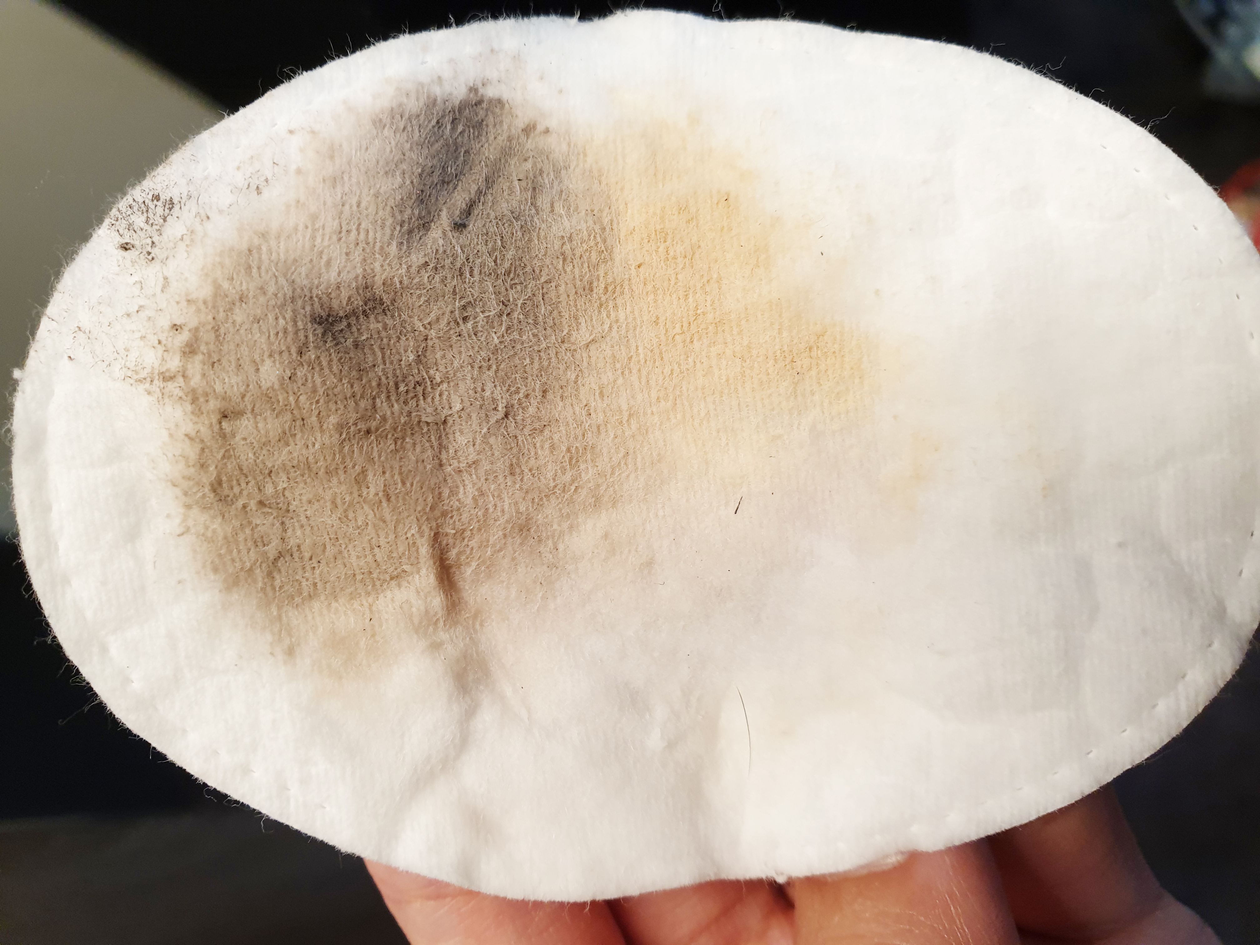 가르니에 클렌징 워터를 화장솜에 묻혀 앞면은 눈과 입 부분을 지우고 뒷면은 얼굴 전체를 지워줬어요~ 전 여러 개의 화장솜을 사용 하기 싫어 손바닥만 한 화장솜 하나로 사용을 해요. 화장솜에 묻혀 바로 닦아낼 경우 마스카라를 제외하고색조화장이 잘 닦기지만 완벽하게 메이크업을 제거하기 위해선 적신 화장솜을 눈가에 1분 정도 올려 마스카라를 불린 후 닦아 주면 마스카라 잔여물까지 완벽히 제거 할 수 있습니다.