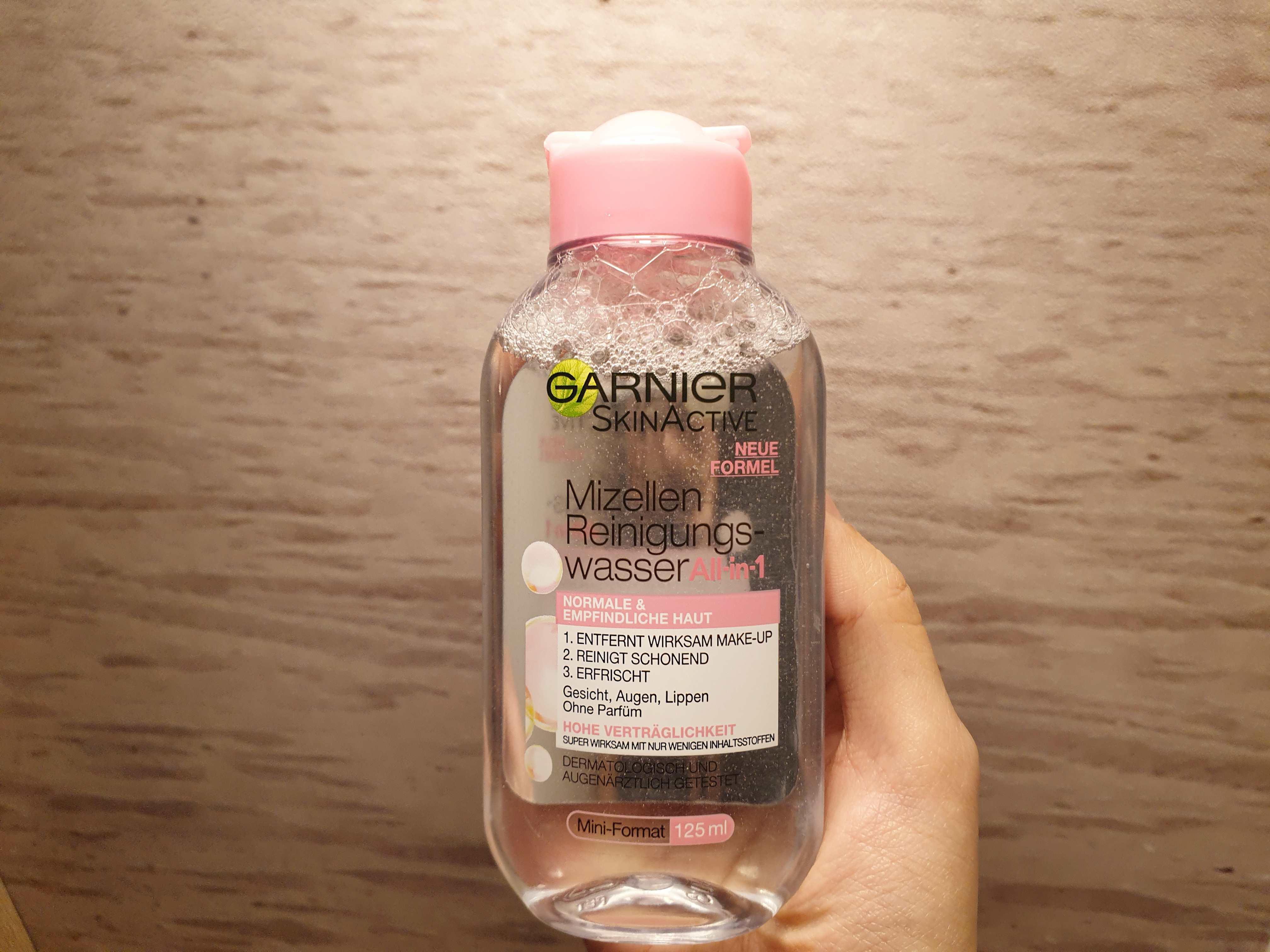 가르니에 클렌징 워터 (핑크)용량125ml 가격은1.95유로! 여행할때 사용할 거라서 작은 용량으로 구매 해 왔습니다.