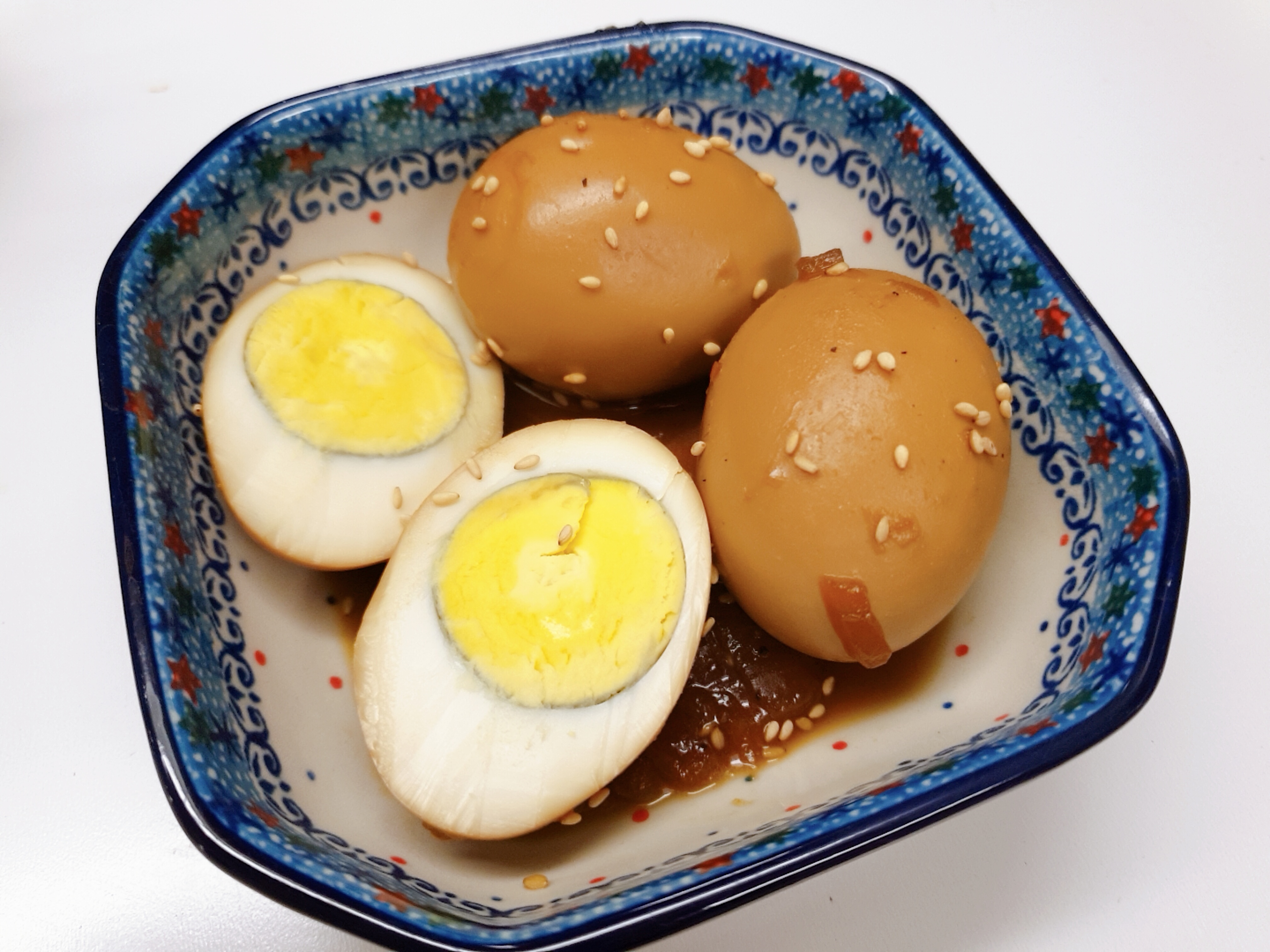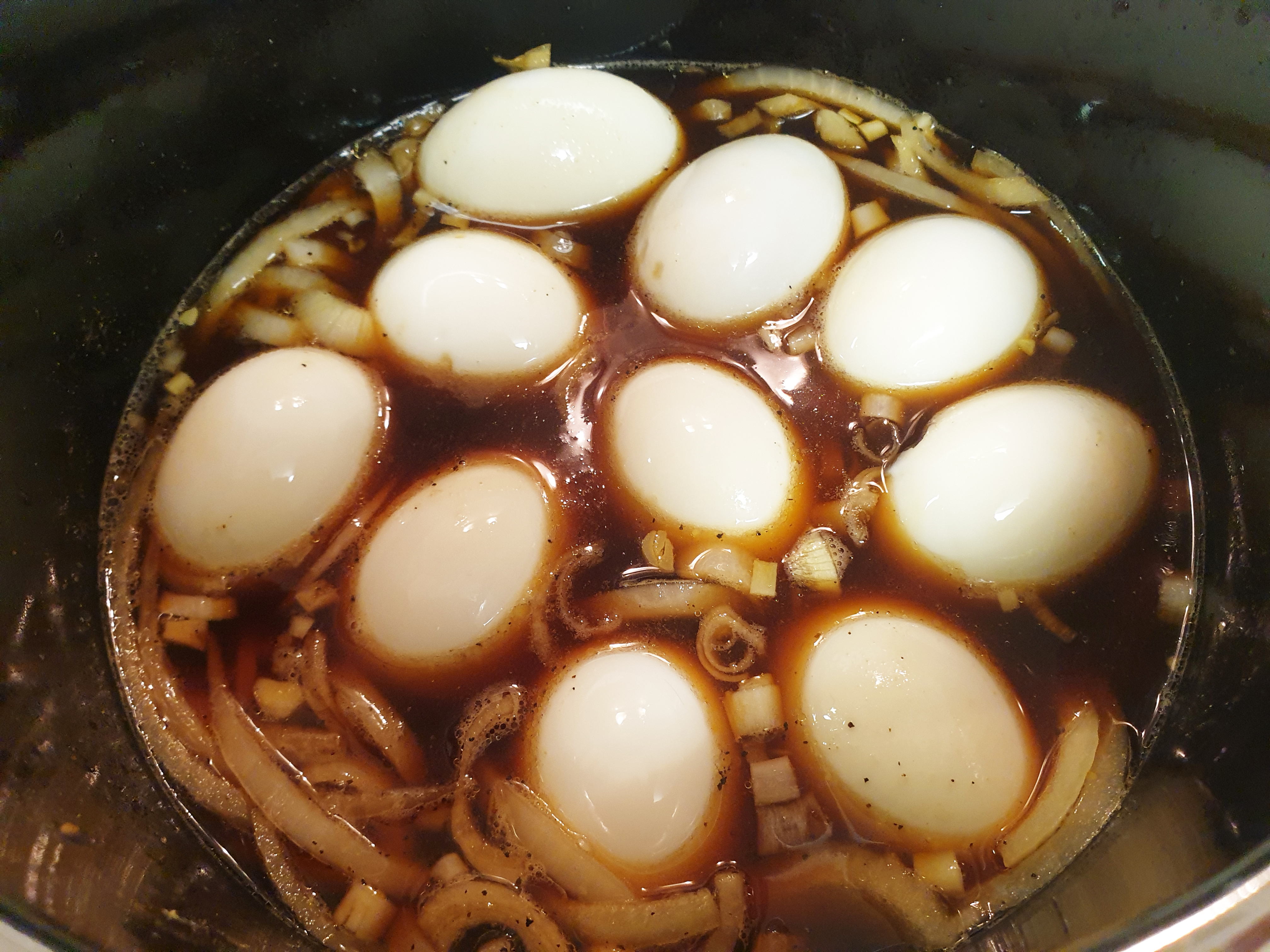 삶은 계란 또는 구운 계란이 준비가 됐다면 물 1 1/2 컵 (종이컵 2컵 정도) , 생강가루 반 스푼, 간장 15스푼, 올리고당 또는 물엿 1스푼, 설탕 2스푼, 후추&참기름 약간, 양파 1개 썰어 넣어 준 뒤 삶은 계란을 넣고 중간 불에 맞춘 후 25분이상 졸여 주면 끝!!