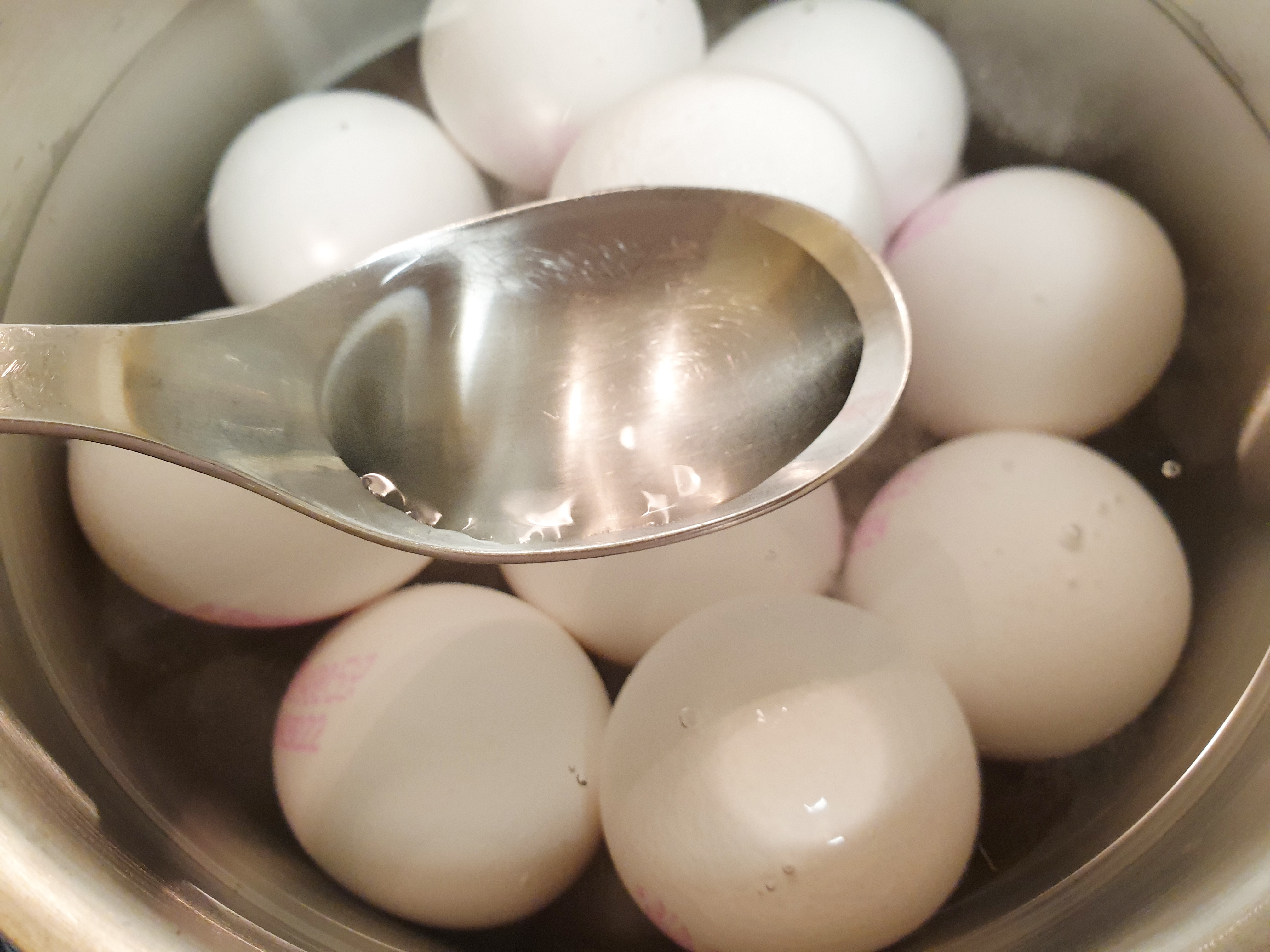 계란 장조림을 만들기 위해서는 삶은 계란이 필요한데 직접 삶아도 되고 마트에서 파는 구운 계란으로 장조림을 만들어도 돼요. 날계란이 준비가 되어 있다면 냄비에 계란을 담고 물을 채운 뒤 소금 반 스푼, 식초 한 스푼을 넣고 불은 중간 불에 맞춰둔 뒤 15분간 삶아줍니다. (소금과 식초를 넣는 이유는 삶는 과정에서 잘 깨지지 않고 껍질을 깔 때 잘 까지게 하기 위해서)