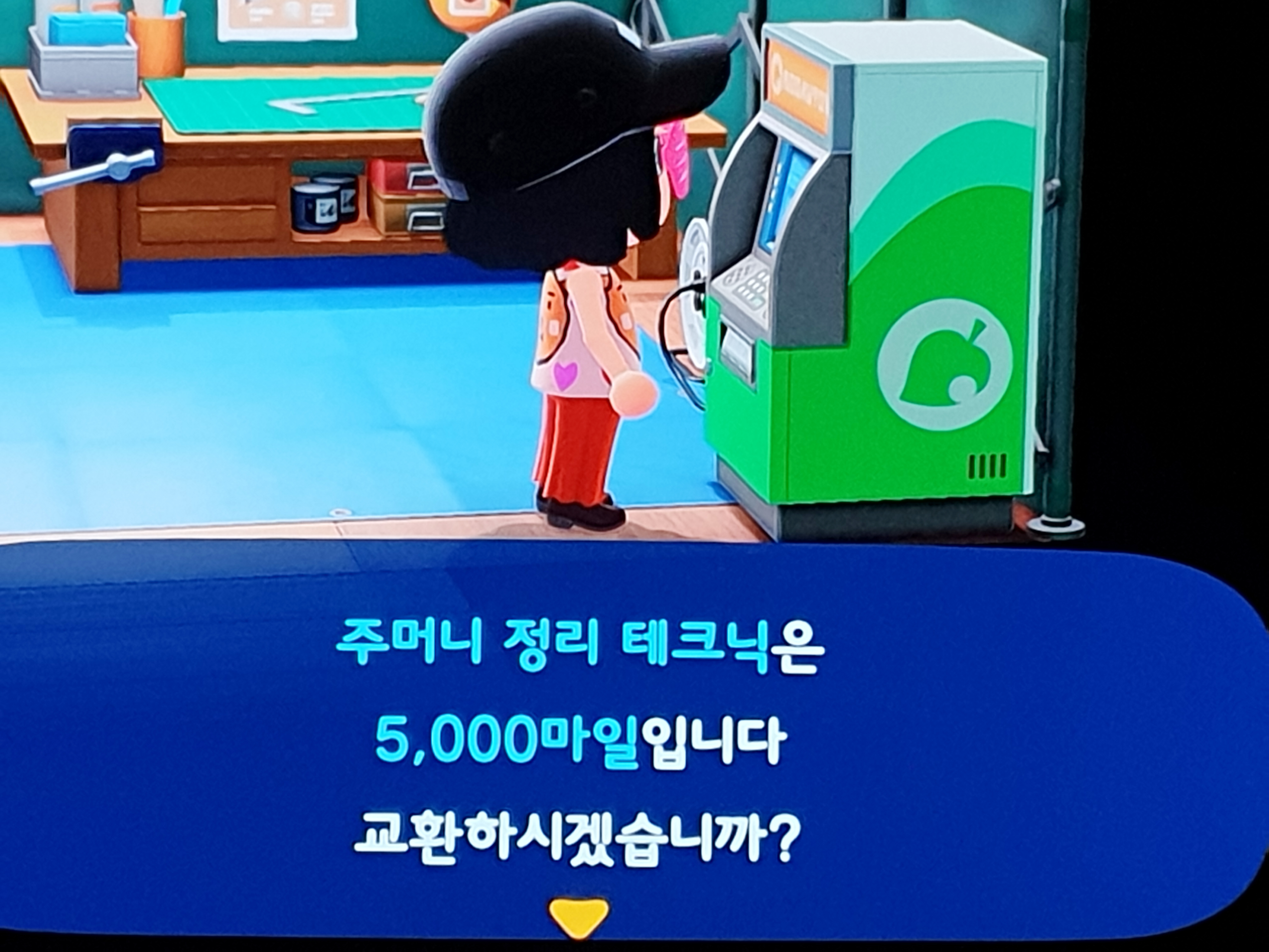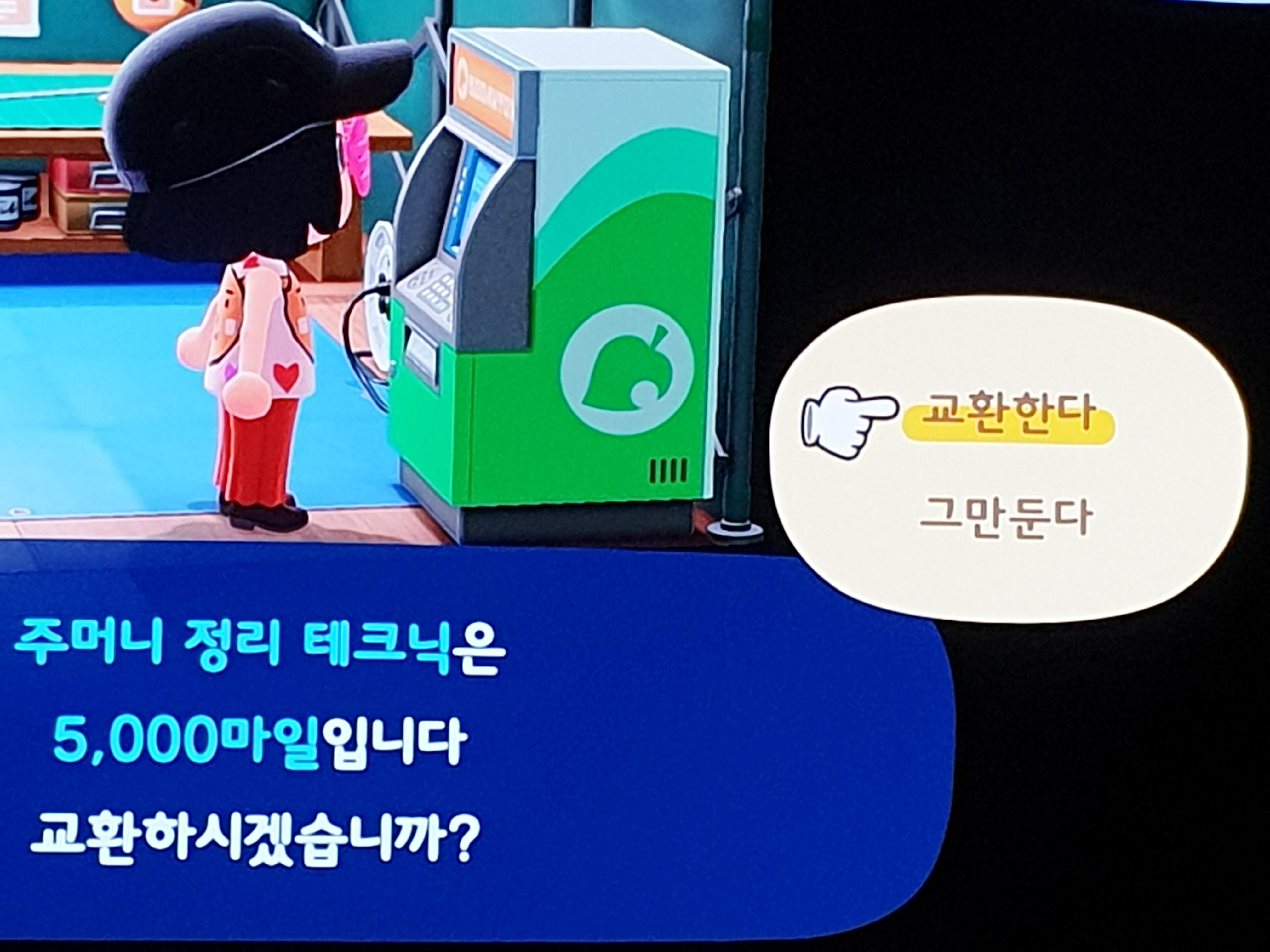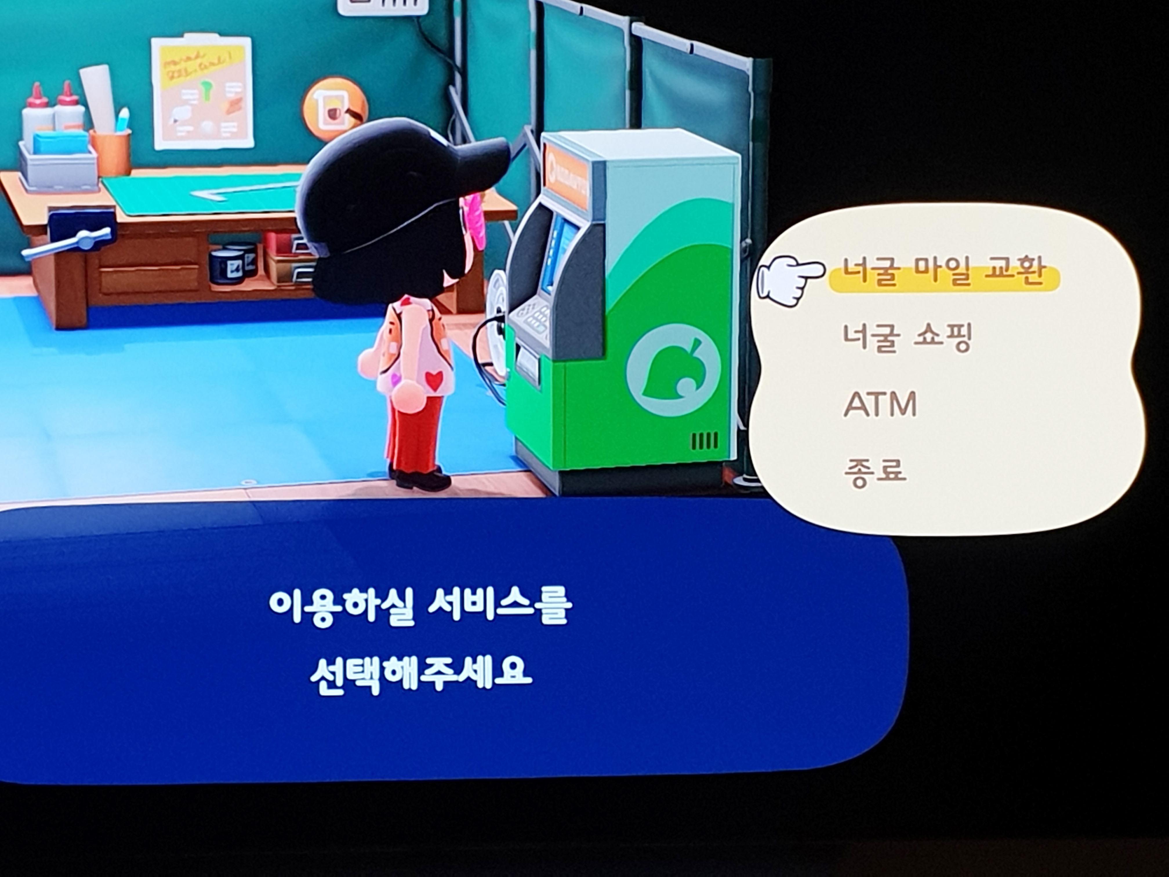 가방을 늘리기 위해서 너굴씨네로 가면 ATM 기계가 보일 거예요~ 거기서 너굴 마일 교환을 눌러주세요~!