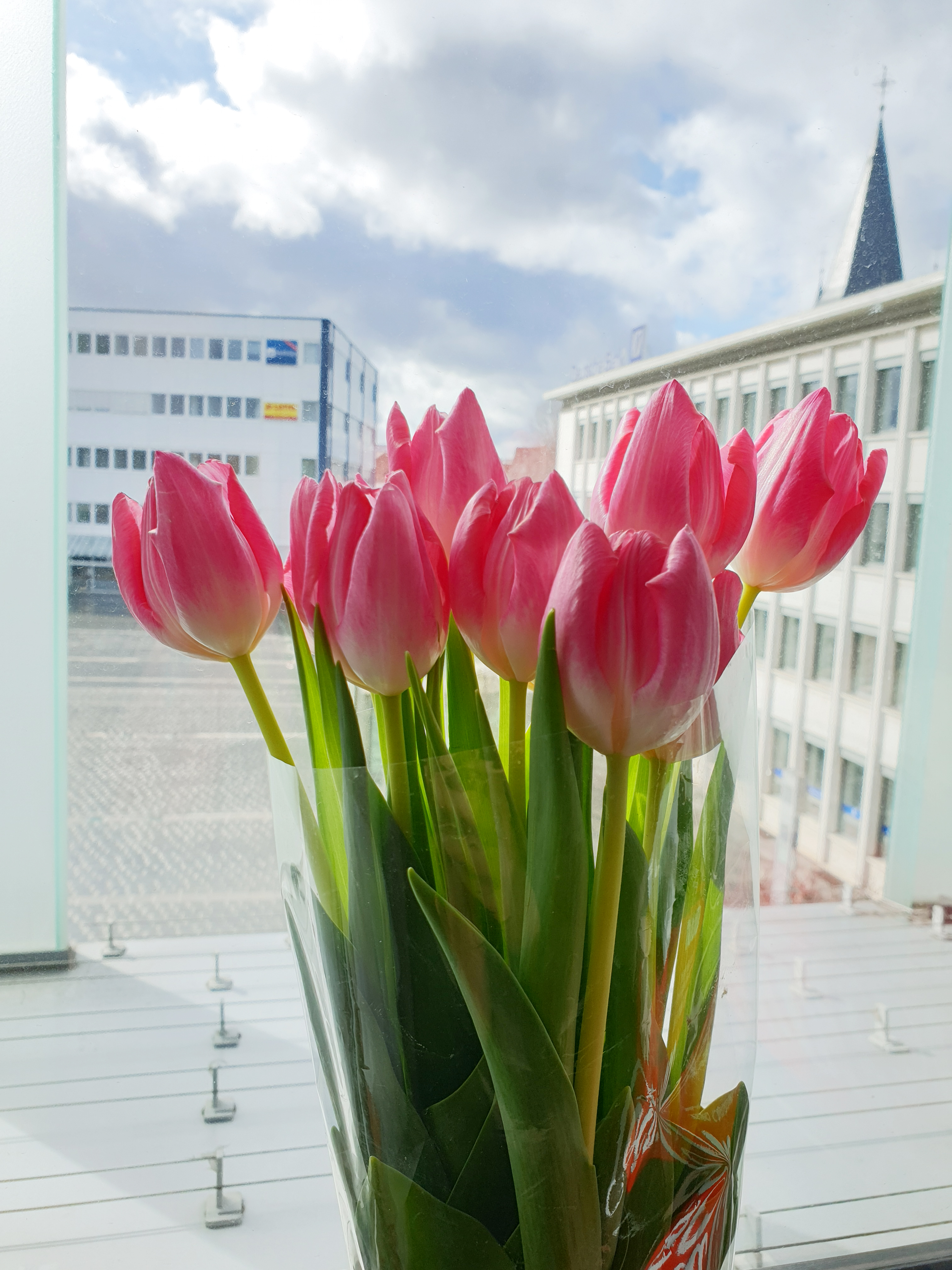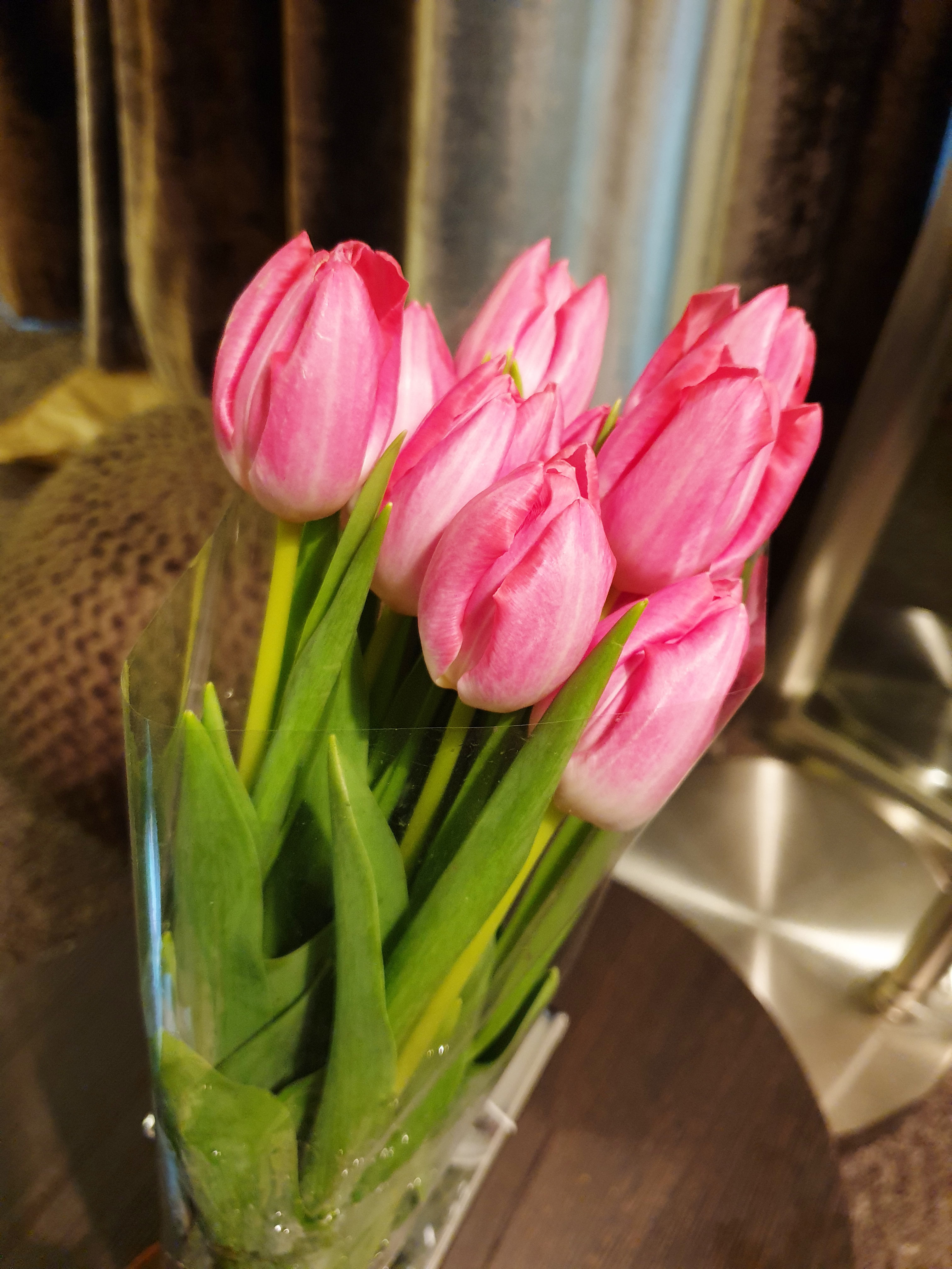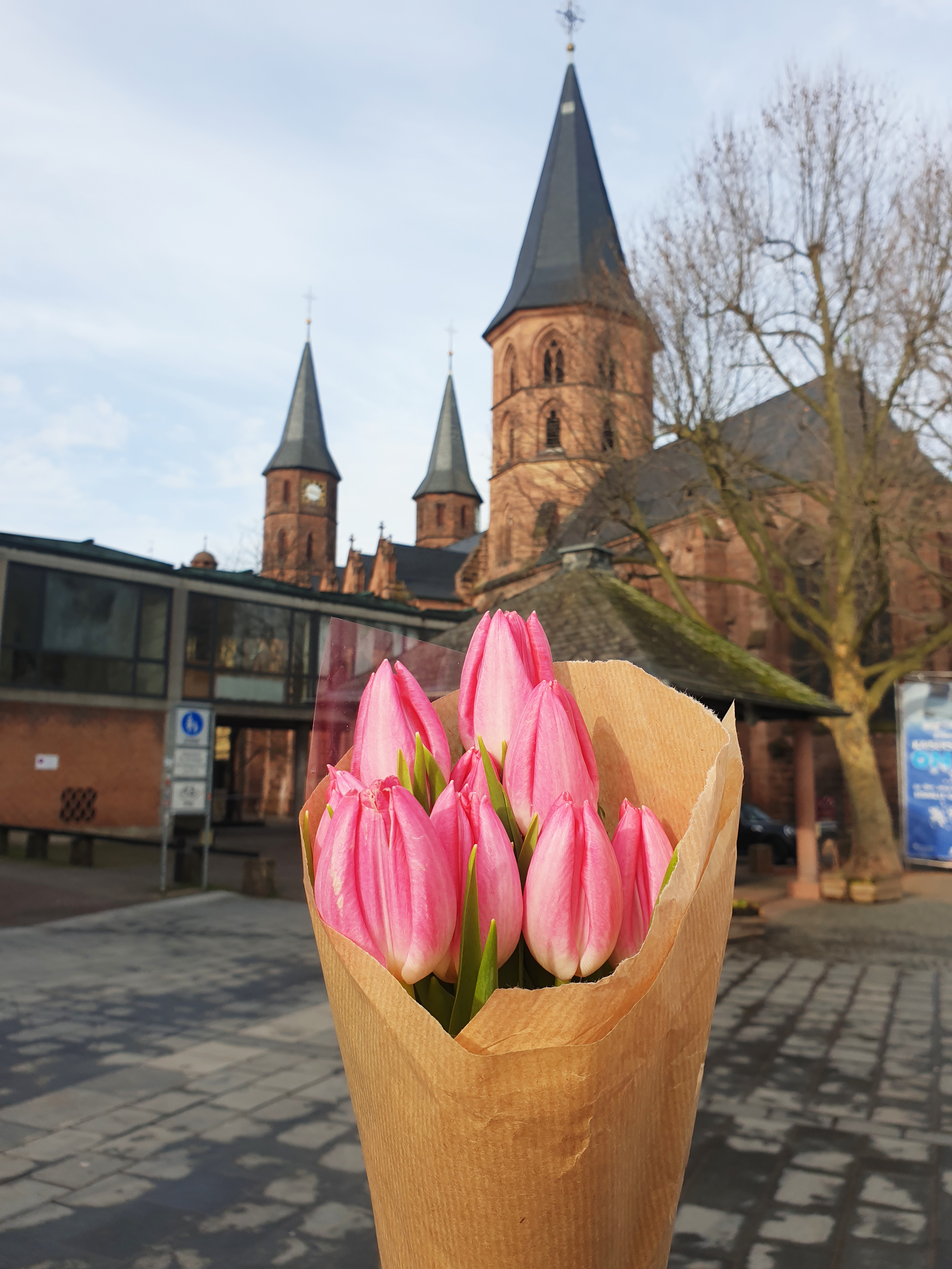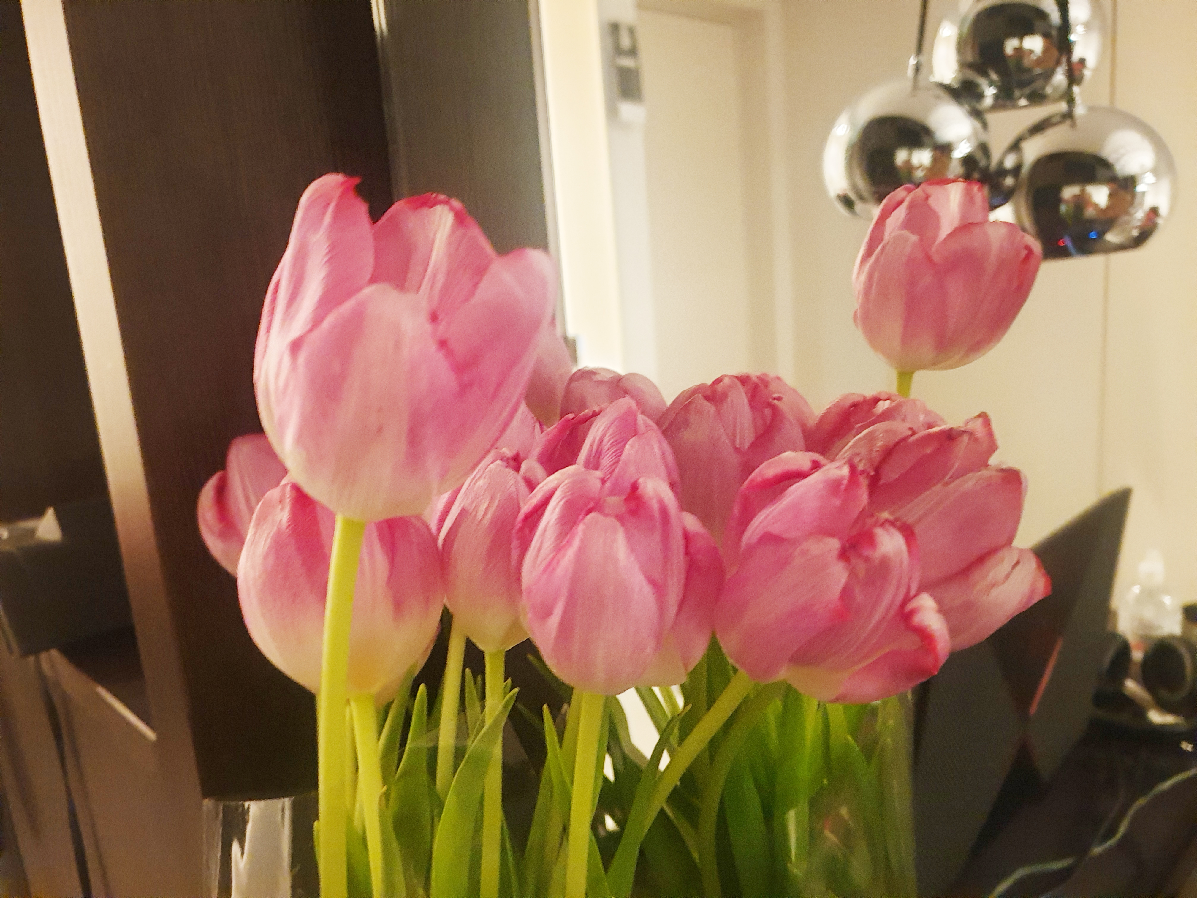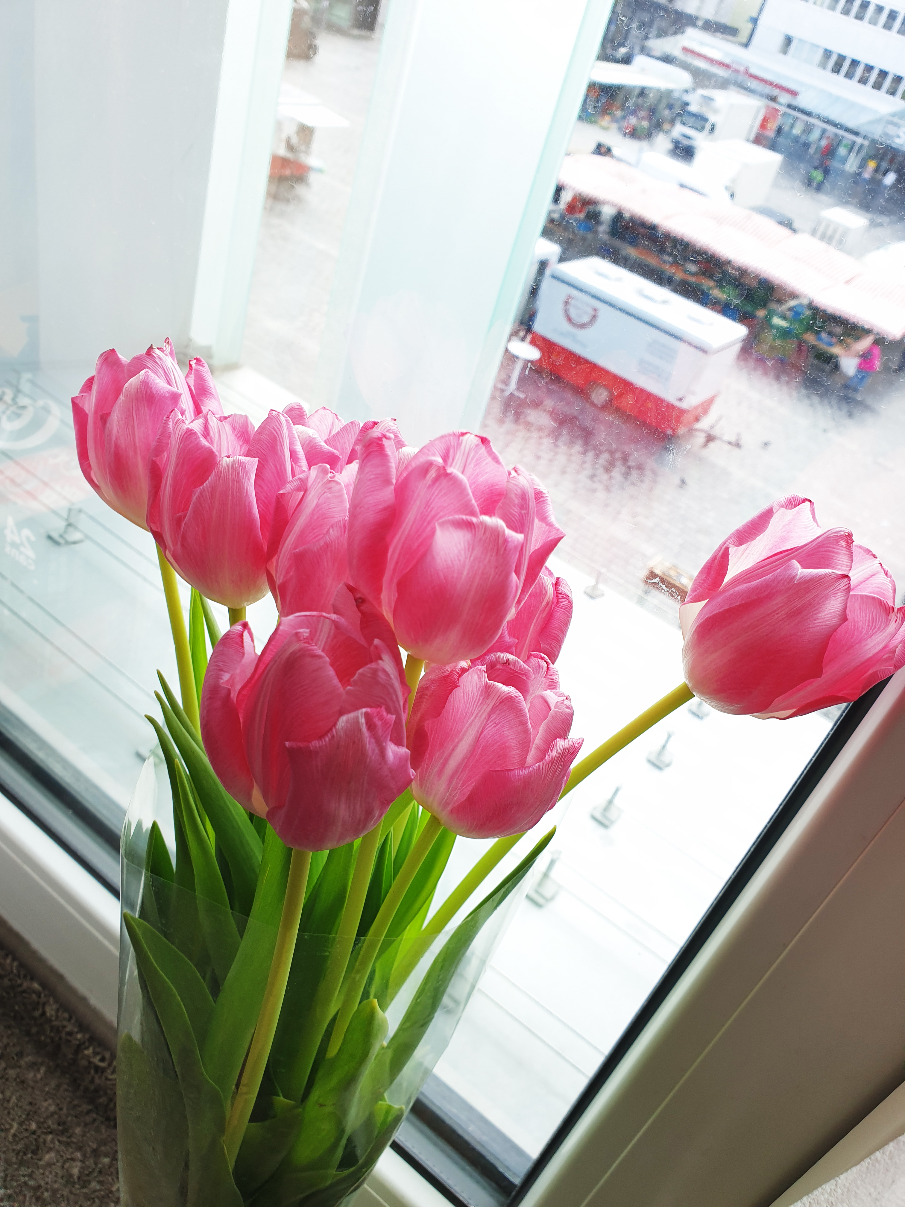 한 달 전 남편 출장으로 독일 카이저슬라우테른을 다녀왔는데 저희가 머문 호텔 앞 광장에서 장이 열렸더라고요~ 그래서 둘러보다가 너무 이쁜 꽃들을 판매하고 있어서 분홍 튤립을 구매했습니다. 빨간, 노란, 하얀 튤립은 많이 봤지만 분홍 튤립은 본 기억이 별로 없어서 너무 이뻐 보였어요~ 그리고 독일은 꽃이 워낙 저렴해서 튤립 한 단에 4유로를 주고 구매를 해왔어요~ 꽃도 너무 싱싱하고 너무 이뻐 데려오고 싶은 꽃들이 많았지만 호텔에서 머물고 있었기 때문에 튤립만 데려왔습니다.
