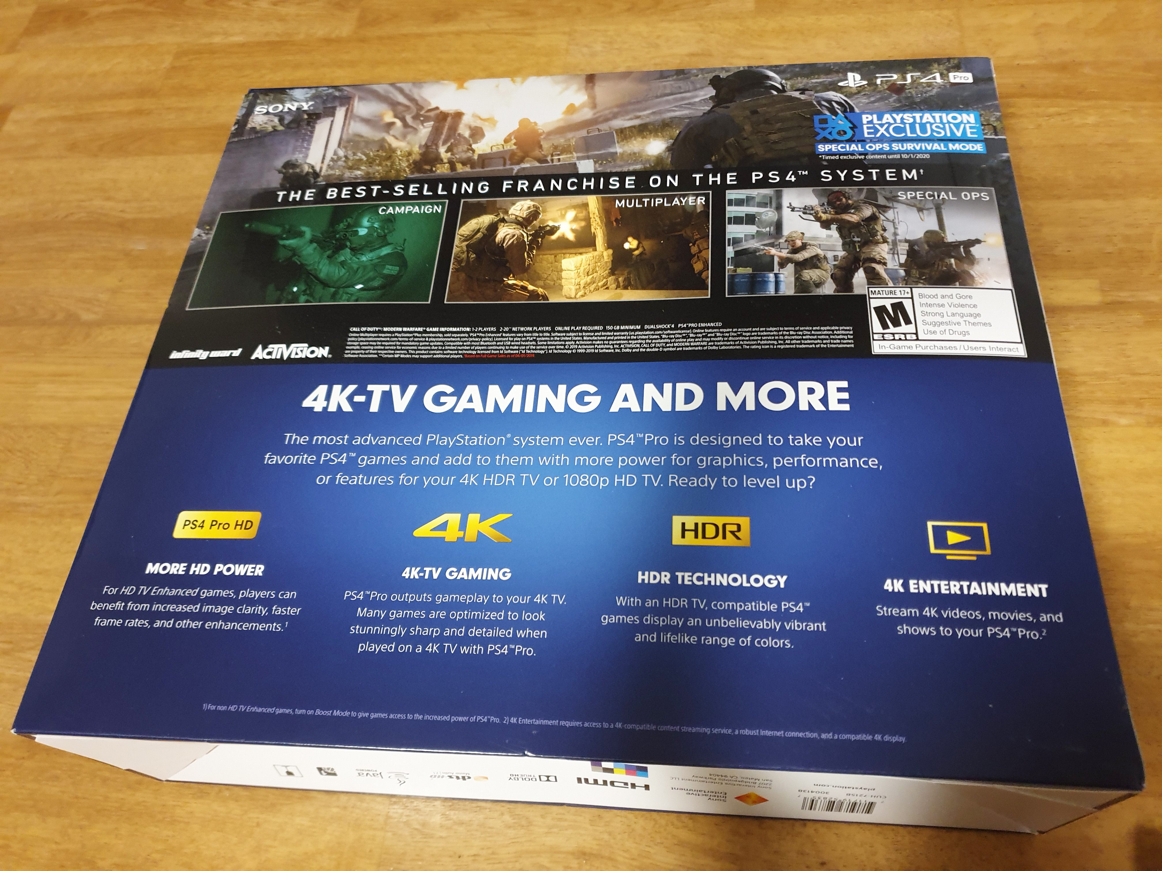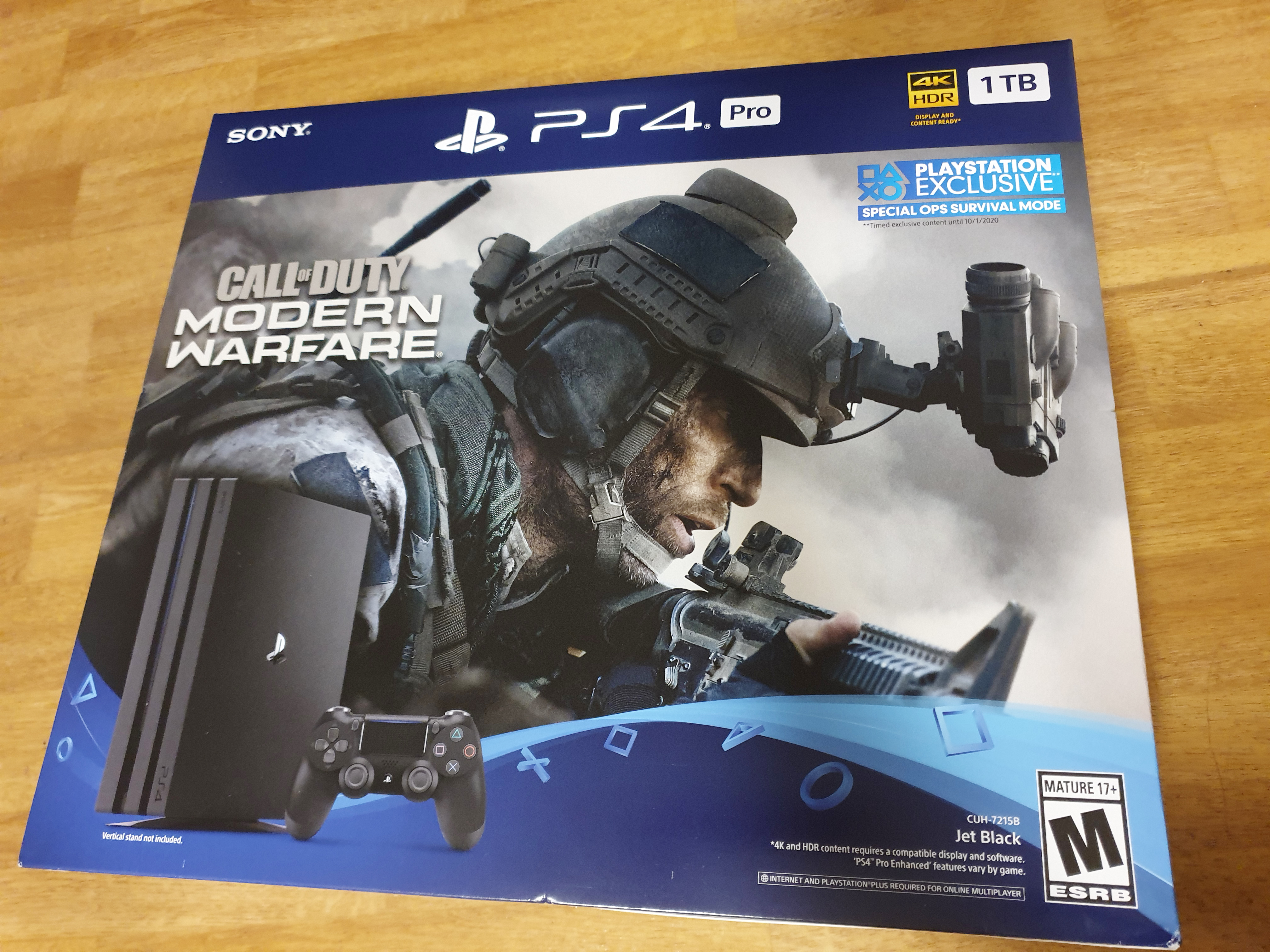 게임이 내장되어 있는 거랑 없는 거랑 20달러 정도밖에 차이 나지 않는다 해서 모던 워페어 게임이 포함된 제품으로 구매를 했어요, 플레이스테이션(SONY PS4 PRO 4K) 가격은 한화 약 49만 원이었습니다. 집에 닌텐도도 있고 XBOX도 있는데 하필 파이널 판타지 7 리메이크는 플레이스테이션으로만 플레이를 할 수 있는 건지 ㅠㅠ....