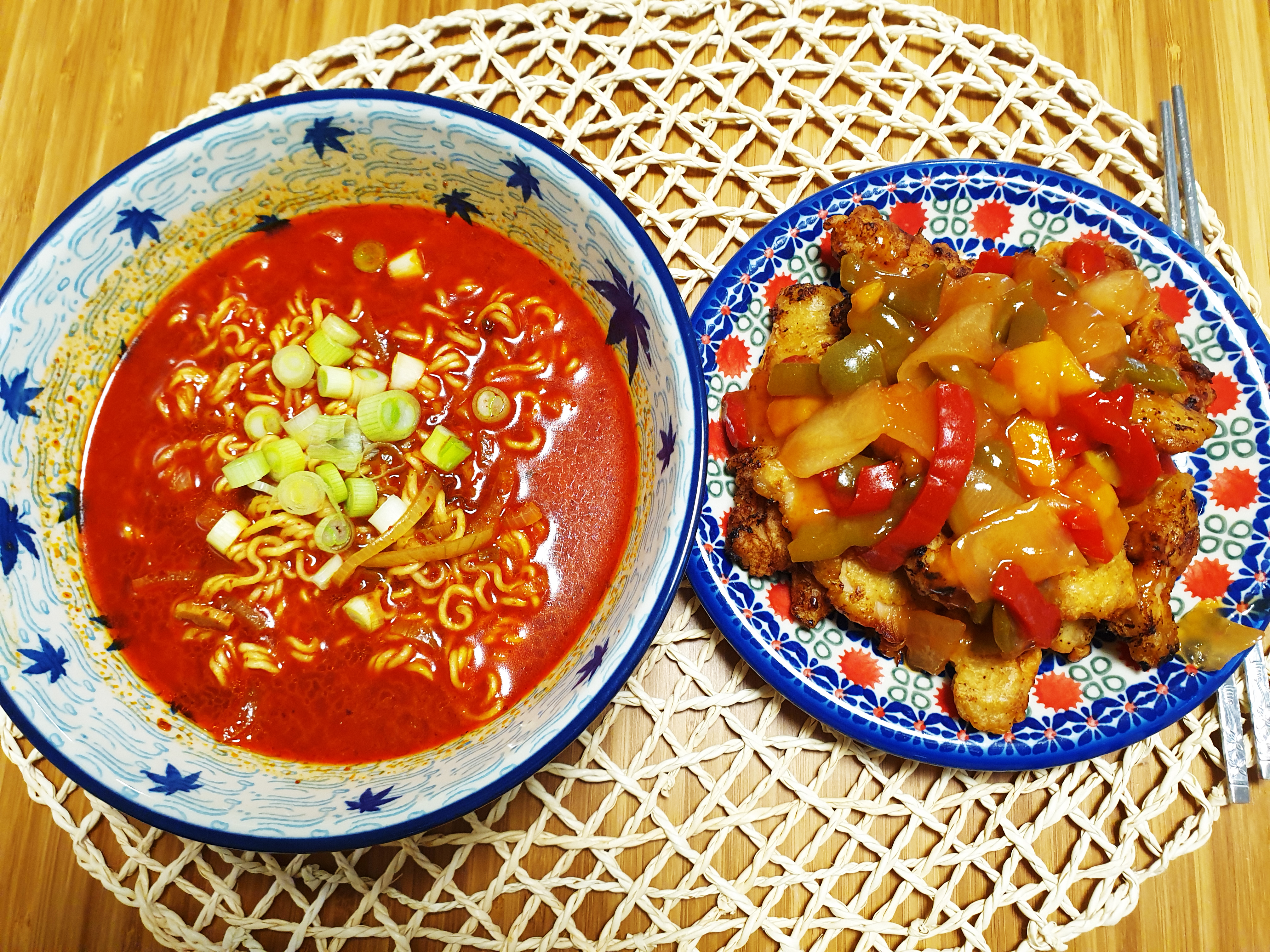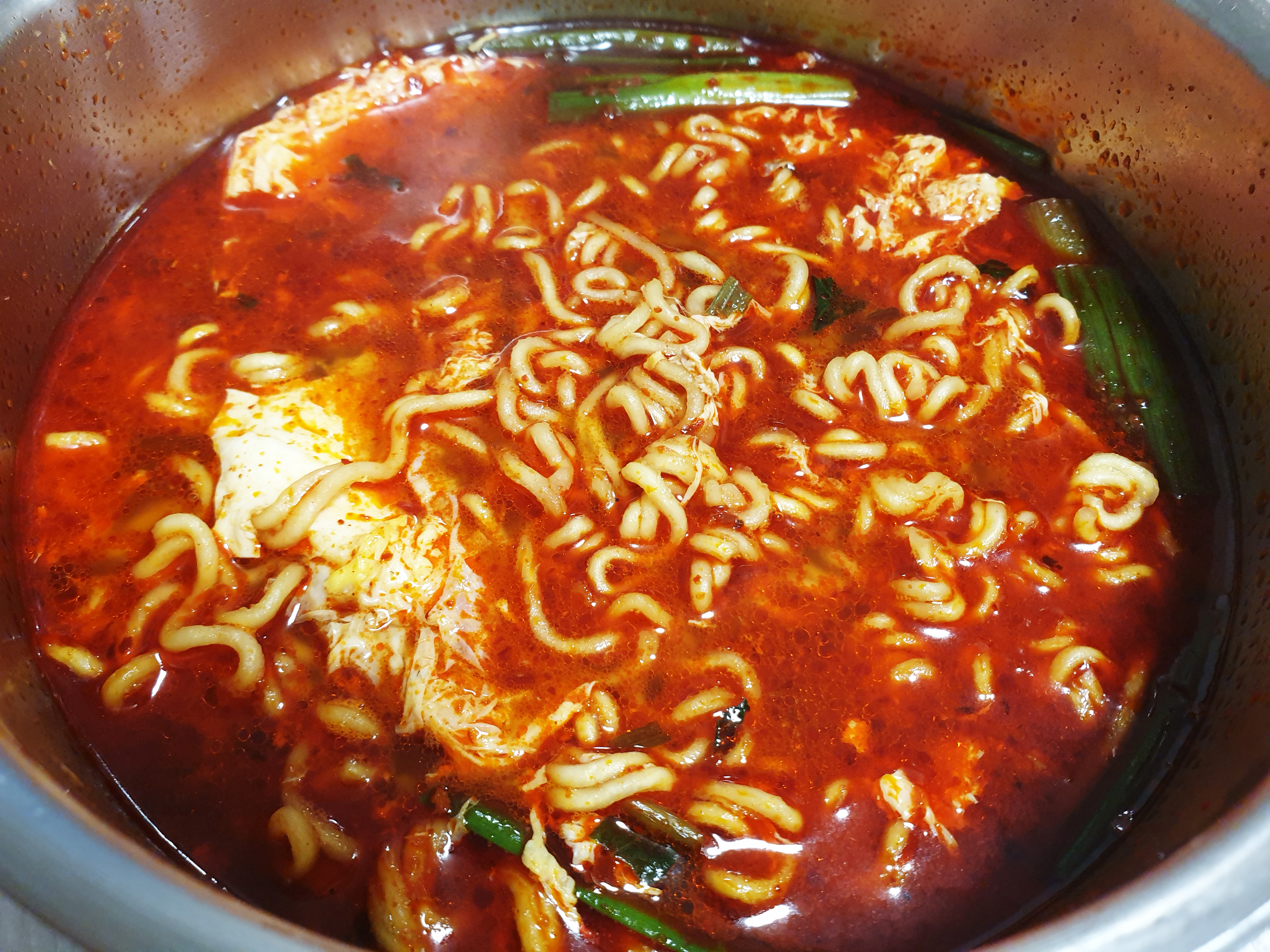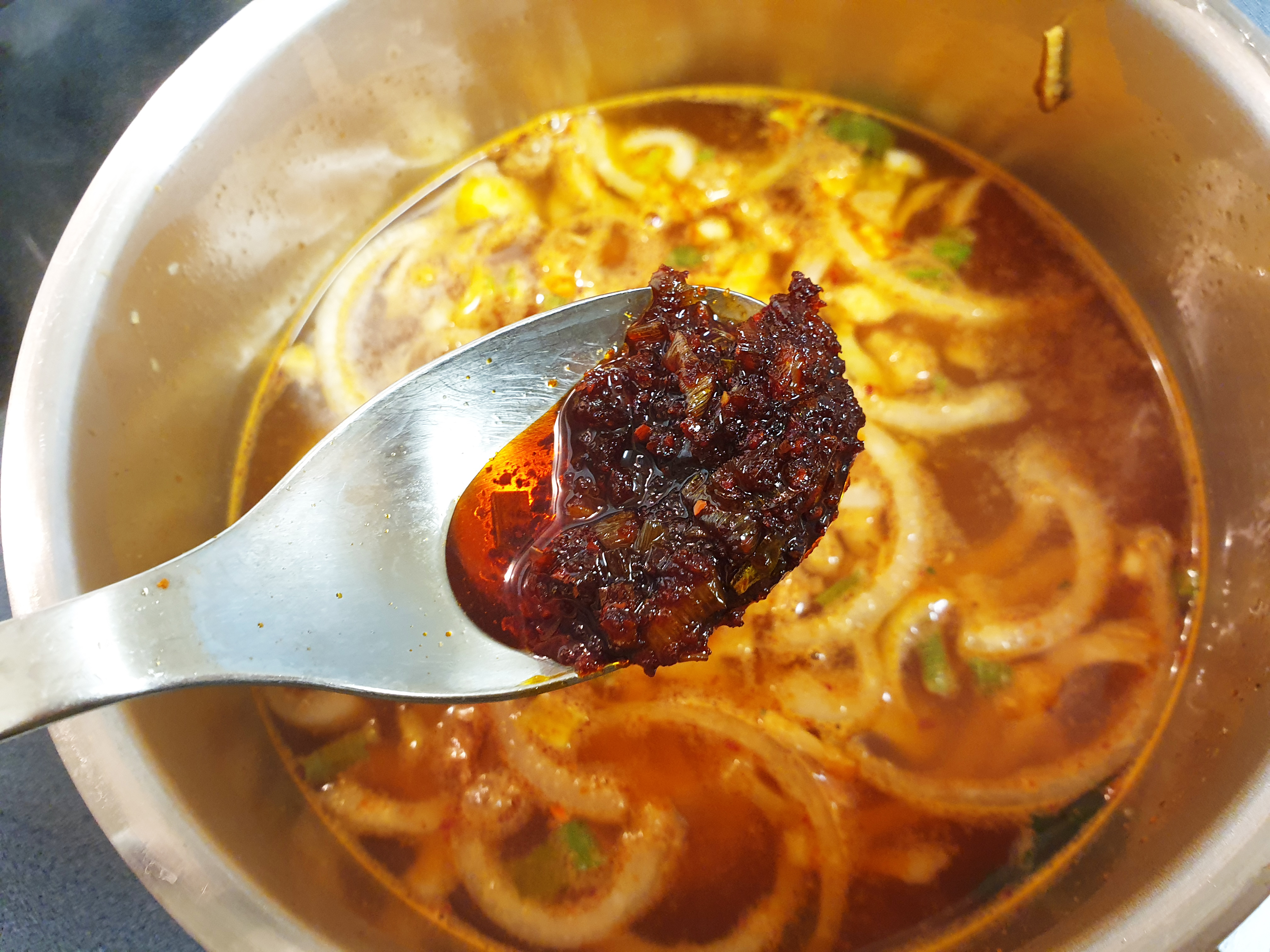 만들고 남은 탕수육과 같이 먹었는데 꿀맛이더라고요~ 고추기름 하나 넣었다고 라면 맛이 달라지고 국물이 정말 진하고 맛있어요!