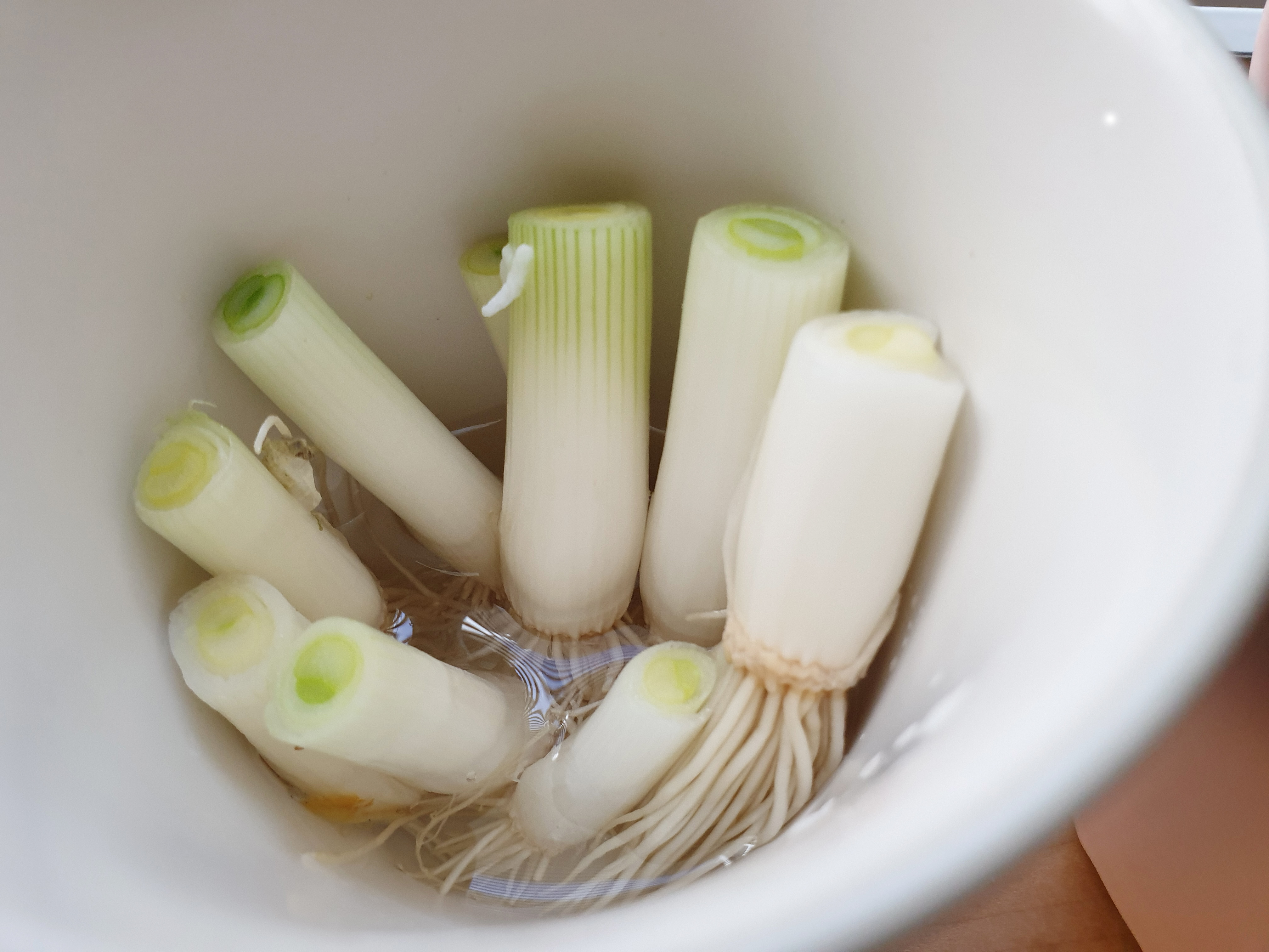 제가 있는 곳은 코로나 19 때문에 2주에 한 번씩 장을 볼 수 있어서 2주 치 장을 한꺼번에 보고 채소는 상하기 전에 빨리 먹어 치우거나 양파나 파 같은 경우 오래 먹기 위해 씻고 썰어서 냉동실에 얼려 두고 먹고 있어요~ 그래도 얼린 것보다는 신선한 채소를 먹고 싶어 파는 뿌리 부분을 잘라 집에서 키우고 있습니다. 파는 다른 채소에 비해 잘 자라고 키우는 방법도 쉽고 파뿌리와 물만 있으면 집에서 누구나 파를 키울 수 있습니다. 누구나 쉽게 파를 키울 수 있는 방법(파 수경재배) 알려드릴게요!