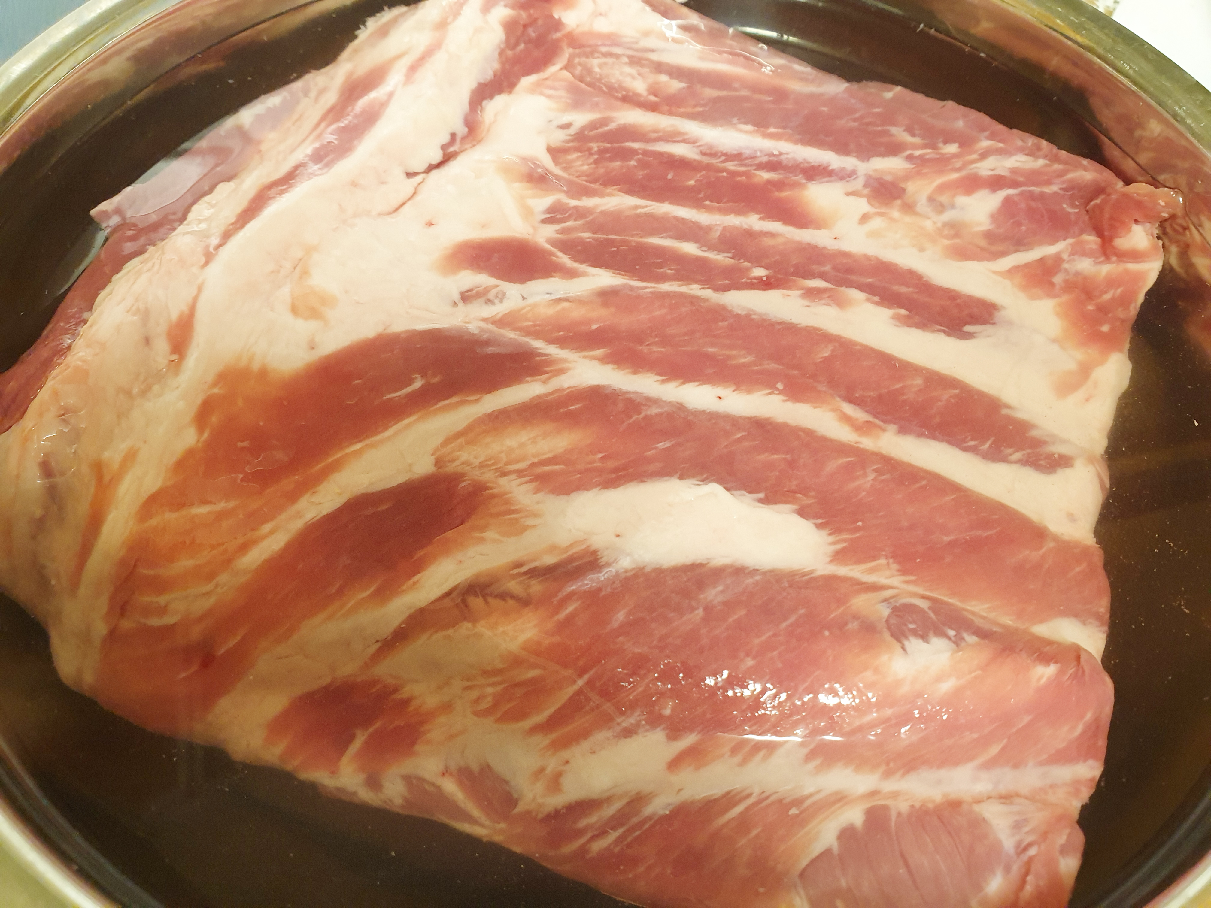 가장 먼저 매운 등갈비찜을 만들기 위해서 등갈비 핏물을 빼고 손질을 해줘야 해요~ 우선 등갈비 핏물을 뺄 때는 등갈비가 충분히 잠기도록 물을 부어주고 잡내를 잡기 위해 청주나 소주 1컵(소주잔)을 넣어준 뒤 2시간 이상 핏물을 빼줍니다. 그다음 흐르는 물에 씻어준 뒤 손질을 해주는데 등갈비 안쪽에 있는 근막을 벗기고 갈빗대 사이사이를 잘라 준비해주세요! (근막을 제거하는 이유는 근막이 질기기 때문에 식감이 좋지 않아요!) 그리고 감자 3과 양파 1껍질을 벗긴 뒤 감자는 큼지막해 썰어 준비해주고 양파는 너무 얇지 않게 채를 썰어 준비해주세요
